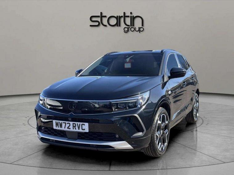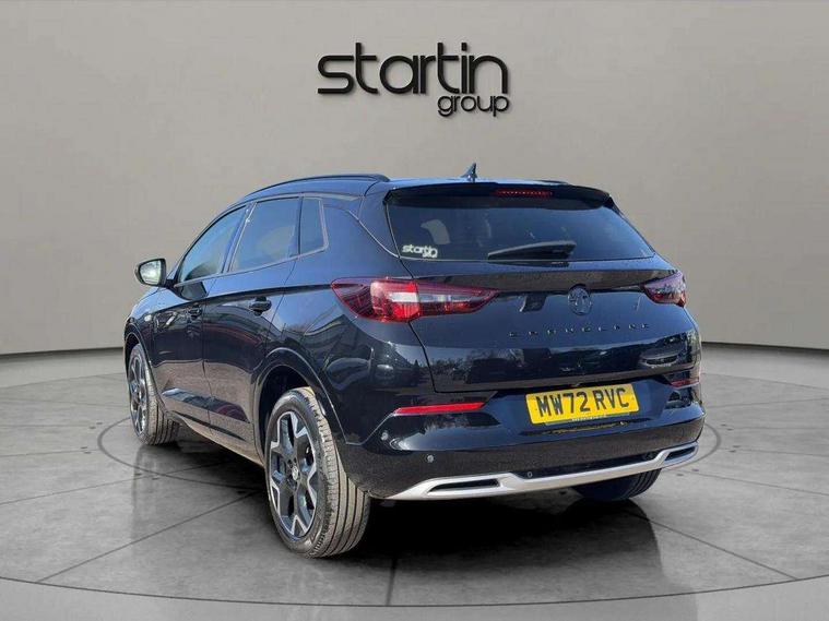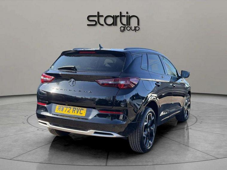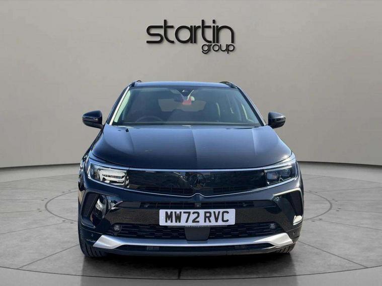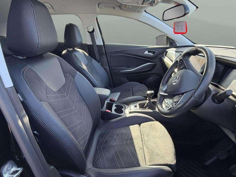 12" colour digital cluster, Central facia display with digital clock, outside air temperature and audio information, Cruise control with speed limiter, Digital fuel gauge with low fuel level warning light, Digital rev counter, Digital speedometer, Digital water temperature gauge with warning light, Driver drowsiness alert system, Driver information - Total mileage, service indicator, oil life, Front and rear parking distance sensors with 360 degree rear view camera and advanced park assist, Gearshift up/down indication light, Lane departure warning system, Lane keep assist, Lights on audible warning, Multi function trip computer - Trip odometer, vehicle range, average speed and fuel economy, instantaneous fuel economy and driving time, Multimedia navi pro with 10" colour touch+ sat nav+AM/FM/DAB radio, bluetooth audio streaming/mobile phone portal, Apple carplay/Android auto, USB, Power operated tailgate with foot sensor, Side blind spot alert, Speed sensitive electric power assisted steering, Speed sign recognition, Vauxhall connect including Emergency call (SOS e-call) and Breakdown call (b-call), Wireless charger for mobile devices, Anti-roll bars, Compound crank rear suspension with coil springs and gas pressure dampers, Independent decoupled MacPherson strut front suspension with gas pressure dampers and coil springs, anti-roll bar, Six speaker - four front + two rear, Steering wheel mounted audio/phone/cruise controls, Alloy effect front and rear skid plates, Automatic lighting control, Automatically dimming anti dazzle rear view mirror, Black door mirrors, Black roof, Black side window trim, Body colour door handles, Body colour lower front and rear bumpers, protective wheel arches and lower door cladding, Body colour upper front bumper, Collapsible windscreen wipers, Dark tinted rear side and tailgate windows, Door to door illumination, Electrically operated front and rear windows with safety auto reverse and one touch up/down facility, Front wiper system spraying directly from wipers, Hazard warning lights, Heated rear screen with timed cut off, Heated windscreen, High beam assist, High gloss black Griffin for Vizor and tailgate with high gloss black Grandland tailgate lettering, High gloss black roof rails, High level centre rear brake light, IntelliLux adaptive LED pixel headlights and LED tail lights, Intermittent rear window wash/wipe, LED daytime running lights, LED front fog lights, Magic wash, Manual headlight beam levelling, Rain sensor windscreen wipers, Rear side wing doors, Rear spoiler, Reversing light, Shark fin aerial, Silver effect protective front and rear skid plate, Soundproof insulated windscreen, Tinted windows, Twin electrically adjustable and heated power door mirrors (wide-angle on drivers side) with automatic timed cut-off, Two speed windscreen wipers with variable intermittent wipe, Upper and lower bumper design, Vizor front grille, Welcome lighting, 12v plug in front console and 12v plug in boot, 3 bench rear seats in 2nd row, 3 spoke flat bottom leather steering wheel with satin chrome effect bezel, 4 way electric driver lumbar support, 4 way passenger electric lumbar support, 60/40 split folding rear seat with centre rear seat armrest and load though facility, Advanced predictive logic control system using a sun sensor, Alcantara upholstery, Ambient centre console downlighter, Automatic air direction and fan speed with manual override, Charcoal filter, Chrome effect interior door handles, Covered storage compartment in centre console and in driver armrest, Driver's centre armrest, Drivers and front passengers seat with height, reach, tilt, backrest adjustment and seat cushion extension, Dual zone electronic climate control, Ergonomic active drivers sports style seat, Ergonomic active front passenger sports style seat, Front door pockets with 2.6 litre capacity, Front seat back storage pockets, Fully carpeted luggage area, Height adjustable headrests, Illuminated driver/passenger sunvisors with vanity mirror, Illuminated luggage area, ISOFIX on front passenger and rear outer seats, Luggage compartment cover, Reach + rake adjustable steering column, Rear centre seat head restraint, Rear door pockets with 1.8 litre capacity, Rear passenger compartment heating ducts, Rear reading lights, Two drinks holders in centre console, Winter pack - Grandland, Anti-lock braking system (ABS), Automatic emergency braking with pedestrian detection, Child proof locks on rear doors, CSC - Cornering stability control, Deactivation switch for front passenger front and side impact airbags, Deflation detection system, Driver airbag, Dual seatbelt pretensioners on front seats, EBD - Electronic brakeforce distribution, Electronic parking brake, Electronic stability program (ESP) including traction control, Front brake ventilated disc 304mm diameter, Front passenger airbag, Front seat side impact airbags, Full size curtain airbags for driver, front seat passenger and outer rear seat passengers, Hill start assist, Hydraulic Brake Assist (HBA), Inertia reel lap and diagonal seatbelts for all seats, Load limiters on outer rear seatbelt retractors, Pretensioners on outer rear seatbelt retractors, Rear brake ventilated disc 268mm diameter, Smart seatbelt reminder for front and rear seats, Tyre pressure monitoring system, Deadlocking system, Electronically protected audio equipment, Engine deadlock immobiliser, Keyless entry and start, Locking wheel nuts, Remote control central locking activation switch on driver door, Remote security alarm system, Black door panels with black premium leather effect inserts, Dax decor facia panel with palladium medium finish, 19" diamond cut bi-colour alloy wheel, Tyre inflation kit,