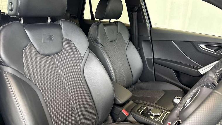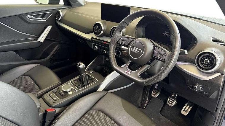 Audi connect navigation and infotainment includes innovative services, Audi connect remote and control connects your vehicle to your smartphone, Audi drive select: power steering assistance + engine (modes: comfort, auto, dynamic, efficiency, individual), Audi smartphone interface - Apple carplay/Android Auto, USB connect, 2xSDXC card readers, voice control for navi, telephone, music and 3rd party apps, Audi virtual cockpit, Automatic start/stop system with recuperation, Bluetooth interface includes bluetooth audio streaming, Cruise control, E-call, MMI navigation plus with MMI touch, Power operated tailgate, Progressive steering, Rear parking sensors, Sport suspension, 6 passive loudspeakers, DAB Digital radio, Audi beam, Auto dimming rear view mirror, Black window trims, Bumper in full body colour paint finish, Electrically adjustable, folding, auto dimming and heated door mirrors with integrated LED side indicators, Front windscreen with grey tinted sunband, LED daytime running lights, LED headlights with dipped beam, high beam, position lights, indicators, LED rear lights, LED third brake light, Privacy glass - dark tinted rear and rear side windows from B-pillar backwards, Rear side wing doors, Rear wiper, Variable front intermittent wipers, Wheel arch trims in manhattan grey, 12v socket in front, 3 seat bench in 2nd row, 3 spoke flat bottomed multi-function leather sport steering wheel, 4-way electric lumbar support for front seats including manual seat height adjustment for both front seats, 60/40 split folding rear seat bench, Black cloth headlining, Front and rear head restraints, Front centre armrest, Front sport seats, Front/rear floor mats, Height/reach adjust steering wheel, Illuminated door sill trims with S logo, ISOFIX child seat mounting in front passenger and rear outer seats, Manual air conditioning, Single front passenger seat, Stainless steel pedals, Tool kit, Black styling pack - Q2, 3x3 point rear seatbelts, 6 airbags - Front, curtain and front side airbags, Electromechanical parking brake, Electronic stabilisation control including ABS, ASR and EDL, Front passenger airbag deactivation, Hill hold assist, Pre-sense front with pedestrian recognition, Seatbelt monitoring, Tyre pressure warning light with visual and acoustic warning, Warning triangle and first aid kit, Anti theft alarm, Anti theft wheel bolts, Electronically operated child locks, Remote central door locking, Aluminium interior element, Matt brushed aluminium trim inlays,