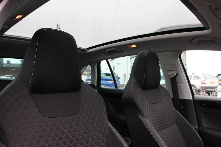 Amundsen sat nav system + DAB, Bluetooth system, Outside temperature gauge, PAS, Service indicator, Trip computer, Voice control system, 6 speakers, 6.5" touchscreen, Multi device interface, SD card slot, USB port, Aero wiper + intermittent function, Black door mirrors, Black rear spoiler, Body colour bumpers, Body colour door handles, Cornering front fog lights, Dark tinted rear lights, Daytime running lights, Electric front windows, Electrically adjustable and heated door mirrors, Extended tailgate glass, Fixed panoramic glass roof, Heated rear window, Height adjustable headlamps, Privacy glass, Radiator grille with chrome surround, Rear electric windows, Rear wash/wipe, Tinted glass, 12V Accessory socket in centre console, 3 spoke multifunction leather steering wheel + audio/phone controls, 60/40 split fold rear seat back, Black interior door handles, Centre console with storage/cupholders, Climate control air conditioning, Cloth upholstery, Driver seat height adjust, Driver's sun visor with vanity mirror, Front armrest with storage box, Front cupholders, Front seatback pockets, Glovebox, Height adjustable front headrests, Height adjustable rear head restraints, Height/reach adjust steering wheel, Interior light, Isofix child seat preparation, Leather gaiter, Leather handbrake lever, Luggage compartment lighting, Passenger sunvisor with vanity mirror, Pollen filter, Sports pedals, Sports seats, Storage compartment in rear doors, Sunglasses storage, Ticket holder, Umbrella under front passenger seat, 3x3 point rear seatbelts, ABS+ASR+MSR, Curtain airbags, Driver and passenger airbags, Driver seatbelt warning indicator, EDS, ESP, Fuel cut off safety device, Hydraulic Brake Assist (HBA), Passenger airbag deactivate switch, Predictive pedestrian protection, Side airbags, Traction control, Two tone horn, Tyre pressure monitor, Alarm/immobiliser, Remote control central locking, Chrome interior trim, 17" Savio black alloy wheels,