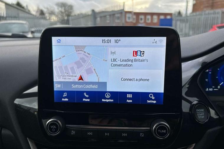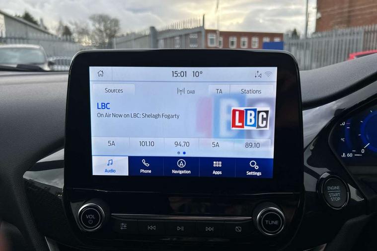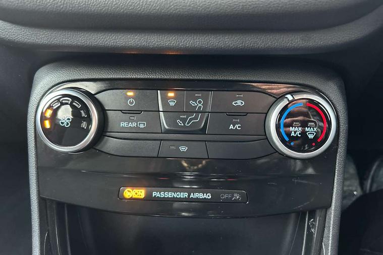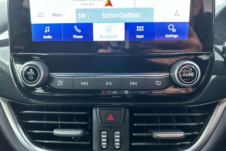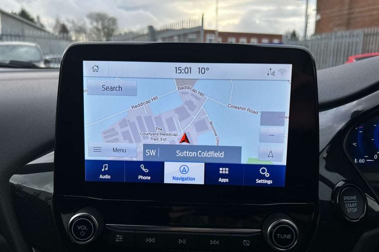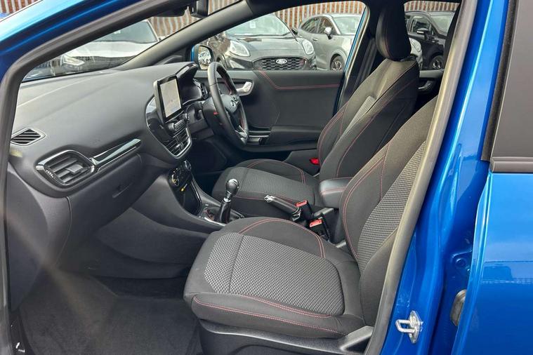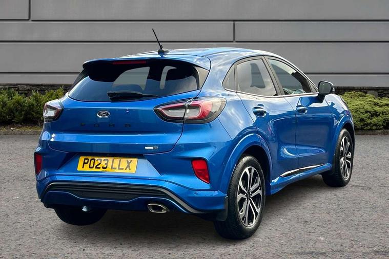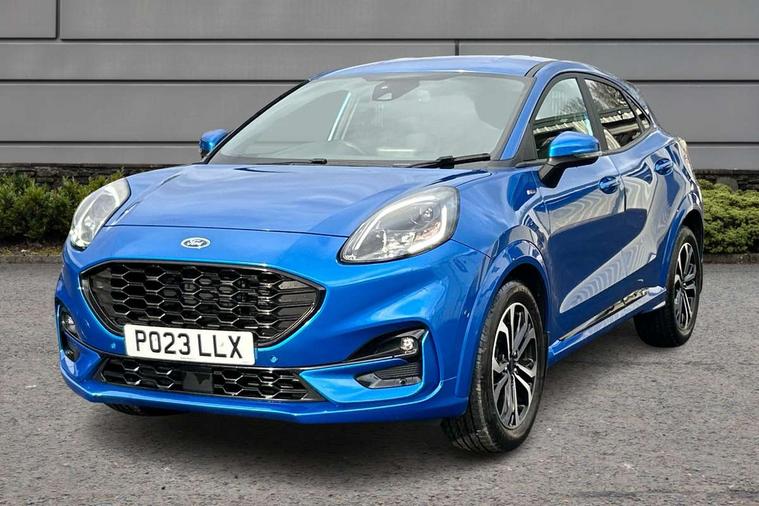 Driver impairment monitor, Emergency call service, Ford easy fuel, Full digital 12.3" instrument cluster, Lane keeping aid with lane departure warning, Power assist steering, Power start button, Rear parking sensor, Selectable drive modes(Normal, Eco, Sport, Slippery and Trail), Speed sign recognition, Sport suspension, Automatic headlights with auto high beam, Automatic rain sensing wipers, LED rear lamps, Power foldable heated door mirrors with puddle lamps, Projector headlamps with LED day time running lights and front fog lamps, Quickclear heated windscreen, Rear side wing doors, Rear wiper, ST-Line body styling kit with unique grille and large body colour rear spoiler, Third brake light, 3 seat bench in 2nd row, Centre console with armrest and stowage, Ford megabox extended bootspace, Front and rear head restraints, Front floor mats, Manual 2 way passenger seat adjustment, Manual 4 way driver seat adjust with lumbar adjustment, Single front passenger seat, ST- Line cloth trim with red stitching, ST-Line flat bottomed sensico leather steering wheel with leather handbrake and aluminium gear knob, Ford SYNC 3 navigation pack - Puma, 3 rear seatbelts, Child safety lock, Electronic stability control (ESC) and hill start assist, Pedestrian/cyclist detection & post-collision braking, Pre collision assist system, Tyre pressure monitoring system (TPMS), Thatcham alarm,