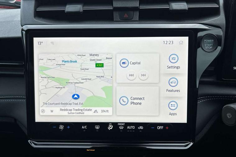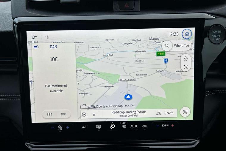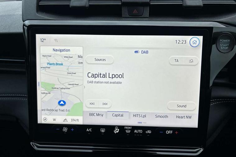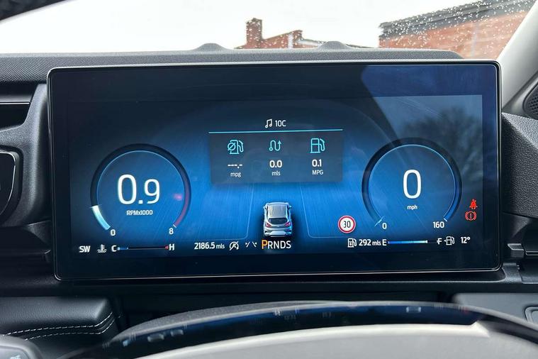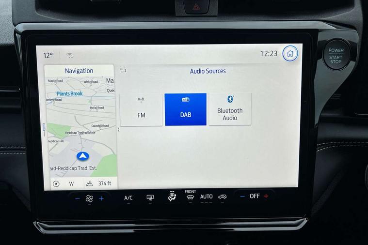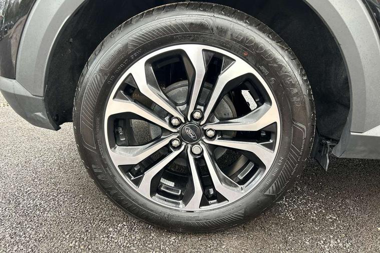 Driver impairment monitor, Emergency call service, Ford easy fuel, Full digital 12.8" instrument cluster, Lane keeping aid with lane departure warning, Power assist steering, Selectable drive modes(Normal, Eco, Sport, Slippery and Trail), Speed sign recognition, Standard suspension, 12" landscape touchscreen display with wireless apple car play and android auto 6 speaker audio system, Ford pass connect and emergency assistance, Ford SYNC4 with connected navigation, Automatic headlights with rain sensing wipers and auto high beam, Front fog lamps, LED daytime running lights, LED rear lamps, LED third brake light, Quickclear heated windscreen, Rear privacy glass, Rear side wing doors, Rear wiper, 3 seat bench in 2nd row, Centre console with armrest and stowage, Electronic automatic temperature control (EATC), Ford megabox extended bootspace, Front and rear head restraints, Front floor mats, Manual 4 way driver seat adjust with lumbar adjustment, Single front passenger seat, Titanium cloth upholstery, 3 rear seatbelts, Child safety lock, Electronic stability control (ESC) and hill start assist, Pre-collision assist with autonomous emergency braking, pedestrian/cyclist detection & post-collision braking, Tyre pressure monitoring system (TPMS), Thatcham alarm, 17" Absolute black machined finish alloy wheel,