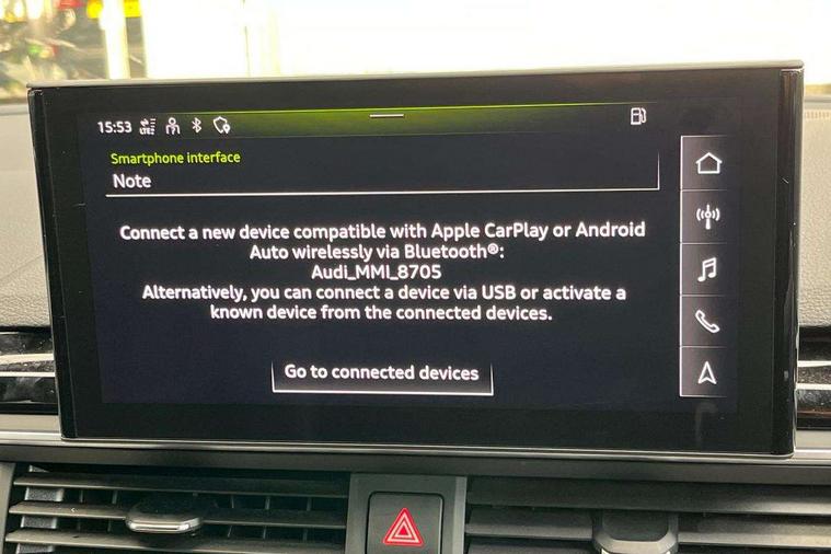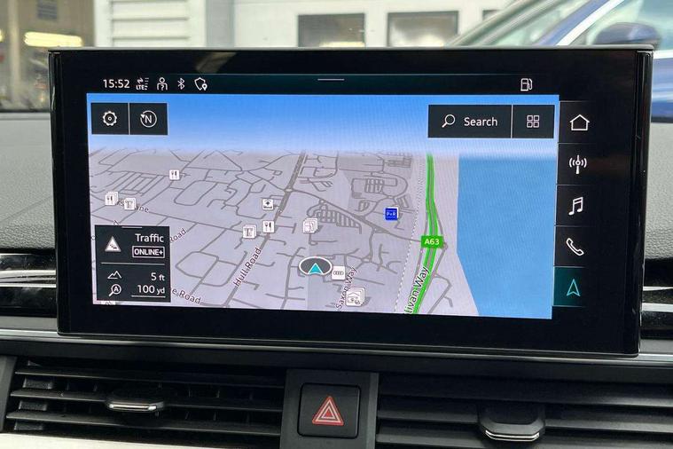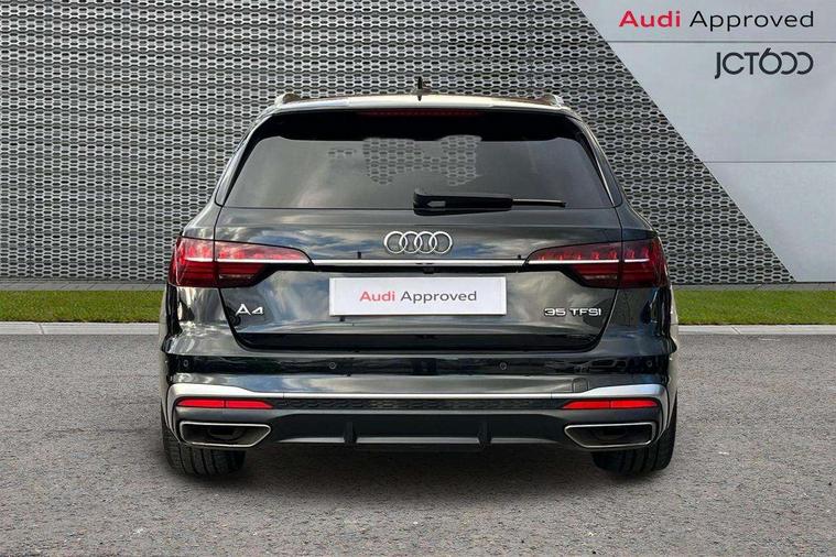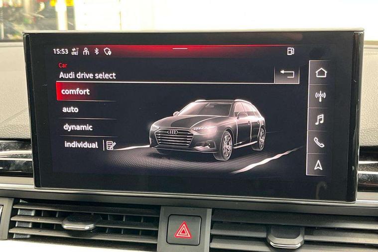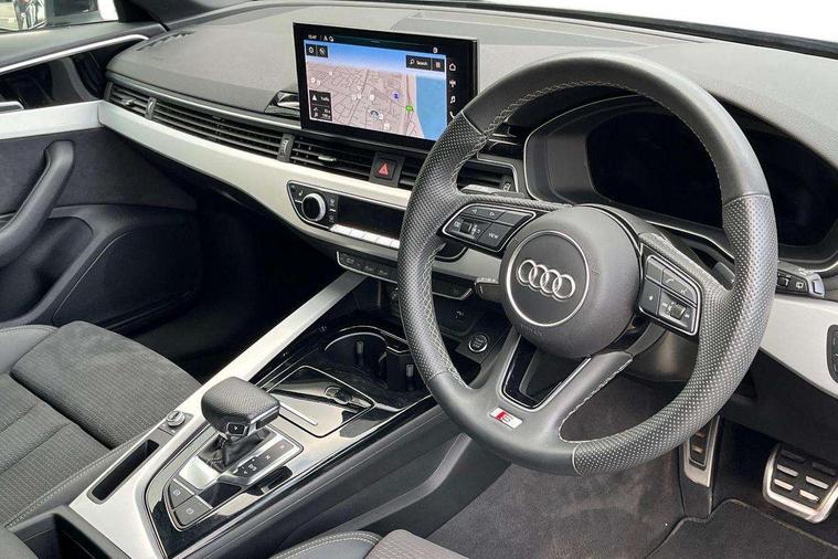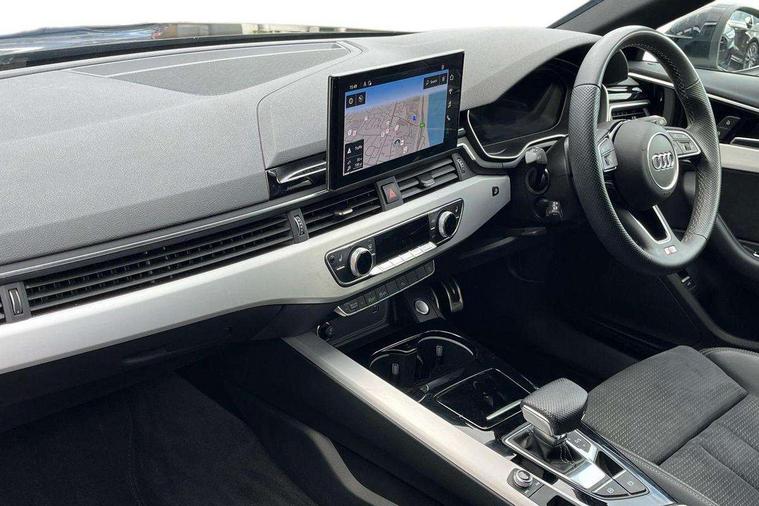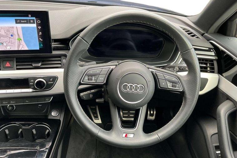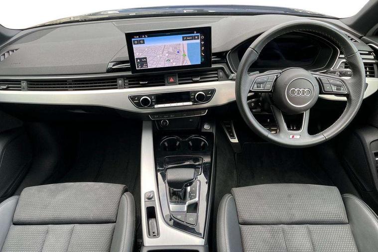Audi connect safety and service (e-call), Audi drive select, Audi smartphone interface, Audi virtual cockpit, Automatic start-stop system with coasting functionality and efficiency programme, Bluetooth interface, Camera based traffic sign recognition, Electromechanical power steering, Email, calendar and text messages displayed via MMI, Front and rear parking sensors, Lane departure warning, MMI Navigation plus with MMI touch includes 10.1" high resolution colour MMI display, 3D map, Power operated tailgate, Rear view camera, Voice control system, 54 litre fuel tank, Sports suspension lowered by 23mm, 2 USB charging ports, 8 passive loudspeakers, DAB digital radio reception, Aluminium roof rails, Auto dimming rear view mirror, Body colour door handles, Body colour front spoiler lip, Body colour side sill trim, Body coloured door mirrors, Electrically folding auto dimming/adjustable/heated door mirrors with LED side indicators and kerb view function for passenger side, Grained matt black side air inlets with matt aluminium silver inlay, High beam assistant, Honeycomb structure radiator grille in grained matt black, LED headlights with LED rear lights + dynamic rear indicators + headlight adjustment and high beam, turning light + LED daytime running lights, LED third brake light, Matt aluminium silver tailpipe trim, Privacy glass, Rain and light sensors, Rear side wing doors, Rear wiper, S Line badges on the front wings, S line front and rear bumpers with side skirts, S Line rear diffuser in matt anthracite black with trim strip in matt aluminium silver, S Line roof edge spoiler, Variable intermittent front wash/wipe, Windscreen with acoustic glazing, 3 spoke high multi-function sports leather steering wheel grips in perforated leather with S badging including paddle shift, 4 way electric lumbar support for driver and front passenger, 40/20/40 split folding 3 rear seat bench in 3 parts with rear centre armrest, Black cloth headlining, Black perforated leather gearknob, Contrast stitching on seats, steering wheel and gear lever gaiter, Deluxe 3 zone electronic climate control, Door sill trims with aluminium inlay, Electric load area cover, Front and rear head restraints, Front centre armrest, Heated front seats, Illuminated door sill trims with S logo, ISOFIX child seat mounting and top tether, Manual seat adjustment, Single front passenger seat, Stainless steel pedals and foot rest, High gloss package - A4, LED Interior light pack - A4/S4, 3 rear seatbelts, 6 airbags - Driver, front passenger, curtain and side windows, Attention and drowsiness assist, Electronic Stabilisation Control (ESC) including ABS, ASR and EDL, Hill hold assist, Multi collision brake assist, Pop-up bonnet for pedestrian protection, Pre sense city, Rear door child safety locks, Seatbelt monitoring, Warning triangle and first aid kit, Anti theft alarm, Anti theft wheel bolts, Central locking, Keyless Go, Matt brushed aluminium inlays, Tool kit, Tyre repair kit,