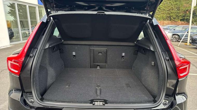 12.3" Progressive Driver Display, 9" centre console portrait touch screen, Adjustable steering wheel force, Android auto (Wired), Apple carplay (wired), Bluetooth handsfree system, Driver alert control, Driver assistance (pilot assist and adaptive cruise control), Driver awareness - Blind spot information system with steer assist, cross traffic alert with autobrake and rear collision warning and mitigation, E-call, Front and rear parking sensors, Front park assist, Google automotive services - Enabled entertainment apps, navigation with google maps, voice recognition with google assistant, Hands free power tailgate, Intelligent speed assistance, Lane keeping aid, Oncoming Lane Mitigation, Speed sensitive steering, Volvo cars services with app - Driving journal, emergency and breakdown call, engine remote start, remote door locking/unlocking and vehicle dashboard, Wireless/Inductive Mobile Phone Charging, Automatic transmission with start/stop and manual change functions, Dynamic chassis, DAB Digital radio, Steering wheel mounted remote controls, Adaptive brake lights with high level LED brake lights, Auto dimming feature for exterior door mirrors, Auto dimming interior mirror, Auto folding and heated power door mirrors, Automatic headlamp levelling, Automatic LED Headlights + Active high beam incorporating daytime running lights, Dark tinted windows - rear side windows and rear screen, Front aluminium tread plates, Front and rear electric windows, High gloss black front and rear skid plate, High gloss black front bumper deco, High gloss black front grille strikethrough and ironmark, High gloss black rear model, engine and volvo logo badges, High gloss black window trim, Home safe and approach lighting, Integrated roof rails in high gloss black, LED front fog lights, Puddle lights, Rain sensor with automatic windscreen wiper activation, Rear side wing doors, Rear wiper, Roof antenna, Roof spoiler, Visible VIN plate, 12V socket in front tunnel console and luggage compartment, 2-Zone electronic climate control with CleanZone air quality system and pollen filter, 3 seat bench in 2nd row, 3 Spoke tailored steering wheel with chrome trim, 60/40 versatile split folding rear seat, Centre console cupholders and storage, Charcoal carpet and floor mats, Charcoal headlining, Connect suede textile/microtech upholstery, Flexible load floor and grocery bag holder, Front headrests, Front seat cushion extensions, Glovebox bag hook, Heated front seats, Height adjustable passenger seat, Height/reach adjustable steering column, High gloss centre tunnel deco, High level illumination - Front door pocket, front side step (under door), tailgate, instrument panel, front door inlay, rear courtesy&reading lights, Integrated waste bin, Isofix attachments on outer rear seats, Load cover, Load protection net, Mid level illumination - Front footwell, luggage & glovebox compartment, front cabin courtesy & reading lights, illuminated vanity mirrors+ticket holder, Multi directional lumbar support for driver and passenger seat, Power driver seat with memory + exterior mirrors memory, Rear armrest with cupholders, Rear headrests, Single front passenger seat, Underfloor luggage compartment storage, Climate pack without heated front seats - XC40, 3x3 point rear seatbelts, City safety with steering support with Pedestrian + cyclist + front collision warning with full auto brake and rear auto brake, Driver and passenger airbags, Drivers knee airbag, Electronic parking brake with auto hold, First aid kit, Front and outer rear seatbelt reminder and pretensioners, Front seats SIPS airbags, Hill descent control - Off-road drive mode, Hill start assist, IC (Inflatable Curtains) - Full Length, Passenger airbag cut-off device, Power child locks on rear doors, Road sign information display, Run off Road Protection, SIPS (Side Impact Protection System), Slippery road and hazard light alert, Stability and Traction Control with Spin control, Engine Drag Control and Corner Traction Control, Tyre pressure monitoring system, Vehicle deceleration control with Anti-lock Brake System, Electronic Brake Distribution and Emergency Brake Assist, Warning triangle, WHIPS whiplash protection system - front, 2 x Key integrated remote control central locking including with deadlocking system and auto open/close windows, Anti-theft alarm including immobiliser/volume sensor + level sensor, Keyless drive includes keyless entry and keyless start, Locking wheel nuts, 20" 5 spoke high gloss black alloy wheels,