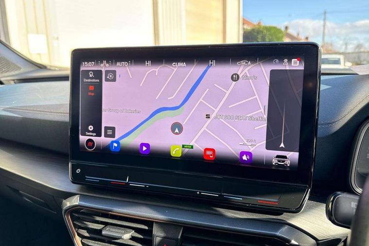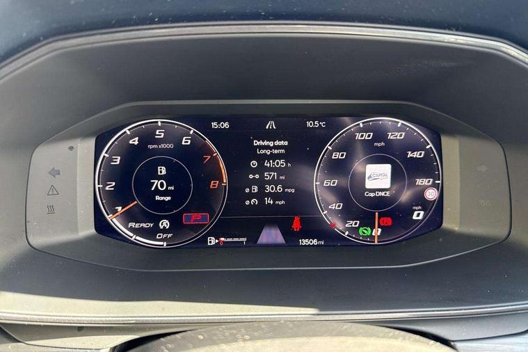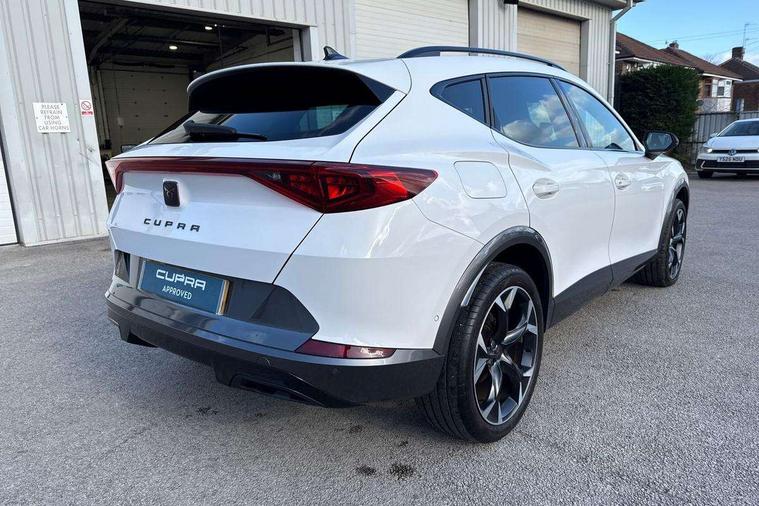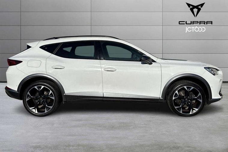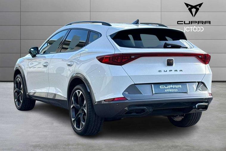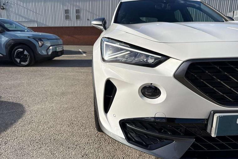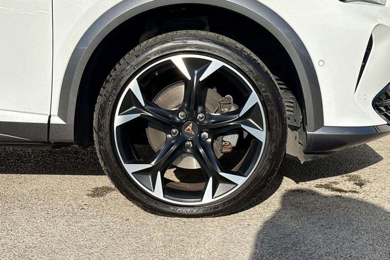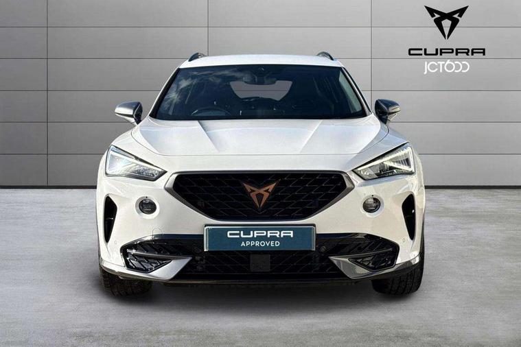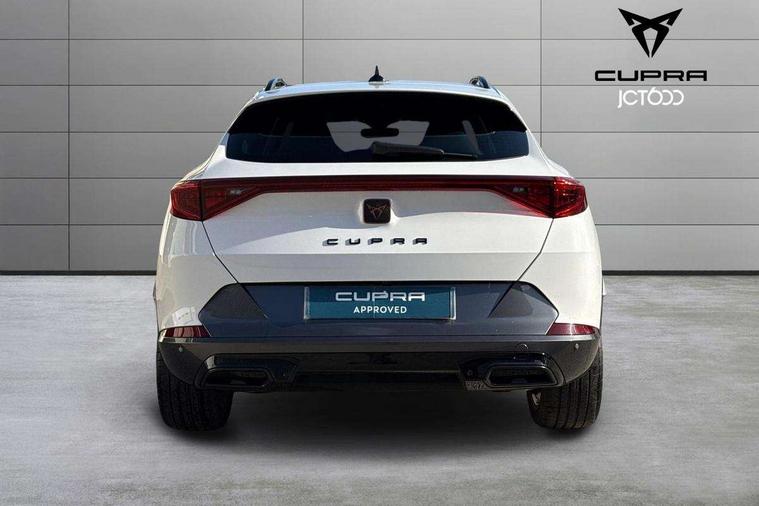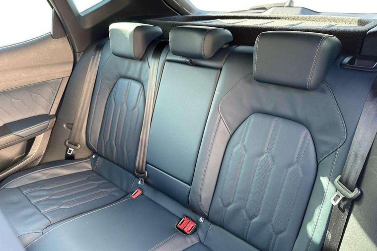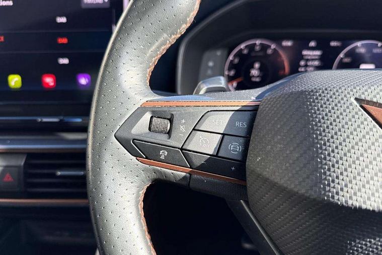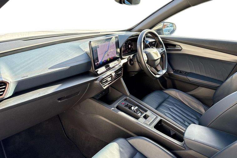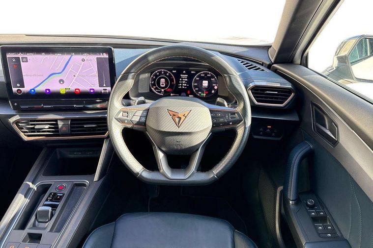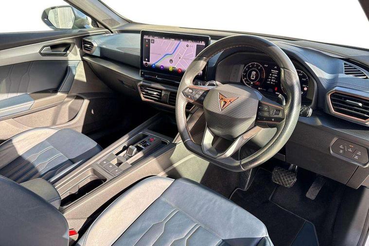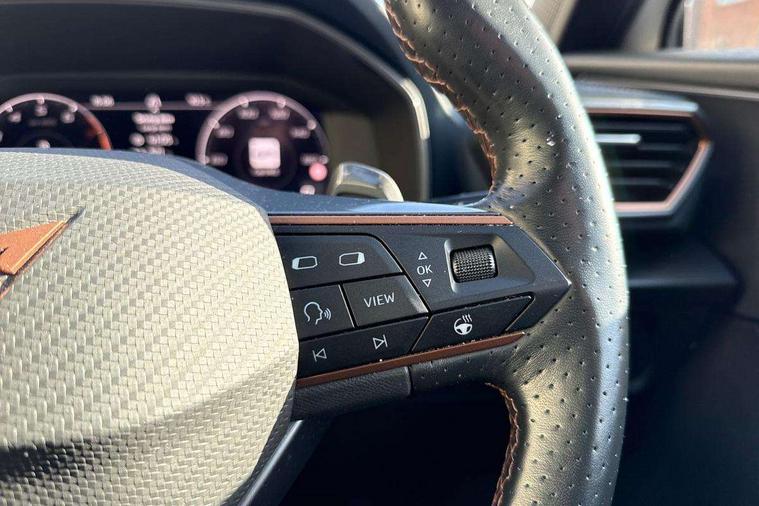 Digital cockpit and configurable dashboard, Driver alert system, Driving profile selection, Forward collision warning with automatic braking, Lane assist, Navigation system with 12'' Touchscreen Display, Park assist (inc front/rear parking sensors), PAS, Predictive adaptive cruise control with speed limiter, Rear view camera, RPM, trip computer, outside temp gauge, instrument light brightness, low fuel warning light, lights on reminder, gearshift indicator, Service interval indicator, Start/stop system with regenerative braking, Voice control system, Wireless apple carplay, Wireless phone charger, Electronic locking differential and dynamic traction support, Standard suspension, 2 front and 2 rear USB type C sockets, Auxiliary input socket, DAB radio, Auto dimming rear view mirror, Body colour door handles, Body coloured bumpers, Dark grey wing mirror, Daytime running light with automatic headlight control and coming home feature, Dynamic headlight range control, Electric front/rear windows, Electrically adjustable heated and folding door mirrors with memory function, Front fog lamps with cornering function, Gloss black roof rails and window surrounds, LED Headlights, LED Taillights with dynamic indicator, Rain sensing wipers, Rear diffuser with black simulated exhaust pipes, Rear side wing doors, Rear wash/wipe, Third brake light, Tinted rear windows, Welcome lights, 12v power supply in centre console, 12V socket, 12v socket in loadspace, 2 front and 2 rear reading lights, 230V socket, 3 seat bench in 2nd row, 60/40 split rear bench seat with armrest and mechanical seat release, Black headlining, Dust/pollen filter, Front and rear head restraints, Front centre armrest, Height/reach adjust steering wheel, Illuminated interior front door sills, Illuminated sunvisor with mirror, Isofix, Leather multi function heated steering wheel with gear shift paddles, Luggage tie-down hooks, Single front passenger seat, Three zone climate control with control panel in rear, Variable luggage/load compartment floor, Wraparound lighting, Genuine Nappa leather Pack - Cupra, 3 point seatbelts on all rear seats, ABS, Brake control system - ESC and brake booster, Child proof door locks, Driver and front passenger airbags with front passenger airbag de-activation, Electronic parking brake, Front and rear disc brakes, Front side curtain airbags, Hill hold control, Public e-call, Seat belt reminder for front and rear seats, Tyre pressure monitoring system, Anti theft alarm system, Keyless entry and start system (KESSY), Locking wheel bolts, Copper and aluminium interior detailing, 19" 'Exclusive' machined sport matte black and silver alloy wheels,