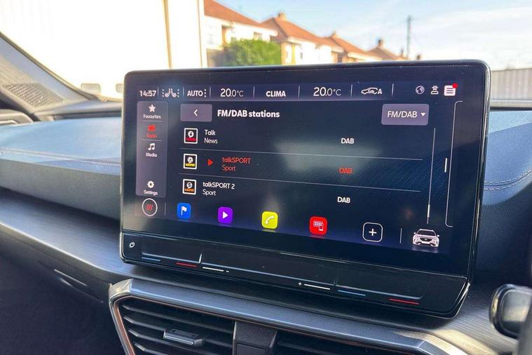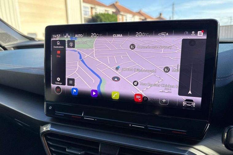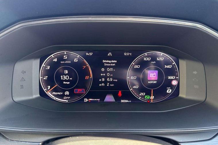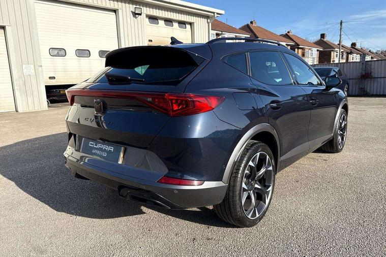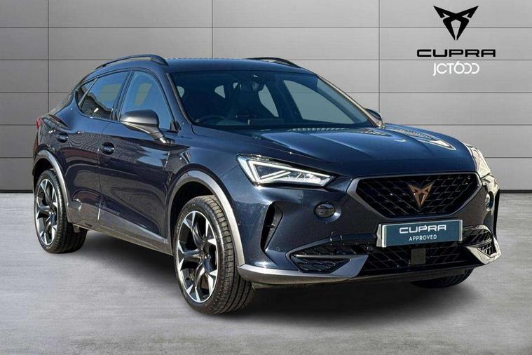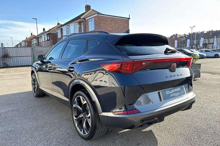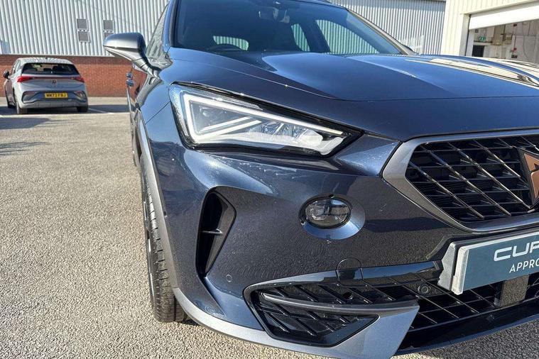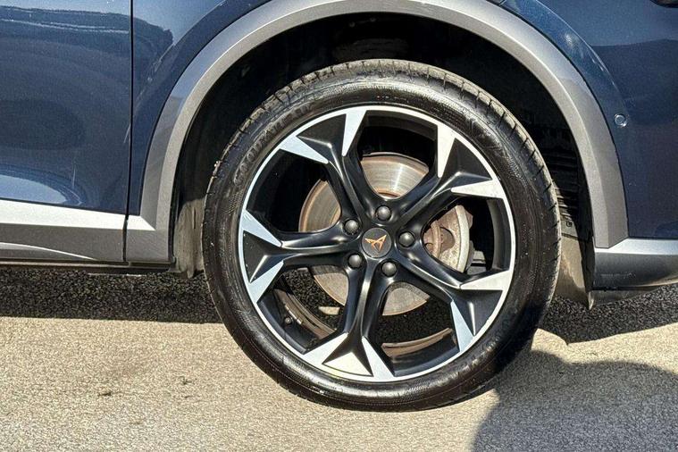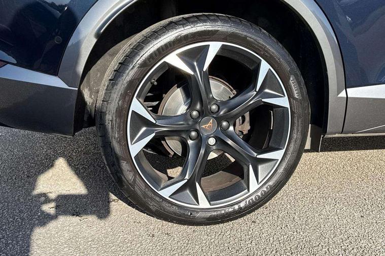 Digital cockpit and configurable dashboard, Driver alert system, Driving profile selection, Forward collision warning with automatic braking, Lane assist, Navigation system with 12'' Touchscreen Display, Park assist (inc front/rear parking sensors), PAS, Predictive adaptive cruise control with speed limiter, Rear view camera, RPM, trip computer, outside temp gauge, instrument light brightness, low fuel warning light, lights on reminder, gearshift indicator, Service interval indicator, Start/stop system with regenerative braking, Voice control system, Wireless apple carplay, Wireless phone charger, Electronic locking differential and dynamic traction support, Standard suspension, 2 front and 2 rear USB type C sockets, Auxiliary input socket, DAB radio, Auto dimming rear view mirror, Body colour door handles, Body coloured bumpers, Dark grey wing mirror, Daytime running light with automatic headlight control and coming home feature, Dynamic headlight range control, Electric front/rear windows, Electrically adjustable heated and folding door mirrors with memory function, Front fog lamps with cornering function, Gloss black roof rails and window surrounds, LED Headlights, LED Taillights with dynamic indicator, Rain sensing wipers, Rear diffuser with black simulated exhaust pipes, Rear side wing doors, Rear wash/wipe, Third brake light, Tinted rear windows, Welcome lights, 12v power supply in centre console, 12V socket, 12v socket in loadspace, 2 front and 2 rear reading lights, 230V socket, 3 seat bench in 2nd row, 60/40 split rear bench seat with armrest and mechanical seat release, Black headlining, Dust/pollen filter, Front and rear head restraints, Front centre armrest, Height/reach adjust steering wheel, Illuminated interior front door sills, Illuminated sunvisor with mirror, Isofix, Leather multi function heated steering wheel with gear shift paddles, Luggage tie-down hooks, Single front passenger seat, Three zone climate control with control panel in rear, Variable luggage/load compartment floor, Wraparound lighting, Genuine Nappa leather Pack - Cupra, 3 point seatbelts on all rear seats, ABS, Brake control system - ESC and brake booster, Child proof door locks, Driver and front passenger airbags with front passenger airbag de-activation, Electronic parking brake, Front and rear disc brakes, Front side curtain airbags, Hill hold control, Public e-call, Seat belt reminder for front and rear seats, Tyre pressure monitoring system, Anti theft alarm system, Keyless entry and start system (KESSY), Locking wheel bolts, Copper and aluminium interior detailing, 19" 'Exclusive' machined sport matte black and silver alloy wheels,