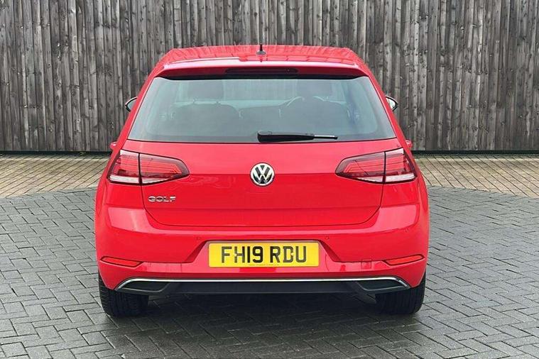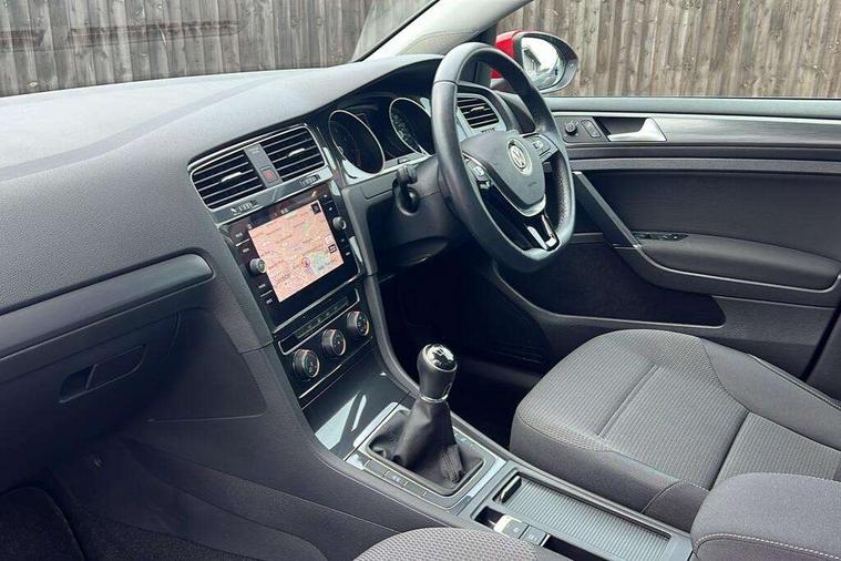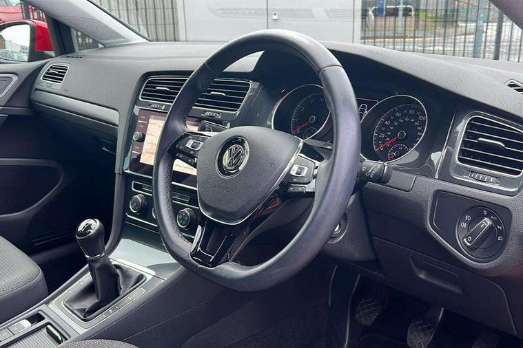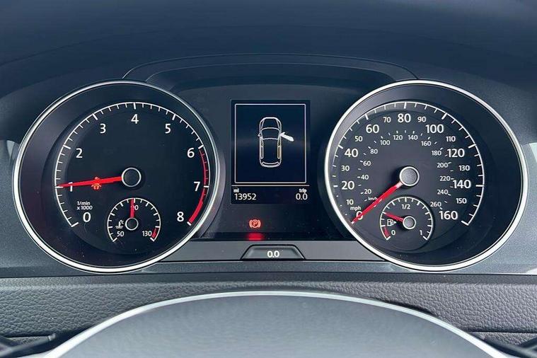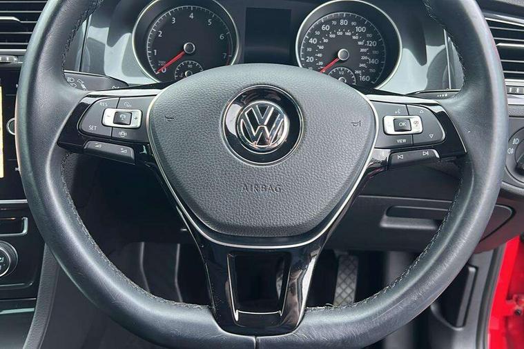 'Lights On' Reminder warning buzzer, ACC - Adaptive cruise control with front assist, forward collision warning, distance monitoring, city emergency brake and speed limiter, Bluetooth telephone and audio connection for compatible devices, Brake pad wear indicator warning light, Driver alert system, Driver profile selection, Driving Mode Selection with four preset modes - Eco, normal, sport or individual modes, Instrument cluster in white, Multifunction computer with visual gear change recommendation for fuel consumption, Power assisted speed sensitive electro-mechanical steering, Push tank flap, Speed limit display, Speedo, rev counter, electronic odometer, trip, service interval display, exterior temperature and fuel gauge, Stop/start system, Warning buzzer and light for front seatbelts unfastened, Battery regeneration during braking, XDS electronic differential lock, Composition media system, DAB Digital radio receiver, MP3/WMA compatability, Multi device interface (MDI) with USB connection, Personalisation 1.1 profile for media, Premium USB cable in choice of either Apple or Android smartphone compatibility, SD card slot, SMS Functionality, USB and SD card connectivity, Black front air intake and radiator grille with chrome insert, Black rear diffuser, Body colour bumpers, Body colour door handles, Body colour door mirrors with integrated indicators, Dusk sensor + automatic driving lights, Electric front windows, Electric rear windows, Electrically adjustable and heated door mirrors, Fully galvanised body, Heated rear windscreen, Hidden exhaust pipe, High level 3rd brake light incorporating LED Technology, LED daytime running lights, LED front fog lights with static cornering light function, Rear fog lamp, Rear tinted glass 65% light absorbing from B pillar backwards, Rear window aerial, Rear window wash/wipe with intermittent wipe, Reflectors in all doors, Tailgate with integrated rear roof spoiler, Windscreen wipers/ intermittent wipe + 4 position delay, 12V socket in luggage compartment, 3 rear headrests, 4 load lashing points in luggage compartment, 60/40 split folding rear seat backrest, Auto fold down lever in rear seat backrest, Bag hook in luggage compartment x 2, Cooled glovebox, Cupholder cover, Dust/pollen filter, Front and rear reading lights incorporating LED technology, Front centre armrest with storage compartment and two rear air vents, Front seat back storage pockets, Grab handles front x 2, rear x 2 with integrated coat hooks, Height and reach adjustable steering wheel, Illuminated vanity mirrors, Instrument lighting white adjustable panel illumination, Interior light delay, Isofix preparation for 2 rear child seats, Load through provision with rear centre armrest and cupholders x2, Luggage compartment lighting, Overhead storage box, Passenger underseat drawer, Pearl grey headlining, Storage box in luggage compartment, Storage compartment in roof console with cover, Storage compartments in centre console, Storage compartments in front doors, Storage compartments in rear doors, Stowable luggage compartment cover, Sun visors, Variable boot floor, height adjustable and removable, Convenience Pack - Golf, Light and Sight pack - Golf, Mirror pack - Golf, 3 rear three point seatbelts, Airbags - Driver's and front passenger's, curtain airbag, Driver's knee, front side impact and passenger's airbag deactivation switch, Anti-lock Braking System (ABS) with Hydraulic Brake Assist (HBA), Automatic post collision braking system, Child locks on rear doors, Driver/Passenger optimised head restraints, Electronic parking brake with auto hold, Electronic stability control (ESC) including Electronic differential lock (EDL) and ASR (Traction control) with deactivation via infotainment system, Pre crash preventive occupant protection, Three point height adjustable front seatbelts with tensioners, Tyre pressure loss indicator, Alarm with interior protection and deactivation via infotainment system, Electronic engine immobiliser, Remote central locking with 2 remote folding keys, Brushed dark silver decorative inserts in dash and door panels, Chrome plated air vent surround, Chrome plated electric mirror adjustment light switch surround, Polar night black centre console, Steel space saver spare wheel,