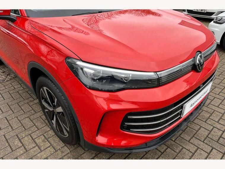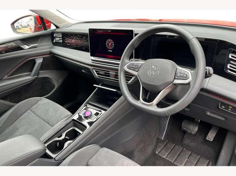 Adaptive cruise control (ACC), Advanced driver attention and drowsiness monitor, Bluetooth mobile phone interface, Car2X technology, Comfort drive travel assist, lane keeping system, lane assist and emergency assist, Digital Cockpit Pro - 10.25" high resolution dash display screen with customisable menus and information, Dynamic road sign display, E-Sim card for online connectivity, eCall emergency call service, Front Assist - Autonomous emergency braking with pedestrian and cyclist monitoring, Lane change system, Side assist, Rear traffic alert and Exit warning system, Multifunction front facing camera, Oncoming vehicle braking when turning including swerve support, Park assist pro with park distance control (Remote park assist), Power assisted steering with speed sensitive, Start/stop system with regenerative braking, Warning signal and warning light for front and rear seatbelts not fastened, Wireless App-Connect, Adaptive chassis control DCC pro includes driving mode selection, Charging cable Mode 3 Type 2 / 3 (16A), Front shock absorption, Front wheel drive, Rear shock absorption, Digital radio reception (DAB), Diversity antenna for FM reception, Air intake with Chrome trim, Ambient lighting with logo projection, Auto dimming interior rear view mirror, Automatic headlight control system, Body colored bumpers in R-Line style, Body coloured door handles, Body-coloured exterior mirror housings, Chrome moldings on the side windows, Coming/leaving home lighting function, Heat insulating glass in side and rear windows, Heated rear window, Heated windscreen washer jets, High level 3rd brake light, Illuminated door handle recesses, Illuminated lightline between headlamps, Laminated safety glass from B-pillar backwards 90% tinted, Laminated safety glass windshield, Rain sensor windscreen wipers, Rear fog light on one side, reversing light on both sides, Rear side wing doors, Rear wiper, Silver roof rails, 12V outlet in center console rear and in luggage compartment, 12V socket in centre console, 3 bench rear seats in 2nd row, Air care climatronic 3 zone air conditioning system with rear air conditioning control panel, Carpet mats, front and rear, Centre console with illuminated storage compartment with sliding cover and two drinks holders, Ceramique headlining, Chrome elements on the mirror switch and power window switches and door pulls, Door and side trim panel with leatherette insert, Door sill protectors, Front centre armrest, Interior ambient lighting with 30 colour options, ISOFIX anchors for child seats on outer rear seats and front passenger seat compatible with i-Size, Mechanical rear seat release, Power adjustable lumbar support in front, Rear bench seat, split folding, longitudinally movable and folding with load-through hatch and centre armrest, Safety optimised front head restraints, Single front passenger seat, Sports comfort seats in front, Sun visors with illuminated vanity mirrors, Three rear head restraints, Variable luggage compartment floor, Comfort package incl. Memory feature for Park assist and Safelock - Tiguan, Driver assistance package - Tiguan, 3 point seat belt for centre rear seats, 3 Point seat belts in front with pretensioners, 3 point seatbelts in outer rear with ECE label, Driver and front passenger airbag with front passenger airbag deactivation, Electronic parking brake with auto hold, Front and rear curtain airbags, Front and rear side airbags, Front centre airbag, Front disc brakes, Hill start assist, Manual child proof rear door locks, Rear disc brakes, Two tone horn, Warning triangle, Anti theft wheel bolts, Decorative inserts Cross in dash and front door panels, Interior door handle in matte chrome, Soul instrument panel, Tool kit for tyre mobility set, Tyre mobility kit including compressor and sealing foam,