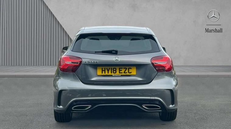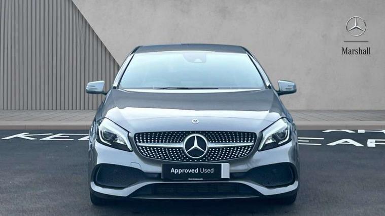8" colour display screen, Attention assist, Bluetooth interface for hands free telephone, Bulb failure indicator, Collision prevention assist plus, DYNAMIC SELECT with a choice of driving modes (ECO, Comfort, Sport, Sport+ and Individual), External temperature gauge, Low fluid warning light, Park assist pilot with front and rear park assist, Reversing camera, Service indicator (ASSYST PLUS), Speed dependent sports steering system, Trip computer, Lowered suspension, USB port, Adaptive brake lights, AMG body styling, Auto dimming driver's door mirror, Auto dimming rear view mirror, Body colour bumpers, Body colour door handles, Body colour side skirt, Daytime running lights, Diamond radiator grille with chrome pins and silver louvre + chrome insert, Electric adjustable heated door mirrors, Electric folding door mirrors, Electric front windows, Electric rear windows, Headlamp assist, Heated rear window with timer, High beam assist, LED Headlights, LED tail lights, Rain sensor windscreen wipers, Rear wiper, Twin Trapezoidal tailpipes, 1/3 to 2/3 split folding rear seats, 12 colour Ambient lighting, 12V socket, 3 Spoke sports multifunction flat bottomed leather steering wheel, Auto Mercedes-Benz child seat recognition sensor, Black headlining, Brushed stainless steel sports pedals, Dual zone automatic climate control, Footwell lights, Front and rear reading lights, Front centre armrest with storage compartment, Front head restraints, Front sport seats, Gearshift paddles on steering wheel, Heated front seats, Height adjustable front seats, Height/reach adjustable steering column, Illuminated door sills, Illuminated glovebox, Illuminated storage compartment, Isofix rear child seat preparation, Load securing rings in luggage compartment, Luggage compartment cover, Rear head restraints, Storage compartment under load area floor, Sunvisors with illuminated vanity mirrors, Twin front cupholders, Seat comfort pack - A Class, 3 rear 3 point seatbelts, ABS with Brake Assist, Active bonnet, Adaptive brake system, Brake calipers with Mercedes-Benz lettering + perforated brake discs, Child proof door locks, Crash responsive emergency lighting, Drivers knee airbag, Dual stage driver/passenger airbags, Electronic parking brake, ESP with ASR, Front and rear seatbelt reminder, Front head airbags, Front passenger seat occupancy sensor, Front side airbags, Hill start assist, Tyre pressure monitoring system, Warning triangle and first aid kit, Window airbags, Alarm system/interior protection/immobiliser, Keyless Go access/ignition system, Keyless ignition, Remote central locking, Carbon effect trim, Chrome air vent surrounds, Tirefit sealant with electric air pump,