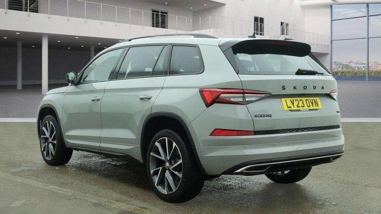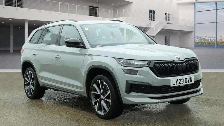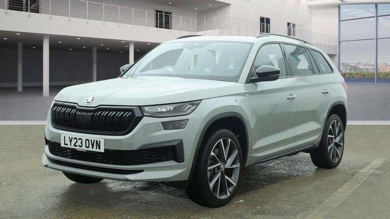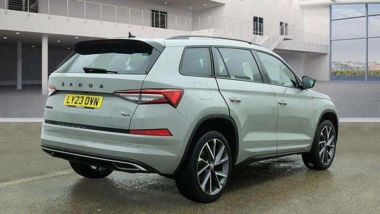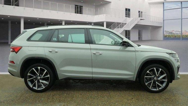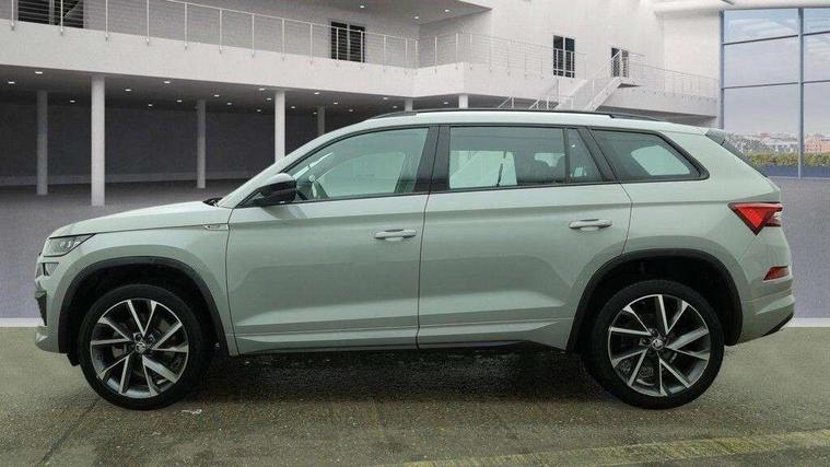 Bluetooth system, Columbus satellite navigation with 9.2" touchscreen, integrated Wi-Fi, web radio, Digital voice enhancement, e call+, ECO Stop/start function, Exterior temperature indicator, Progressive steering, Rear view camera, Smartlink wireless for apple carplay and wired for android auto, Speed limiter, USB C Port x 2 in front centre console, Virtual Cockpit - 10.25" digital display with additional sports design, Wireless charging, 8 speakers, DAB Digital radio, Aero front windscreen wipers with intermittent function, Aero rear window wiper, Auto dimming rear view mirror, Black roof rails, Black sports styling including front grille and window surrounds, Black wheel arch surrounds, Body colour bumpers, Body colour door handles, Electric adjustable/heated/folding door mirrors, driver side auto dimming with boarding sports and memory function, Electric front and rear windows, Extended rear spoiler with finlets in gloss black, Front fog lights, Full LED matrix headlights with AFS (adaptive front light system), cornering function and AWL (all weather lighting system), Gloss black door mirrors, Headlight washers, Heated rear window, Invisible tailpipe, LED daytime running lights, LED rear fog light, LED third brake light in rear spoiler, Light assistant (coming/leaving home/tunnel light), Off-road style lower front bumper element, Privacy glass, Rain and light sensors, Rear diffuser, Rear LED lights (high functionality) with welcome effect and dynamic indicators, Rear side wing doors, Safety reflectors on front and rear doors, Sportline badge on front fender, Sports front and rear bumpers including lower rear chrome strip, Tailgate lettering in Black, Window control switches with black trim, Without engine designation, 12V socket in boot, 2 rails with 2 hooks, 2 seat bench in 3rd row, 3 seat bench in 2nd row, 3 spoke leather multifunction sports steering wheel with DSG paddles, 4 foldable roof handles with rear coat hooks, 60:40 foldable rear seat with sliding adjustment and backrest angle adjustment, Aluminium pedals, Black roof headlining, Bottle holders in door panel in the 1.5 litre front and 1 litre rear, Cargo storage compartments, Chrome headlight control button, Chrome interior door handles, Coat hooks on B pillar, Covered storage compartment on driver side, Decorative door sill covers, Front and rear door armrest with black adductor trim, Front centre armrest with storage compartment, cup holder and 12V socket, Front courtesy lights, Gear shift lever with chrome frame and black gloss insert, Grey stitching in front and rear armrests and door armrests + door inserts, Height adjustable front headrests, Illuminated glovebox, Illuminated luggage compartment, Isofix child seat fittings in outer rear seats with top tether, Manually adjustable steering column, Microsuede door panels, Net programme in boot (1x horizontal Net, 2x vertical Nets), Overhead glasses storage compartment, Pollen filter, Rear centre armrest with cupholders, Single front passenger seat, Sliding trunk cover, Small Bags on the inner sides of the front backrests, Sports seats, Sunvisors with illuminated vanity mirrors, Three rear height adjustable headrests, Ticket holder on A Pillar, Umbrella in door panel, Variable boot floor, LED Interior light pack - Kodiaq, Auto door release and activation of warning lights, Driver and front passenger airbag with knee airbag and front passenger airbag deactivation, Electronic parking brake with hill start assist, Emergency rear braking signal, ESC (incl. ABS+MSR+ASR+EDS+HBA+DSR+RBS+MKB), Front assist with autonomous emergency braking, Front side airbags with curtain airbags, Fuel cut off safety device, Height adjustable front 3 point seatbelts + pretensioners, Hill hold control, Rear disc brakes, Safety vest holder in door, Seat belt reminder for all seats, Tailgate unlocking from outside, Three point rear seat belts, Two tone horn, Tyre pressure monitor, Alarm with interior monitoring and tilt sensor with safe function, Anti-theft wheel bolts, Immobiliser, Keyless entry and start system (KESSY), Remote central locking with 2 keys, Black air vent surround, Carbon finish dashboard and door inserts, Grey stitching in dashboard, 20" Vega Anthracite alloy wheels, Temporary spare wheel (space saver),