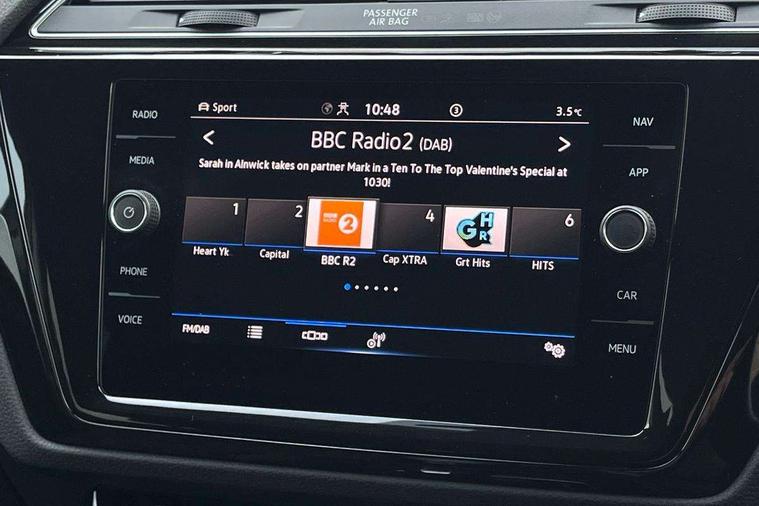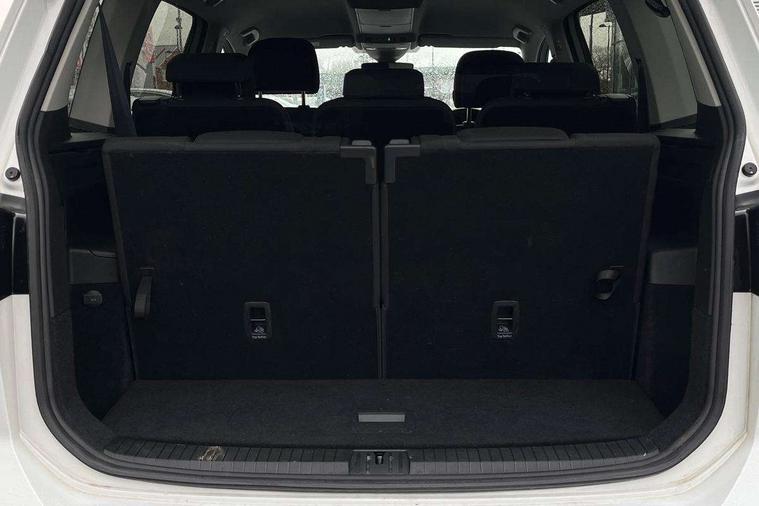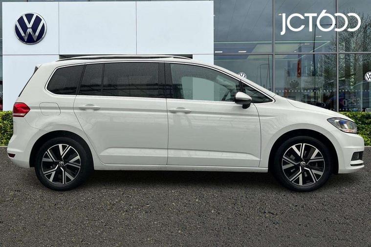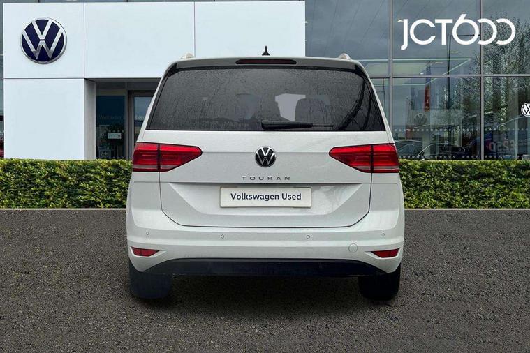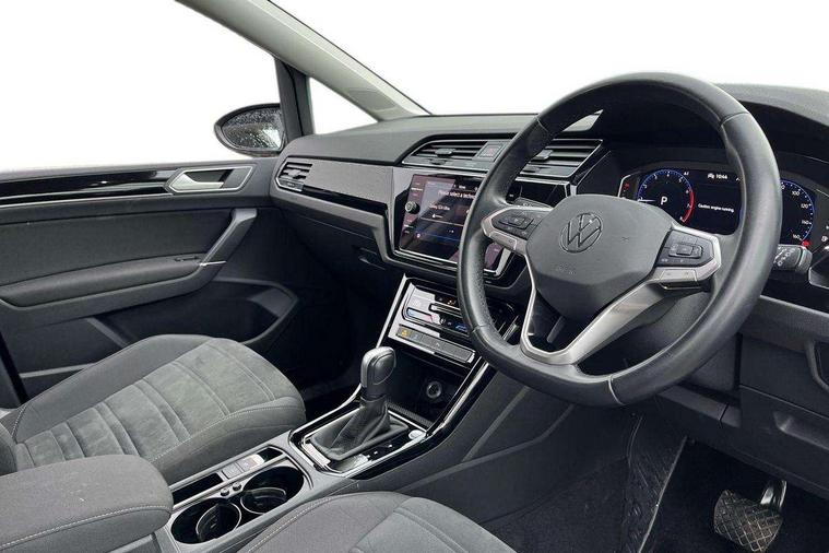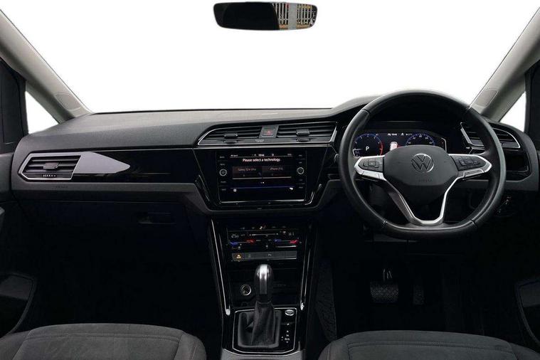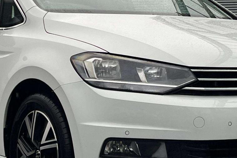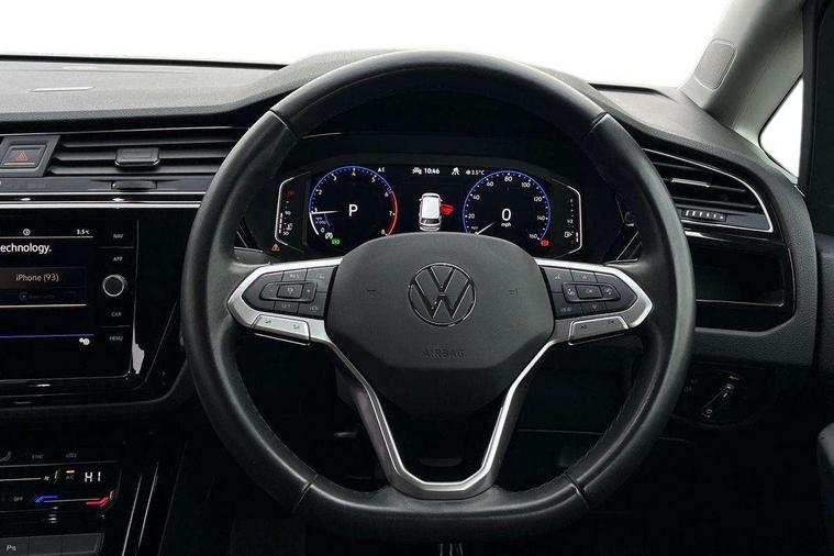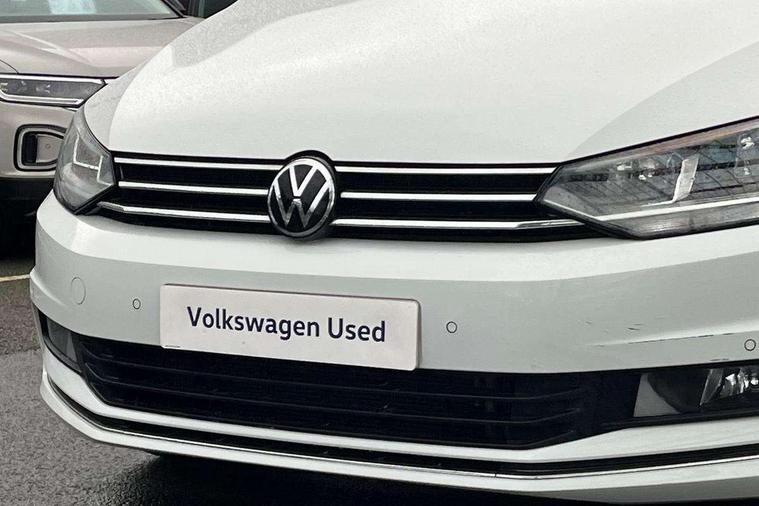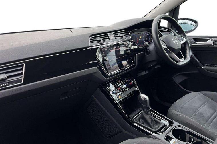 Adaptive cruise control, Audible lights on warning, Bluetooth telephone connectivity, Car information display, Digital cockpit, Discover nav, Euro 2D/3D map view+6.5" colour touchscreen CD + Radio, European map data, Car net guide/inform, Driver alert system, Driver electronic voice amplification function, Driver profile selection, Electronic odometer, Emergency services call system, Extended, crash-active and proactive Pedestrian and cyclist monitoring, External temperature gauge, Lane change system side assist and rear traffic alert, Lane keep assist, Mobile pairing with SMS function, Multifunction colour display, Rev counter with fuel gauge, Speed limiter, Speed sensitive power steering, Stop/start system, Think blue trainer driver tips and journey analysis, Trip and service interval display, Wireless app connect, Petrol Particulate Filter, XDS electronic differential lock, 4x20 watt output, 8 Speakers, Audio Connectivity System, DAB Digital radio, External USB-C data socket with increased charging performance - 2 USB sockets 45W, MP3/WMA compatability, SD card slot, Title and cover art display, USB connection, Aerial integrated into side window, Auto dimming door mirrors, on driver side, surround lighting and front passenger side mirror lowering function, Auto dimming rear view mirror, Automatic coming/leaving home lighting function, Body colour bumpers, Body colour door handles, Body colour door mirrors with integral indicators, Chrome fog light surround, Chrome lower front bumper insert, Chrome trimmed front air intake surrounds, Chrome trimmed radiator grille louvre inserts, Chrome trimmed side windows, Dusk sensor + auto driving lights, Front and rear electric windows, Front fog lights with static cornering function, Fully galvanised body, Gloss black finish B pillar, Green tinted heat insulating glass, High level third brake light, Rain sensor, Rear side wing doors, Rear tinted glass from B-pillar backwards approx 65% tinted, Rear wash/wipe with intermittent wipe setting, Silver roof rails, Tailgate wiper- reverse gear activation, Twin chrome exhaust tailpipes, Volkswagen roundel, Windscreen wipers intermittent wipe, 12V power point for Row 2, 12V socket in luggage compartment, 2 individual fold flat 3rd row seats, 2 three point seatbelts in 3rd row, 2nd row centre armrest, 2nd row centre seat converts into table, 3 single slide/fold/removable 2nd row seats, 3 spoke steering wheel, 3 Zone electronic climate control with automatic air recirculation, 3x3 point seatbelts on 2nd row with height adjust on outer seats, 4 boot load lashing points, 4 way adjustable front head restraints, 5 headrests, Ambient lighting in door trim and foot well, Art velour/Microfibre cloth upholstery, Driver and front passenger under seat drawer, Dust/pollen filters, Foldable front passenger seat backrest, Front + rear carpet mats, Front and rear reading lights, Front centre armrest with storage compartment, Front comfort seats with lumbar support, Front cupholders x 2, Front passenger seat height adjust, Front seat storage pockets, Front seatback folding tables, Height adjustable driver's seat, Height/reach adjust steering wheel, Illuminated glovebox, Illuminated vanity mirrors, Instrument lighting white adjustable panel illumination with red night time illumination, Interior light with delay, Isofix on 2nd row outer seats, Isofix on 3rd row seats, Large storage compartment in roof console, Leatherette on rear of front seats, Low tunnel 2nd row seat, Luggage compartment lighting, Media box in dashboard on passenger side, Multi storage in passenger/luggage areas, Multi-function centre console with storage facilities, Multifunction leather trimmed steering wheel including leather trimmed gear knob with 3.5" screen with multifunction computer, Retractable luggage cover, Split folding rear seat backrests, Storage bins on all doors, Mirror pack - Touran, 3 point height adjustable front seatbelts, Auto hold function, Automatic post collision braking system, Door open warning reflectors, Driver/Front Passenger airbags, Drivers knee airbag, EDL + ASR, Electrically operated child locks on rear doors, Electronic parking brake, Energy recovery system, ESC with ABS, First aid kit, Front and rear (row 2) curtain airbags, Front assist including city emergency braking, Front seat side impact airbags, Front seatbelt pretensioners, Front/rear disc brakes, Hill hold control, Hydraulic Brake Assist (HBA), Loose wheel warning function, Manual passenger airbag deactivation function, Pre crash preventive occupant protection, Proactive passenger protection system with front and side assist, Rear child proof door locks, Seatbelt warning lamp and buzzer, Traction control, Two tone horn, Warning triangle, Alarm with remote central locking and interior protection, Electronic engine immobiliser, Chrome plated instrument surrounds, Piano black decorative inserts, 17" Alexandria alloy wheels with self sealing tyres and anti-theft wheel bolts, Run flat tyres,