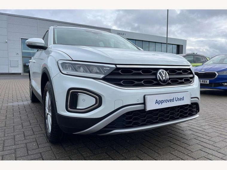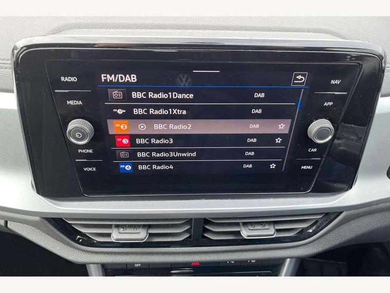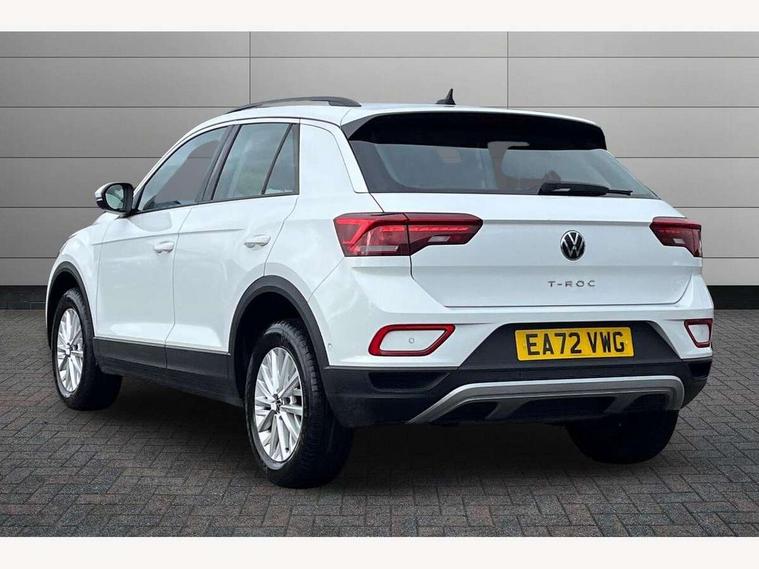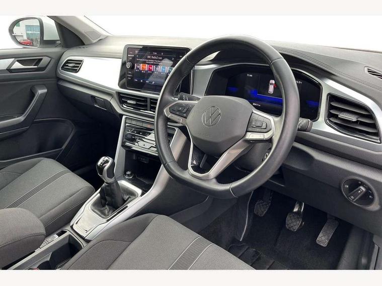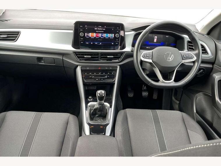 Bluetooth mobile phone interface, Driver alert system with fatigue detection, Driver tips and journey analysis, Emergency call service, Lane keeping system Lane Assist, Modified key software - reduce switch off time for key status change to Long no motion, Online services, Park assist including front and rear parking sensors, Power assisted speed sensitive steering, Service interval indicator, Tailgate/trunk lid release from outside, Think blue trainer driver tips and journey analysis, Warning sound and light for front seatbelts unfastened, Wireless app connect, Battery regeneration during braking, Front shock absorption, Rear shock absorption chassis with increased ride height, Start/stop function with battery regeneration, DAB Digital radio, Diversity antenna for FM reception, Front and rear 6 speakers, Music playback - MP3, WMA and AAC files, Premium USB cable in choice of either Apple or Android smartphone compatibility, SD card slot, Simultaneous pairing of 2 compatible mobile devices, Title and cover art display, We Connect and We Connect Plus functionality, 3rd brake light, Auto dimming interior rear view mirror, Automatic hazard lights activation under emergency braking, Automatic headlight control with LED separate daytime running lights with coming/leaving home function, Black roof rails, Body coloured bumpers and radiator grille with chrome trim and front fog lamps with chrome bezel, Body coloured exterior mirror housings and door handles, Extended roof spoiler, Exterior mirrors aspherical on driver side, convex on front passenger side, External USB type C socket and charging sockets, Front windscreen wiper with intermittent wipe and 4 position delay, Heated rear window, LED Headlights, LED rear combination lamps, LED rear number plate lights, LED tail lamp rear comination lamps, Power windows with comfort operation and circuit breaker, Rain sensor, Rear exhaust tailpipe, Rear fog light on one side and reversing lights on both sides, Rear side wing doors, Rear wash/wipe with intermittent wipe setting, Remote electrically foldable door mirrors, puddle lights and reverse activated passenger's door mirror, 12V power socket in centre console, 3 rear head restraints, 3 seat bench in 2nd row, 4 load lashing points in luggage compartment, Air care climatronic air conditoning system with active combination filter and 2-zone temperature control, Ambient lighting with mirror logo projection, Cloth upholstery, Door and side trim panel in cloth, Drawer under drivers seat, Driver/front passenger seat height adjustment, Front centre armrest, Front comfort sports seats, Front cupholders x 2, Front reading light, Instrument lighting, white adjustable panel illumination, Interior light delay, Isofix child seat preparation, Leather gearshift handle, Load-through provision with cup holder when folded down ('Unsplit rear seat bench, split folding backrest, with centre armrest), Luggage compartment lighting, Lumbar support for driver's and front passengers seat, Non-folding front passenger seat backrest, Single front passenger seat, Storage compartment in left and right luggage area, Storage compartment in rear doors, Storage compartments in driver and front passenger doors, Sunvisors with illuminated vanity mirrors, Variable boot floor, height adjustable and removable, Driver assistance pack without proactive passenger protection - T-Roc, 3 point height adj front seatbelts + pretensioners, 3 point seatbelts in outer rear with ECE label, ABS, Child locks on rear doors, Driver and front passenger airbag with front passenger airbag deactivation, Driver and front passenger safety-optimised head restraints, Drivers seatbelt reminder, Electronic parking brake, Electronic Stability Control (ESC) inc EDL (Electronic Differential Lock) and ASR (Traction Control), Front and rear passengers curtain airbag system including front side airbags, Front assist with city emergency braking and pedestrian monitoring, Front disc brakes, Front seat side impact airbags, Hill start assist, Predictive pedestrian protection, Rear disc brakes, Single tone horn, Tyre pressure loss indicator, Volkswagen roadside assistance, Alarm with interior protection, Anti-theft alarm system with interior monitoring, backup horn, and towing protection, Remote central locking with SAFELOCK, radio remote control with 2 remote control folding keys, Pewter matt decorative inserts for intrument panel, centre console and door panels at the front, Trims for alloy wheels,