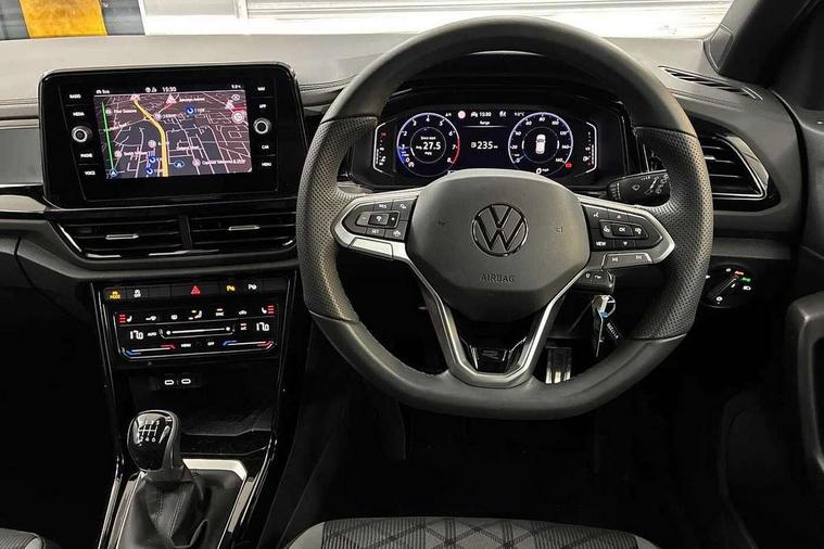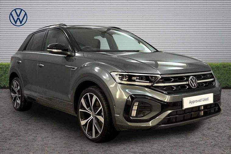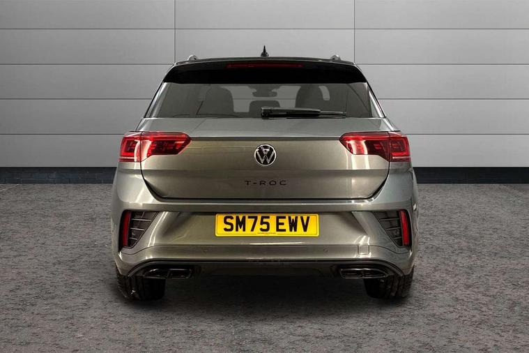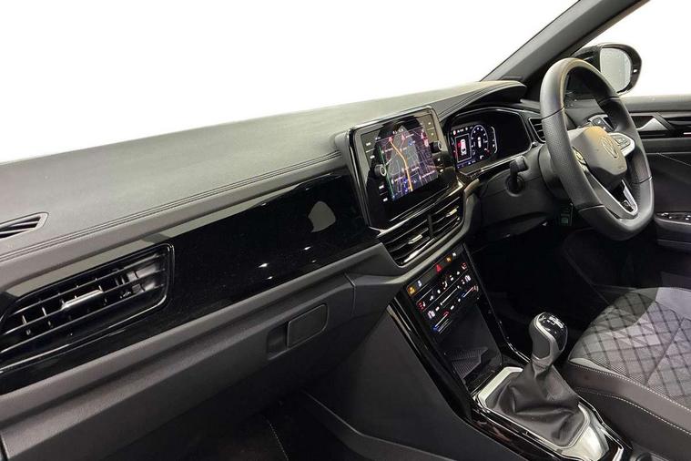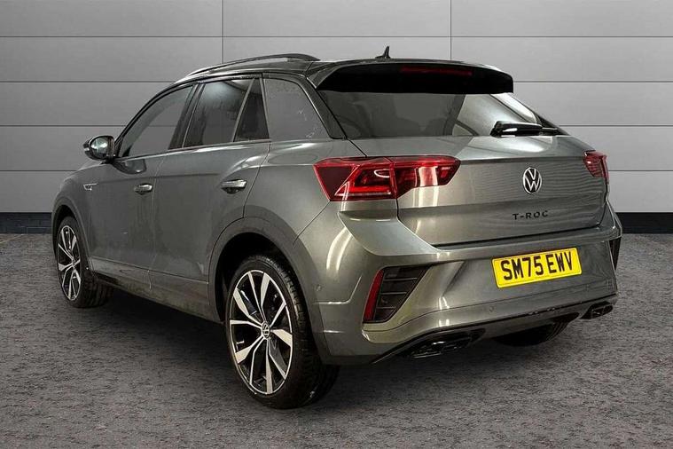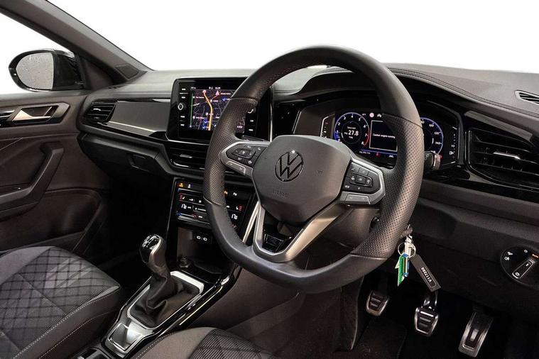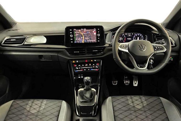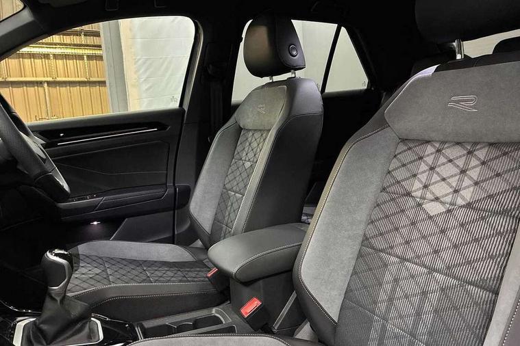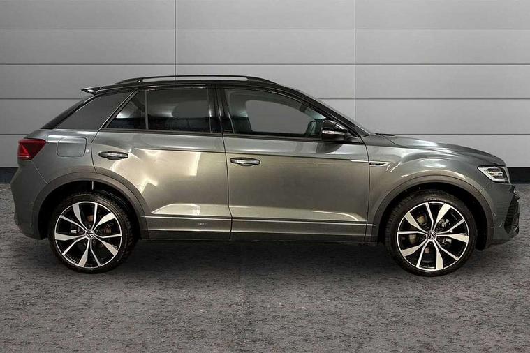 10.25" Digital cockpit pro, Advanced driver attention and drowsiness monitor, Emergency call service, Lane keeping system Lane Assist, Mobile phone interface, Modified key software - reduce switch off time for key status change to Long no motion, Online services, Park assist including front and rear parking sensors, Power assisted speed sensitive steering, Service interval indicator, Tailgate/trunk lid release from outside, Think blue trainer driver tips and journey analysis, Warning sound and light for front seatbelts unfastened, Wireless app connect, Battery regeneration during braking, Rear shock absorption chassis with increased ride height, Start/stop function with battery regeneration, DAB Digital radio, Diversity antenna for FM reception, Front and rear 6 speakers, Music playback - MP3, WMA and AAC files, Premium USB cable in choice of either Apple or Android smartphone compatibility, SD card slot, Simultaneous pairing of 2 compatible mobile devices, Title and cover art display, We Connect and We Connect Plus functionality, Auto dimming interior rear view mirror, Automatic hazard lights activation under emergency braking, Automatic headlight control with LED separate daytime running lights with coming/leaving home function, Dynamic cornering light, Electrically adjustable and heated door mirrors, Extended roof spoiler, Exterior mirrors aspherical on driver side, convex on front passenger side, External USB type C socket and charging sockets, Front windscreen wiper with intermittent wipe and 4 position delay, Heated rear window, Illuminated front grille, IQ LED matrix headlights, LED 3rd brake light, LED rear number plate lights, LED rear tail lights with dynamic turn signal, Light mode for poor weather, rain, fog or snow, Power windows with comfort operation and circuit breaker, R-Line design body coloured bumpers, Rain sensor, Rear exhaust tailpipe, Rear fog light on one side and reversing lights on both sides, Rear side wing doors, Rear wash/wipe with intermittent wipe setting, Remote electrically foldable door mirrors, puddle lights and reverse activated passenger's door mirror, 12V power socket in centre console, 3 rear head restraints, 3 seat bench in 2nd row, 4 load lashing points in luggage compartment, Air care climatronic air conditoning system with active combination filter and 2-zone temperature control, Artvelours cloth upholstery, Black roof lining, Chrome plated radiator grille inserts, air vent surrounds and light switch surrounds, Door and side trim panel with leatherette insert, Drawer under drivers seat, Driver seat height adjust, Driver's seat lumbar support, Front + rear carpet mats, Front centre armrest, Front comfort sports seats, Front cupholders x 2, Front footwell illumination, Front reading light, Front scuff plates with R Line logo, Front seat back storage pockets, Glove compartment door with light, Instrument lighting, white adjustable panel illumination, Interior ambient lighting and surround lighting, Interior light delay, Isofix child seat preparation, Leather gearshift handle, Load-through provision with cup holder when folded down ('Unsplit rear seat bench, split folding backrest, with centre armrest), Luggage compartment lighting, Non-folding front passenger seat backrest, Passenger seat height adjuster, Passenger seat lumbar support, Single front passenger seat, Stainless steel pedals, Storage compartment in left and right luggage area, Storage compartment in rear doors, Storage compartments in driver and front passenger doors, Sunvisors with illuminated vanity mirrors, Variable boot floor, height adjustable and removable, Winter pack without heated windscreen washer jets - T-Roc, 3 point height adj front seatbelts + pretensioners, 3 point seatbelts in outer rear with ECE label, ABS, Child locks on rear doors, City emergency braking and pedestrian monitoring, Driver and front passenger airbag with front passenger airbag deactivation, Driver and front passenger safety-optimised head restraints, Drivers seatbelt reminder, Electronic parking brake, Electronic Stability Control (ESC) inc EDL (Electronic Differential Lock) and ASR (Traction Control), Front and rear passengers curtain airbag system including front side airbags, Front disc brakes, Hill start assist, Predictive pedestrian protection, Rear disc brakes, Two tone horn, Tyre pressure loss indicator, Volkswagen roadside assistance, Tool kit, Trims for alloy wheels, Tyre mobility kit including compressor and sealing foam,