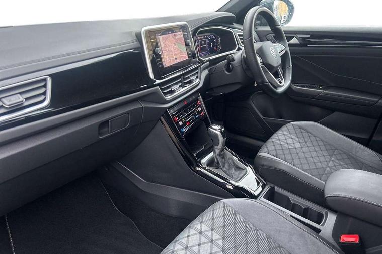 10.25" Digital cockpit pro, Advanced driver attention and drowsiness monitor, Emergency call service, Lane keeping system Lane Assist, Mobile phone interface, Modified key software - reduce switch off time for key status change to Long no motion, Online services, Park assist including front and rear parking sensors, Service interval indicator, Tailgate/trunk lid release from outside, Think blue trainer driver tips and journey analysis, Warning sound and light for front seatbelts unfastened, Wireless app connect, Battery regeneration during braking, Start/stop function with battery regeneration, DAB Digital radio, Diversity antenna for FM reception, Front and rear 6 speakers, Music playback - MP3, WMA and AAC files, Premium USB cable in choice of either Apple or Android smartphone compatibility, SD card slot, Simultaneous pairing of 2 compatible mobile devices, Title and cover art display, We Connect and We Connect Plus functionality, Auto dimming interior rear view mirror, Automatic hazard lights activation under emergency braking, Automatic headlight control with LED separate daytime running lights with coming/leaving home function, Body coloured exterior mirror housings and door handles, Electrically adjustable and heated door mirrors, Extended roof spoiler, Exterior mirrors aspherical on driver side, convex on front passenger side, External USB type C socket and charging sockets, Front windscreen wiper with intermittent wipe and 4 position delay, Heated rear window, LED 3rd brake light, LED rear combination lamps, LED rear number plate lights, Power windows with comfort operation and circuit breaker, Privacy glass for rear side windows and rear window, R-Line design body coloured bumpers, Rain sensor, Rear exhaust tailpipe, Rear fog light on one side and reversing lights on both sides, Rear side wing doors, Rear wash/wipe with intermittent wipe setting, Remote electrically foldable door mirrors, puddle lights and reverse activated passenger's door mirror, 12V power socket in centre console, 3 rear head restraints, 3 seat bench in 2nd row, 4 load lashing points in luggage compartment, Air care climatronic air conditoning system with active combination filter and 2-zone temperature control, Black roof lining, Chrome plated decorative trims, Chrome plated radiator grille inserts, air vent surrounds and light switch surrounds, Door and side trim panel with leatherette insert, Front + rear carpet mats, Front centre armrest, Front cupholders x 2, Front footwell illumination, Front reading light, Front scuff plates with R Line logo, Front seat back storage pockets, Glove compartment door with light, Instrument lighting, white adjustable panel illumination, Interior ambient lighting and surround lighting, Interior light delay, Isofix child seat preparation, Leather gearshift handle, Load-through provision with cup holder when folded down ('Unsplit rear seat bench, split folding backrest, with centre armrest), Luggage compartment lighting, Single front passenger seat, Stainless steel pedals, Storage compartment in left and right luggage area, Storage compartment in rear doors, Storage compartments in driver and front passenger doors, Sunvisors with illuminated vanity mirrors, Variable boot floor, height adjustable and removable, Driver assistance pack without proactive passenger protection - T-Roc, 3 point height adj front seatbelts + pretensioners, 3 point seatbelts in outer rear with ECE label, ABS, Child locks on rear doors, City emergency braking and pedestrian monitoring, Driver and front passenger airbag with front passenger airbag deactivation, Driver and front passenger safety-optimised head restraints, Drivers seatbelt reminder, Electronic parking brake, Electronic Stability Control (ESC) inc EDL (Electronic Differential Lock) and ASR (Traction Control), Front and rear passengers curtain airbag system including front side airbags, Hill start assist, Predictive pedestrian protection, Rear disc brakes, Two tone horn, Tyre pressure loss indicator, Volkswagen roadside assistance, Piano black decorative inserts in dashboard and front door trim panels, Trims for alloy wheels,
