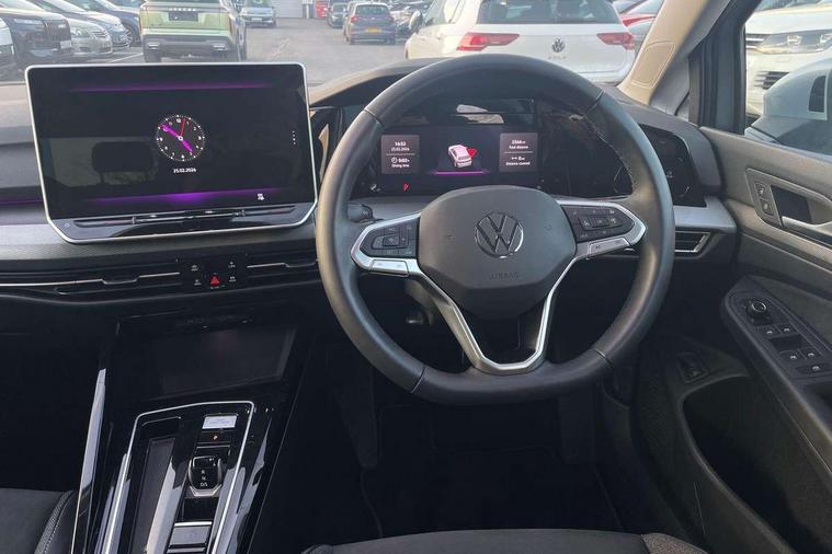 Activated carbon canister, Adaptive cruise control (ACC), Advanced driver attention and drowsiness monitor, Dynamic road sign display, E-Sim card for online connectivity, eCall emergency call system, Multi-color Digital cockpit pro, selection of different info profile possible, Multifunction front facing camera for distance control, Navigation system, Oncoming vehicle braking when turning including swerve support, Side assist blind spot lane change system, rear traffic alert and exit warning system, Speed limiter, Speedo, rev counter, electronic odometer, trip, service interval display, exterior temperature and fuel gauge, Traffic jam assist, Voice enhancer and voice control, Warning signal and warning light for front and rear seatbelts not fastened, We connect plus preparation, We connect preparation, Wireless app connect, Charging cable Mode 2 Type 2 (10A), Charging cable mode 3, type 2 32 A, Hybrid propulsion system, Start-stop system with battery regeneration (recuperation - energy recovery during braking), XDS electronic differential lock for improved traction and handling, 2 USB C ports in front, 2 USB charging sockets on the centre console in the rear charging capacity upto 45W, 6 Speakers - 4 in front and 2 in rear with central speaker, Digital radio reception (DAB), Diversity antenna for FM reception, Gaming platform via car app, Infotainment system with 12.9" display, Mobile phone interface with inductive charging feature, 3rd brake light, Automatic headlamp activation with Coming home and Leaving home feature, Body colour bumpers, Body colour door handles, Body colour door mirrors, Chrome trimmed front air intake surrounds, Chrome trims on the side window bottom, Exterior mirrors convex on the left and aspherical on the right, Front and rear electric windows, Heat insulating windshield made of laminated glass, LED separate daytime running light, Rear exhaust tailpipe, Rear fog light on one side and reversing lights on both sides, Rear side wing doors, Rear windscreen washer and wiper with interval delay, Remote electrically foldable door mirrors, puddle lights and reverse activated passenger's door mirror, Welcome light with surround lighting, 12V socket in front centre console, 12V socket in luggage compartment, 3 rear head restraints, 3 seat bench in 2nd row, Air care climatronic 3 Zone automatic climate control with rear air conditioning control panel, Ambient lighting with 30 colour including LED light unit in front footwell with selectable light colour, Chrome plated radiator grille inserts, air vent surrounds and light switch surrounds, Front + rear black carpet mats, Front centre armrest, ISOFIX anchors for child seats on outer rear bench seats and on front passanger seat compatible for i-Size, Luggage compartment lighting, Plastic gear knob, Rear cupholder and loadthough, Single front passenger seat, Soul black instrument panel, Split folding backrest with centre armrest and unsplit rear seat bench, Standard pedal cluster, Storm grey roof lining, Sun visors with illuminated vanity mirrors, Driver assistance pack - Golf Estate/Hatchback Auto, 3 point height adj front seatbelts + pretensioners, 3 rear three point seatbelts, ABS, Autonomous emergency braking front assist with pedestrian and cyclist monitoring, Child locks on rear doors, Driver and front passenger airbag with front passenger airbag deactivation, Electronic parking brake with auto hold, ESC (Electronic Stability Control), Extended pedestrian protection measures, Hill start assist, Rear disc brakes, Two tone horn, Tyre pressure loss indicator, Volkswagen roadside assistance, Anti theft wheel bolts, Preparation for alcohol interlock, New brushed dark metal decorative inserts for dashboard and front door panels, Tool kit for tyre mobility set, Tyre mobility kit Includes 12V compressor and tyre sealant,