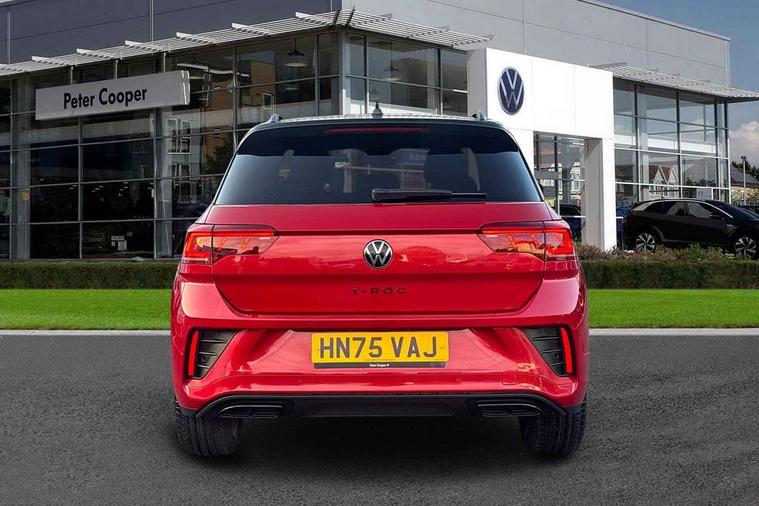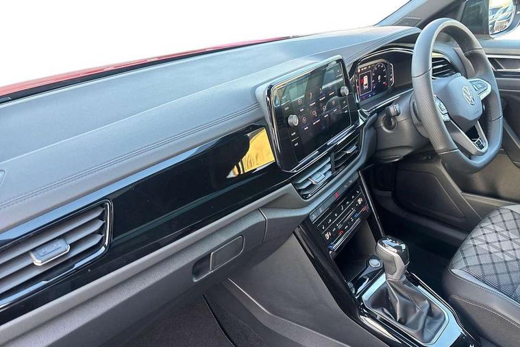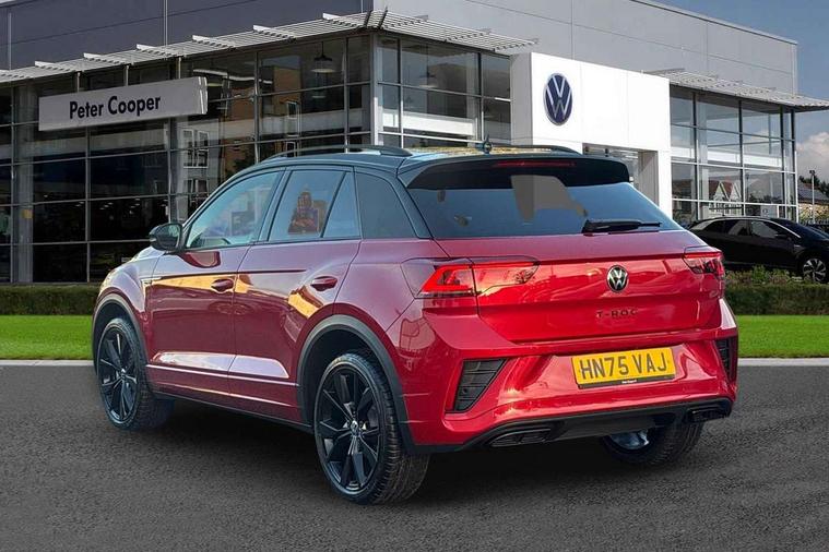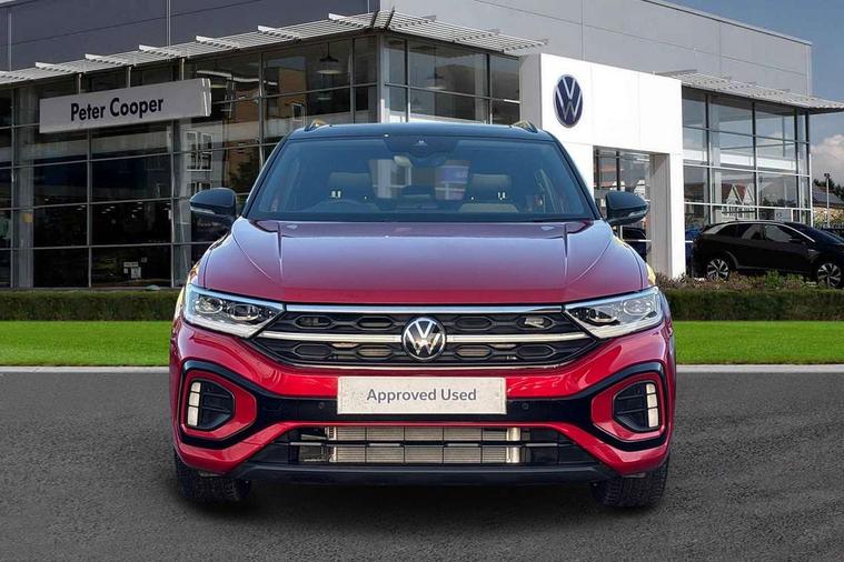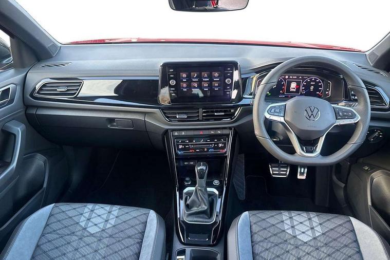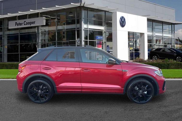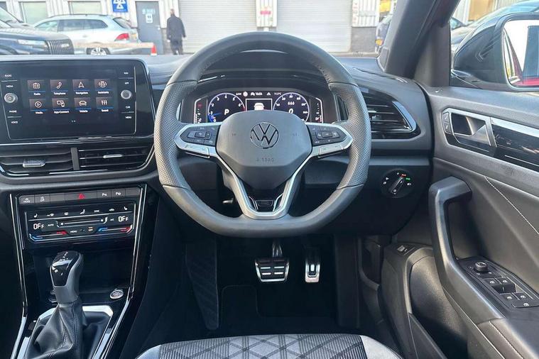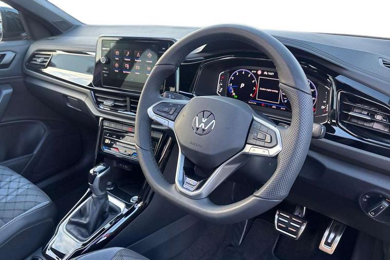 10.25" Digital cockpit pro, Advanced driver attention and drowsiness monitor, Emergency call service, Lane keeping system Lane Assist, Mobile phone interface, Modified key software - reduce switch off time for key status change to Long no motion, Online services, Park assist including front and rear parking sensors, Power assisted speed sensitive steering, Rear view camera, Service interval indicator, Tailgate/trunk lid release from outside, Think blue trainer driver tips and journey analysis, Warning sound and light for front seatbelts unfastened, Wireless app connect, Battery regeneration during braking, Rear shock absorption chassis with increased ride height, Start/stop function with battery regeneration, DAB Digital radio, Diversity antenna for FM reception, Music playback - MP3, WMA and AAC files, SD card slot, Simultaneous pairing of 2 compatible mobile devices, Title and cover art display, We Connect and We Connect Plus functionality, Advanced dynamic light assist for LED matrix headlights, Auto dimming interior rear view mirror, Automatic hazard lights activation under emergency braking, Black roof rails, Dynamic cornering light, Dynamic headlight range control with self adjusting whilst driving, Electrically adjustable and heated door mirrors, Extended roof spoiler, Exterior ambient lighting, Exterior mirrors aspherical on driver side, convex on front passenger side, External USB type C socket and charging sockets, Front windscreen wiper with intermittent wipe and 4 position delay, Heated rear window, Illuminated front grille, IQ LED matrix headlights, LED 3rd brake light, LED rear number plate lights, LED rear tail lights with dynamic turn signal, LED separate daytime running light, Light mode for poor weather, rain, fog or snow, Power windows with comfort operation and circuit breaker, Privacy glass for rear side windows and rear window, R-Line design body coloured bumpers, Rain sensor, Rear exhaust tailpipe, Rear fog light on one side and reversing lights on both sides, Rear side wing doors, Rear wash/wipe with intermittent wipe setting, Remote electrically foldable door mirrors, puddle lights and reverse activated passenger's door mirror, Tilting and sliding panoramic sunroof with rear panoramic sunroof, 12V power socket in centre console, 3 rear head restraints, 3 seat bench in 2nd row, 4 load lashing points in luggage compartment, Air care climatronic air conditoning system with active combination filter and 2-zone temperature control, Chrome plated radiator grille inserts, air vent surrounds and light switch surrounds, Door and side trim panel with leatherette insert, Drawer under drivers seat, Front + rear carpet mats, Front centre armrest, Front comfort sports seats, Front cupholders x 2, Front footwell illumination, Front reading light, Front scuff plates with R Line logo, Front seat back storage pockets, Glove compartment door with light, Instrument lighting, white adjustable panel illumination, Interior ambient lighting and surround lighting, Interior light delay, Isofix child seat preparation, Leather gearshift handle, Load-through provision with cup holder when folded down ('Unsplit rear seat bench, split folding backrest, with centre armrest), Luggage compartment lighting, Non-folding front passenger seat backrest, Single front passenger seat, Stainless steel pedals, Storage compartment in left and right luggage area, Storage compartment in rear doors, Storage compartments in driver and front passenger doors, Sunvisors with illuminated vanity mirrors, Variable boot floor, height adjustable and removable, Black design pack - T-Roc black edition plus, Easy open package with safelock - T-Roc, Sport pack with sports suspension - T-Roc, 3 point height adj front seatbelts + pretensioners, 3 point seatbelts in outer rear with ECE label, ABS, Child locks on rear doors, City emergency braking and pedestrian monitoring, Driver and front passenger airbag with front passenger airbag deactivation, Driver and front passenger safety-optimised head restraints, Drivers seatbelt reminder, Electronic parking brake, Electronic Stability Control (ESC) inc EDL (Electronic Differential Lock) and ASR (Traction Control), Front and rear passengers curtain airbag system including front side airbags, Front disc brakes, Hill start assist, Predictive pedestrian protection, Rear disc brakes, Two tone horn, Tyre pressure loss indicator, Volkswagen roadside assistance, Keyless locking and starting system keyless access with safelock, Gloss deep iron dash trim, 19" Misano black diamond turned alloy wheels with low rolling resistance and anti theft wheel bolts, Tool kit, Trims for alloy wheels, Tyre mobility kit including compressor and sealing foam,