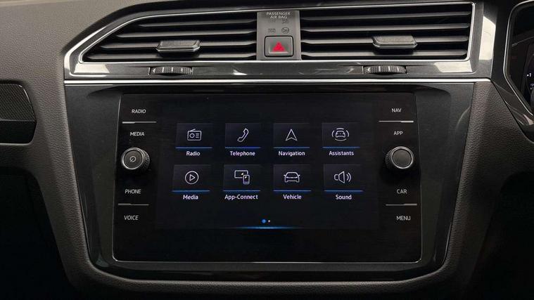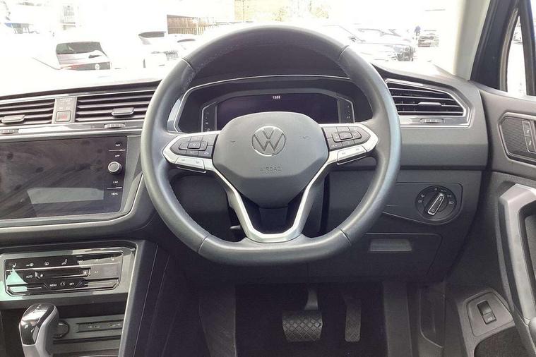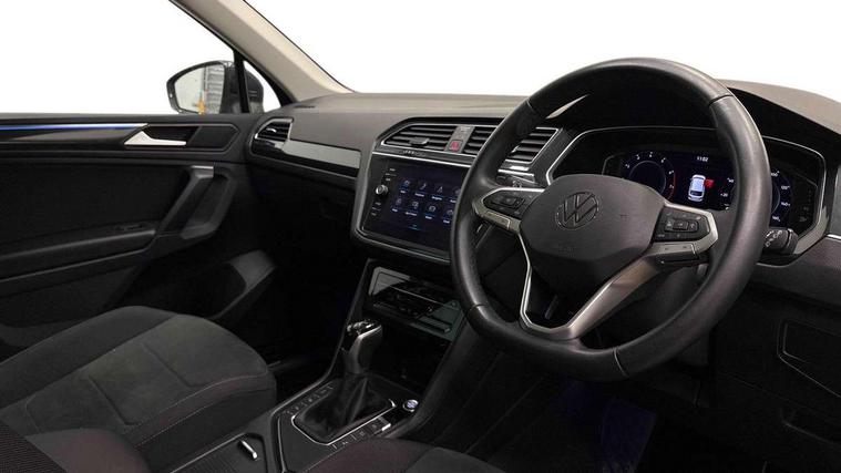 Adaptive cruise control ACC stop and go including speed limiter, App-Connect incl. App-Connect Wireless for Apple CarPlay and Android Auto, Bluetooth phone integration system, Digital Cockpit Pro - Active info display, Distance control assist, Driver alert system, Driver profile selection, Dynamic road sign display, eCall emergency call system, Electromechanical speed sensitive power steering, Engine start/stop button, Lane keeping system Lane Assist, Lights on warning, Motorised electric tailgate operated via key fob, drivers door and foot movement under tailgate, Multifunction front facing camera, Outside temperature display, Premium multifunction display with multi colour display, Remote control boot opening, Rev counter, Revision / skills operating concept travel assistant, Service interval indicator, Speed limit display, Start/stop system with regenerative braking, Tailgate/trunk lid unlocking from outside, Trip computer, Warning sound and light for doors and tailgate open, Battery regeneration during braking, XDS electronic differential lock for improved traction and handling, 2 USB-C ports in the front, 1 USB-C charging socket on the center console in the rear, Diversity antenna for FM reception, Radio, SD card slot, Simultaneous pairing of 2 compatible mobile devices, SMS functionality - read, compose and send SMS messages using touch-screen display, Title and cover art display, Aluminium door sill protectors, Auto dimming interior rear view mirror, Automatic headlight control system, Body colour door handles, Body coloured bumpers, Body coloured door mirrors with integrated indicators, Coming/leaving home lighting function, Dynamic headlight range control, Front and rear electric windows, Heated rear window, High level 3rd brake light, IQ light-Adv high beam, Dynamic light assist for LED matrix headlamp+LED separate DRL+DCL, dark red rear LED tech, Poor weather light+ cornering light, Laminated safety glass windshield, heat and sound insulating, LED rear number plate lights, Poor weather light and cornering light, Privacy glass for rear side windows and rear window, Rain sensor windscreen wipers, Rear exhaust tailpipe, Rear fog lamp, Rear side wing doors, Rear windscreen washer and wiper with interval delay, Side and rear windows in heat insulating glass, Tilting and sliding panoramic sunroof with rear panoramic sunroof, Trailer Stability Programme, Windscreen wipers/ intermittent wipe + 4 position delay, 12V outlet in center console rear and in luggage compartment, 12V outlet in front and tray, 2 cup holders in front, 2 LED front reading lights, 2 LED rear reading lights, 3 bench rear seats in 2nd row, 3 rear headrests, 4 load lashing points, 40:20:40 split folding rear seats, Air Care Climatronic 3 zone automatic climate control with enhanced air filter and controls in the rear, Backrest release for left front seat, Climate control unit rear with touch function, Door and side trim panel in foam film and woven fabric, Front + rear carpet mats, Front centre armrest, Front footwell illumination, Front seats head restraints (x-adjustment), Height adjustable front seats, Height/reach adjust steering wheel, Instrument lighting white adjustable panel illumination, Interior light with delay, Isofix Preparation 2 Rear child seats, Leather gear knob, Lockable cooled glovebox, Luggage compartment lighting, Luggage net, Rear bench seat asymetrically split folding, longitudinally movable and folding with load-through hatch and center armrest, Remote unlocking for rear seat backrest, Removable luggage cover, Removable rear headrests, Safety optimised front head restraints, Single front passenger seat, Sliding/reclining rear seats, Standard rear seat release, Storage compartment in driver's door, Storage compartment in passenger's door, Storage compartment in rear doors, Storage compartments in luggage area left and right, Storage tray on dashboard, Sun visors with illuminated vanity mirrors, Top front comfort seats, Variable boot floor, height adjustable and removable, Ambience pack - Tiguan, Chrome pack - Tiguan, Easy open and close pack with safelock - Tiguan, 3 point seat belt for centre rear seats, 3 point seat belts with seat belt pretensioners for the outer rear seats, Active bonnet, Curtain airbags for front and rear passengers, Driver/Front Passenger airbags, Drivers knee airbag, Electronic parking brake with auto hold, Electronic Stability Control with driver steering recommendation, ABS, ASR, EDL, EDTC and trailer stabilization, Front assist with autonomous emergency braking (for Adaptive Cruise Control ACC up to 130 mph), Front disc brakes, Front passenger airbag deactivation, Front side airbags, Height adjustable front 3 point seatbelts + pretensioners, Hill hold control, Manual child proof rear door locks, Pedestrian monitoring system, Power assisted brakes, Proactive passenger protection system in combination with front assist, Rear disc brakes, Rigid safety cell with front and rear crumple zones, Two tone horn, Warning sound and light for front seat belts if unfastened, Anti theft alarm system with interior monitoring, backup horn and towing protection, Anti theft wheel bolts, Central locking system with safelock radio remote control and 2 remote control folding keys, Electronic engine immobiliser, Tool kit,