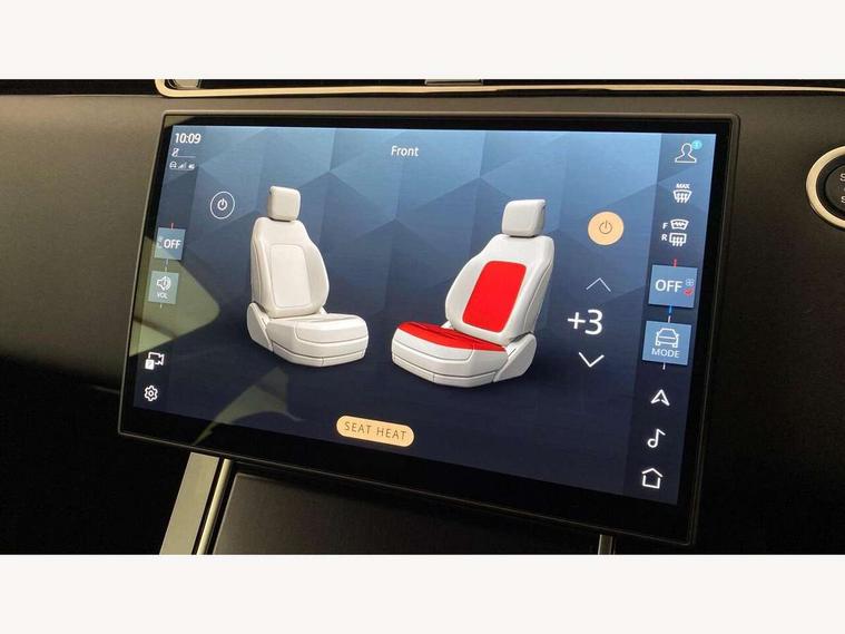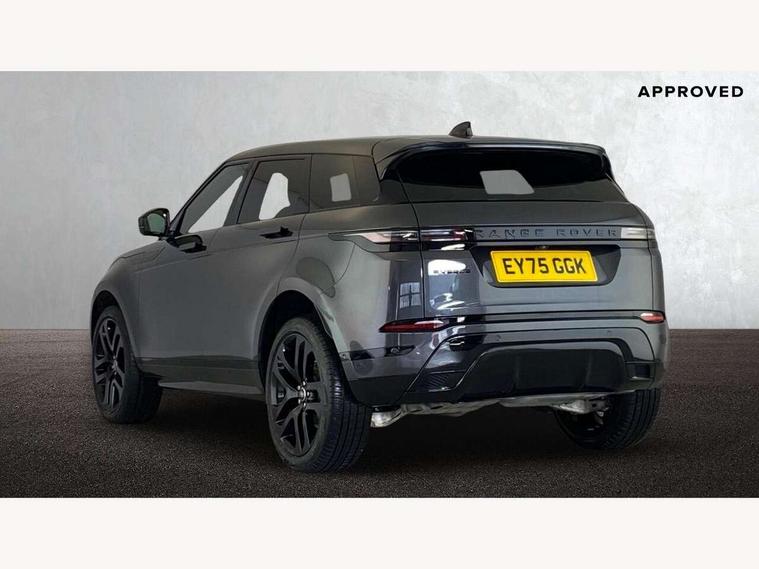 11.4" touch screen, 3D 360 degree surround camera with wade sensing, Adaptive cruise control, Android Auto, Apple car play, Blind spot assist, Bluetooth connectivity, Brake pad wear indicator warning light, Driver condition monitor, eCall emergency system, Eco mode, Electronic power assisted steering (EPAS), Front and rear parking sensors with auto brake, InControl remote, Interactive driver display, Land Rover InControl apps, Lane keep assist, Pivi pro connected includes diamond pivi variant, smart settings, connected navigation pro, nuance speech licence, Powered tailgate/boot lid, Rear collision monitor, Rear traffic monitor, Tailgate, Traffic sign recognition with adaptive speed limiter, Voice control system, Wireless device charging, All terrain progress control, Diesel exhaust fluid (DEF) large tank, Efficient Driveline, Large fuel tank, Terrain Response 2, Digital Audio Broadcast radio-DAB, Steering wheel mounted controls, Acoustic laminated windscreen, Auto headlights, Auto high beam assist, Automatic headlight levelling, Electric windows with one touch open/close and anti trap, Flush deployable exterior door handles, Front and rear recovery eyes, Heated rear window with timer, Heated washer jets, Heated windscreen, LED headlights with signature DRL and LED tail Lights, Power fold, auto-dimming, heated door mirrors with approach lights and auto dimming driver side, Rain sensing windscreen wipers, Rear animated directional indicators, Rear fog lights, Rear side wing doors, Rear wiper, Side repeater indicators in mirror, Tailgate spoiler, Third brake light, Winter wiper park position, 12 way driver memory and 10 way passenger electric front seats with 2 way manual headrest + 4 way lumbar support, 40:20:40 split folding rear seats with centre headrest and armrest, Ambient interior lighting, Bright metal pedals, Carpet mats, Chrome tread plates with range rover branding Includes stainless steel loadspace scuff plate with etched graphic, Customer configurable single point entry, Front and rear cupholders, Heated front seats, Heated steering wheel, Isofix system on outer rear seats, Manually adjustable steering column, Overhead lighting console, Overhead stowage for sunglasses, Passive front head restraints, Rear air vents, Rear head restraints, Satin chrome gearshift paddles, SE Grained leather upholstery, Single passenger seat, Standard steering wheel with Moonlight Bezel, Sunvisors with illuminated vanity mirrors, Twin sliding front centre armrest, Power socket pack 2 - Evoque, 3 rear 3 point seatbelts, Anti-lock braking system (ABS), Brake hold function, Customer configurable autolock, DSC - Dynamic Stability Control, Electronic brake force distribution, Electronic parking brake, Electronic traction control, Emergency braking, Front and rear seatbelt reminder, Hill descent control, Hill launch assist, Low traction launch, Occupant protection assist, Passenger seat occupant detector, Power operated child locks, Roll stability control, Six airbags - Driver and passenger airbags/driver knee airbag/front side airbag and curtain airbags, Torque vectoring brake, Tyre pressure monitoring system, Alarm, Immobiliser, Intrusion sensor, Keyless entry, Locking wheel nuts, All season tyres,