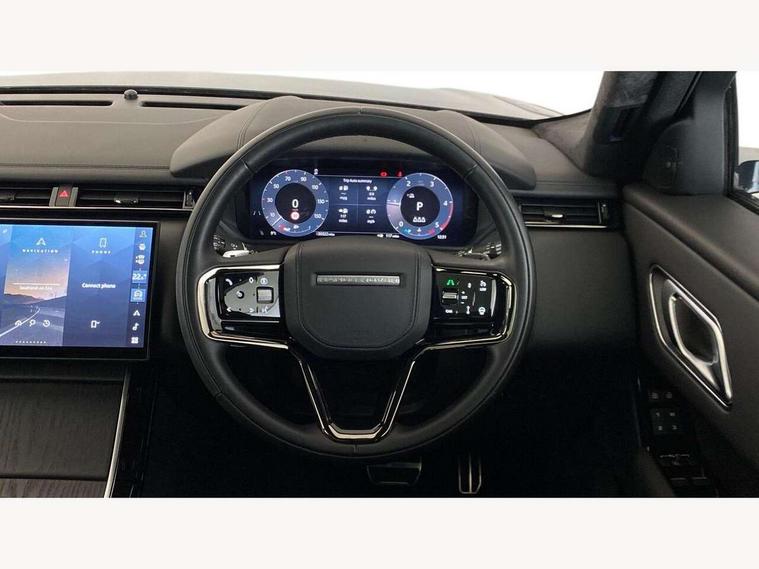 3D surround camera includes forward traffic detection and vehicle guidance, Adaptive cruise control with steering assist, Android Auto, Apple CarPlay, Blind spot assist, Bluetooth connectivity, Brake pad wear indicator warning light, Driver condition monitor, eCall emergency call system, Front and rear parking aid, InControl remote, Land Rover InControl apps, Lane keep assist, Pivi pro with connected navigation, Rear collision monitor, Rear traffic monitor, Service indicator, Speed proportional electronic power assisted steering (EPAS), Traffic sign recognition with adaptive speed limiter, Trip computer, Voice control system, Wade Sensing, Wireless device charging, 8 speed automatic transmission, Adaptive dynamics, All terrain progress control, Electronic air suspension, Open differential with torque vectoring by braking, Single speed transfer box, Terrain Response 2 with dynamic program, DAB radio, Steering wheel mounted controls, 3rd brake light, Acoustic laminated windscreen, Auto dimming interior rear view mirror, Autobiography badge, Automatic headlamp levelling, Automatic headlights, Body coloured bumpers, Boot protection plate, Contrast bonnet in burnished copper & rear lettering, Electric windows with one touch open/close and anti trap, Flush deployable exterior door handles, Follow me home headlights, Heated rear window with timer, Heated washer jets, Heated windscreen, Metal load space scuff plates, Pixel LED headlights with signature DRL, Power fold, auto-dimming, heated door mirrors with memory and approach lights, Rain sensor windscreen wipers, Rear animated directional indicators, Rear fog lights, Rear side wing doors, Rear wash/wipe, Tailgate/boot lid spoiler, Trailer stability assist, Velar badge, 3 seat bench in 2nd row, Ambient lighting, Bright metal pedals, Carpet mats, Driver/passenger sunvisors with illuminated vanity mirrors, Ebony suedecloth headlining, Electrically adjustable steering column, Full extended leather upgrade, Heated steering wheel, Isofix system on outer rear seats, Loadspace cover, Overhead lighting console, Overhead stowage for sunglasses, Passive front headrests, Rear air vents, Rear centre headrest, Single front passenger seat, Twin front cupholders, Twin sliding front centre armrest, Online pack with data plan - Velar, Power socket pack 2 - Velar, 380mm front brakes and 325mm rear brakes, 3x3 point rear seatbelts, Anti-lock braking system (ABS), Cornering brake control, Curtain airbags, Customer configurable autolock, Door side intrusion beams, Driver airbag, DSC - Dynamic Stability Control, Electronic brake force distribution, Electronic parking brake, Electronic traction control, Emergency braking, Front and rear seatbelt reminder, Hill descent control, Hill launch assist, Low traction launch, Passenger airbag, Power operated child locks, Rear airbags, Roll stability control, Side airbags, Tyre pressure monitoring system (TPMS), Global lock and unlock switch on driver door, Immobiliser, Intrusion sensor, Keyless entry, Lock only switch on front passenger door, Locking wheel nuts, Perimetric alarm, Remote central locking, All season tyres,
