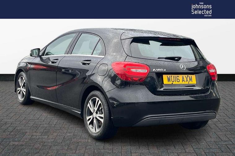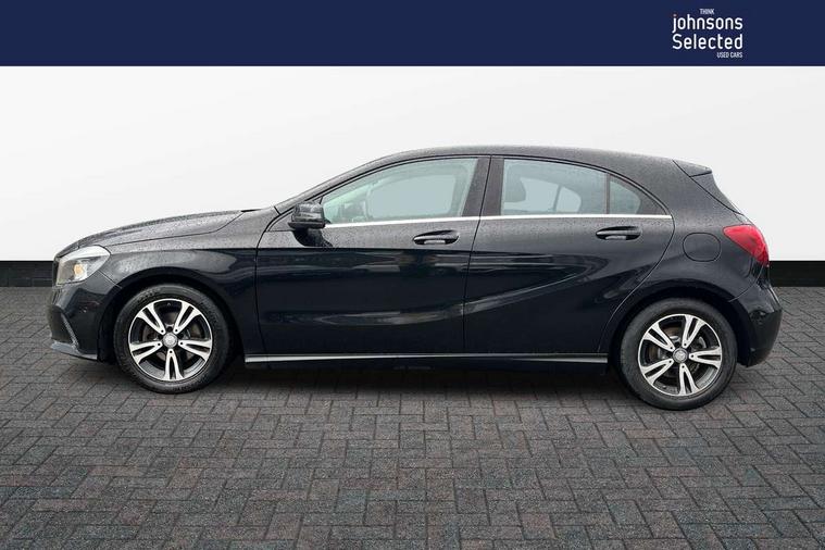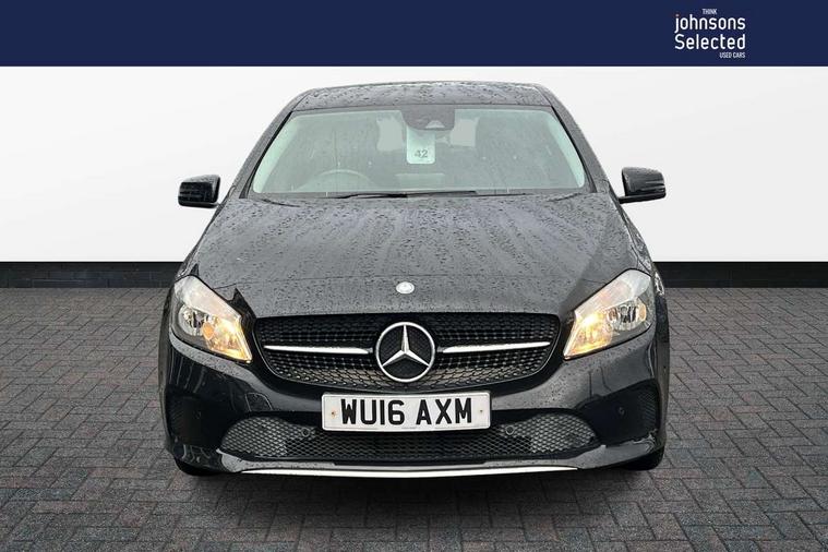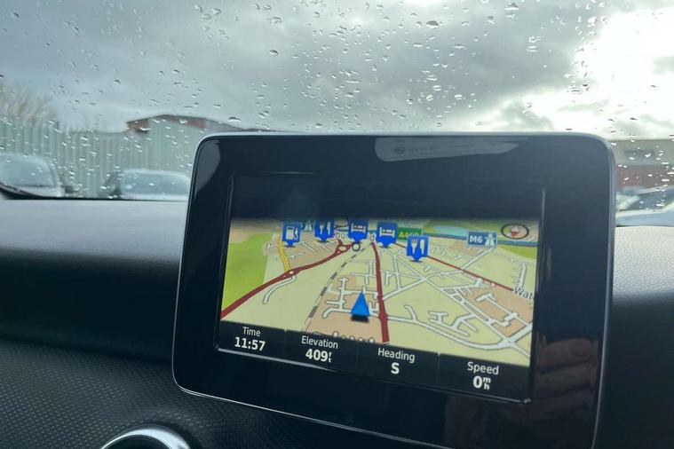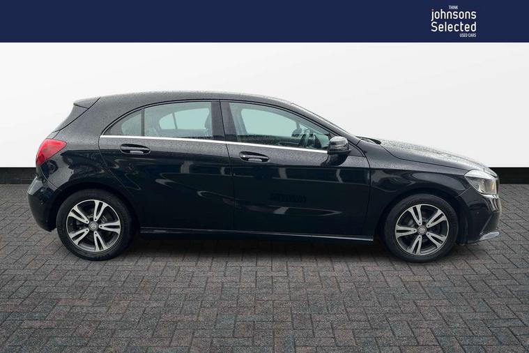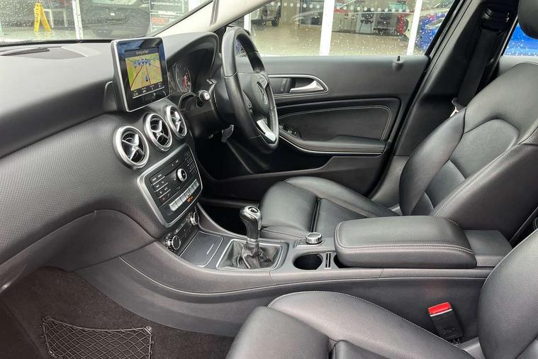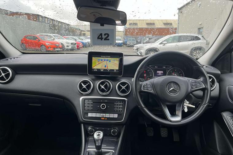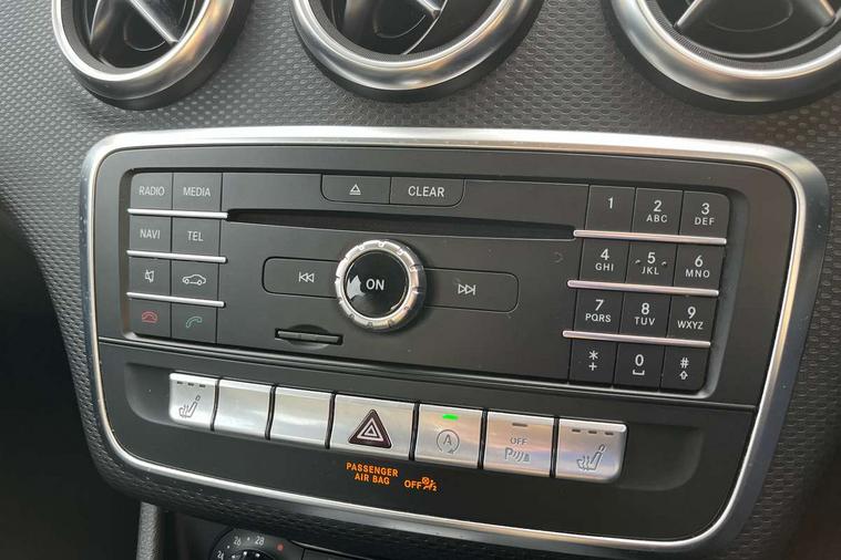 7" tablet style colour display, Active park assist with parktronic system, Attention assist, Bluetooth interface for hands free telephone, Bulb failure indicator, Collision prevention assist plus, External temperature gauge, Garmin Map pilot navigation system with SD Card, Low fluid warning light, Reversing camera, Service indicator (ASSYST PLUS), Speed sensitive parameter assisted steering, Trip computer, Voice control system, Lowered suspension, 6 speakers, Media interface, Mercedes Audio 20 radio/single CD + telephone keypad, SD card slot, USB port, Adaptive brake lights, Body colour bumpers, Body colour door handles, Body colour side skirt, Body coloured door mirrors, Chrome beltline trim, Daytime running lights, Electric adjustable heated door mirrors, Electric front windows, Electric rear windows, Headlamp assist, Heated rear window with timer, Radiator grille with 2 louvres in body colour, Rear wiper, 1/3 to 2/3 split folding rear seats, 12V socket, 3 spoke leather multifunction sports steering wheel, Adjustable head restraints, Air conditioning, Artico man-made leather upholstery, Auto Mercedes-Benz child seat recognition sensor, Front centre armrest with storage compartment, Front door sills with Mercedes Benz lettering, Front head restraints, Grey headlining, Heated front seats, Height adjustable front seats, Height/reach adjustable steering column, Illuminated glovebox, Isofix rear child seat preparation, Leather gearshift, Load securing rings in luggage compartment, Luggage compartment cover, Luggage net under rear parcel shelf, Rear head restraints, Storage compartment under load area floor, Twin front cupholders, Seat comfort pack - A Class, Stowage Pack - A Class, 3 rear 3 point seatbelts, ABS with Brake Assist, Active bonnet, Adaptive brake system, Child proof door locks, Crash responsive emergency lighting, Drivers knee airbag, Dual stage driver/passenger airbags, Electronic parking brake, ESP with ASR, Front and rear seatbelt reminder, Front head airbags, Front passenger seat occupancy sensor, Front side airbags, Hill start assist, Tyre pressure monitoring system, Warning triangle and first aid kit, Window airbags, Alarm system/interior protection/immobiliser, Keyless ignition, Remote central locking, Chrome air vent surrounds, Honeycomb effect trim, 16" 5 twin spoke alloy wheels, Tirefit sealant with electric air pump,