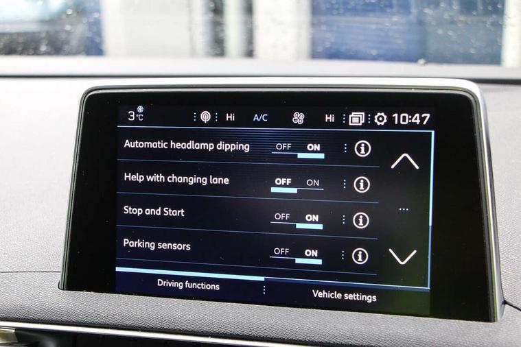 'Lights On' Reminder warning buzzer, 3D connected navigation + voice control + Peugeot connect SOS and assistance, Advanced driver attention alert, Android Auto, Blind spot monitoring, Digital clock, Exterior temperature gauge, Lane departure warning system, Lane keep assist, Mirror screen with mirror link and car play, Multi function trip computer, Peugeot i-cockpit with amplify configurable interior ambiences, headup display with distance alert, touch screen, Programmable cruise control and speed limiter, Rear parking aid, Smartphone cradle, Speed limit recognition, Speed sensitive power steering, Diesel particulate filter, Dynamic stability control, Sport mode, DAB Digital radio, Peugeot connect with USB and bluetooth, Radio/MP3 player, Steering column mounted multifunction controls, Aluminium roof rails, Automatic activation of hazard warning lights, Automatic headlamp levelling, Body colour door handles, Body colour rear spoiler, Body coloured bumpers, Chrome bumper inserts, Chrome front fog light surround, Chrome radiator grille and surround, Chrome side window trim, Dark tinted rear windows, Electric folding door mirrors with courtesy approach lighting, Electric operated/heated door mirrors, Heated rear windscreen, LED daytime running lights, LED headlights with LED front fog light and static cornering light, LED rear lights, Lion grey front bumper scuff plate, Nera black door mirrors, One touch electric front/rear windows, Panoramic glass sunroof/electric blind, Peugeot smart beam assist, Rear wiper, Sports front bumper, Twin exhaust tailpipe, 1/3 to 2/3 split folding rear seats, 2 cupholders in front centre console, 230V socket on rear centre console, 3 x 12V power sockets, 4 Lashing eyes in boot, Blue ambient lighting, Centre front armrest with illuminated cool compartment, Cupholders - 2 in rear centre armrest, Dual zone automatic climate control, Fold flat front passenger seat with picnic table, Footwell illumination, Front door pockets, Front headrests, Front reading lights, Front seat back map pockets, Gear shift indicator, Grab handles, Height adjustable headrests, Height adjustable passenger seat, Height/reach adjust steering wheel, Illuminated cupholders, Illuminated glovebox, Illuminated storage compartment, Illuminated vanity mirrors, Instrument panel light dimmer, ISOFIX on front passenger and rear outer seats, LED interior illumination, LED light in luggage compartment, Mistral floor mats, Mistral full grain perforated leather steering wheel with aikinite stitch, Rear centre armrest/ski flap, Rear coat hooks, Rear headrests, Rear reading lights, Reclining front seats, Roof lining - Mistral black, Satin chrome gear lever, Satin chrome interior door handles, Stainless Steel Scuff Plates, Variable boot floor, Visibility pack - 3008, 3 point front seat belts, 3 point seatbelts on all rear seats, ABS + EBD + EBA, Auto city emergency braking, Driver SMART airbag, Electronic parking brake, ESP with ASR, Front and rear curtain airbags, Front and rear pre-tensioning and force limiting seatbelts, Front passenger SMART airbag with deactivate switch, Height adjustable front seatbelts, Hill start assist, Seatbelt warning lamp and buzzer, Side airbags x 2, Tyre pressure sensor, Anti theft alarm, Automatic door lock/re-lock after 30 seconds, Central locking button on dash, Child lock control of rear doors and windows, Deadlocks, Electric tailgate with Peugeot open & go system, Locking wheel bolts, Remote control central locking with two plip keys, Rolling code transponder immobiliser, Brumeo fabric interior trim, Satin chrome dash trim, Satin chrome instrument dial surrounds, 19" Washington diamond cut alloy wheels, Space saver spare wheel,
