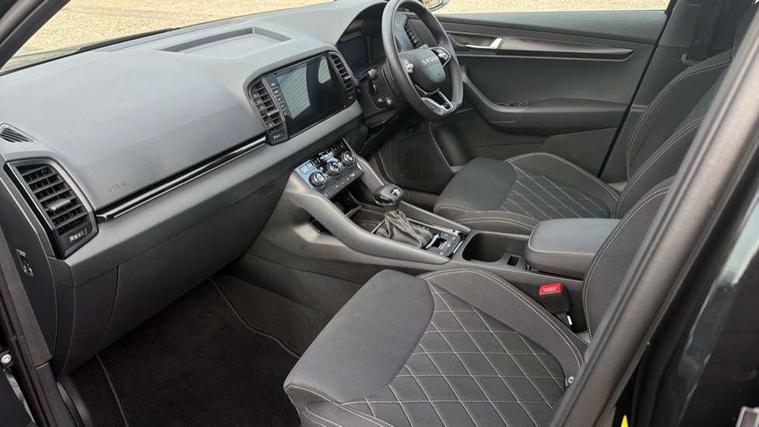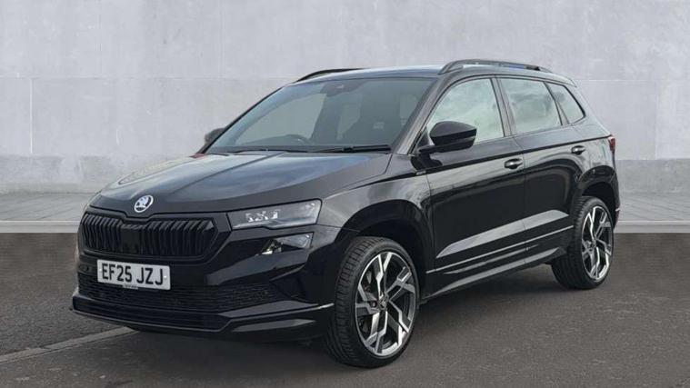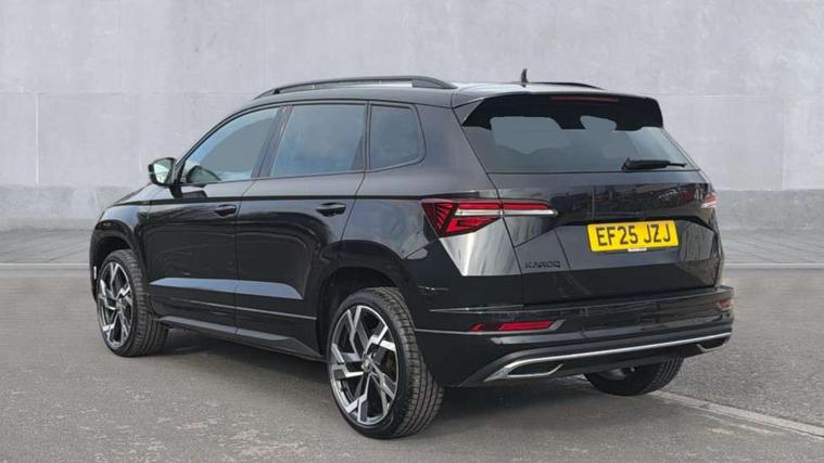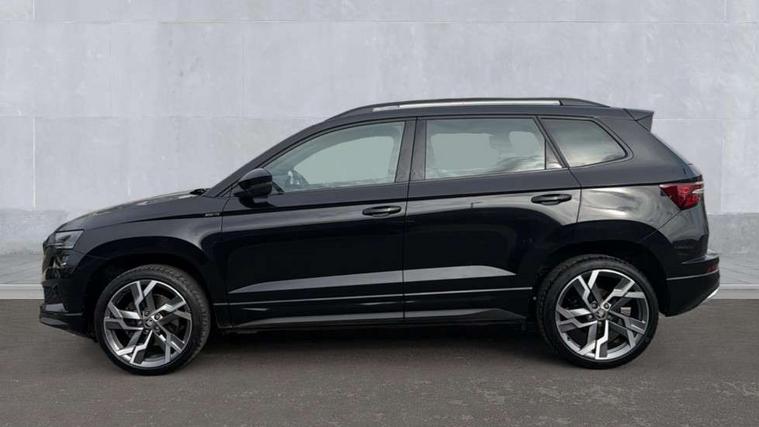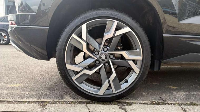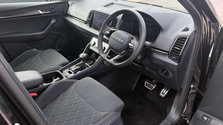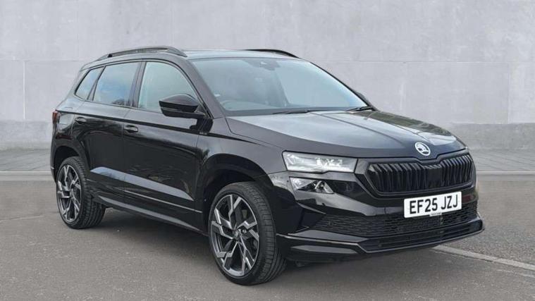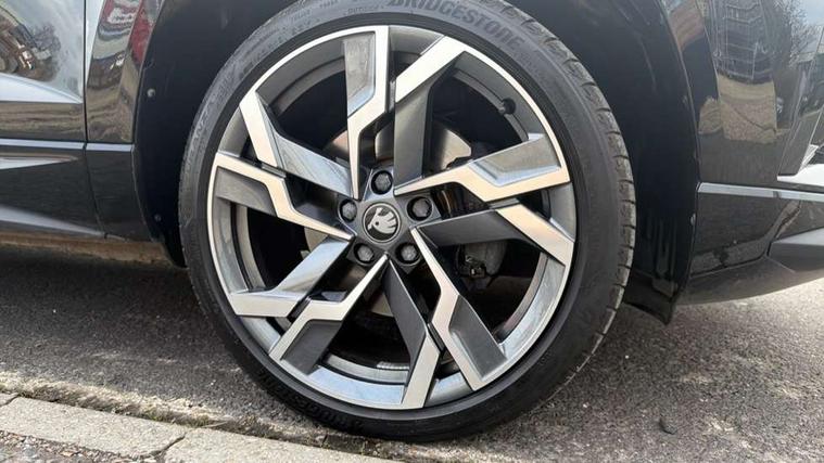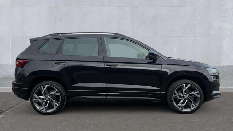 Advanced driver attention and drowsiness monitor, Emergency services call system, Outside temperature gauge, Sensor for driver assistance systems, Service interval indicator, SmartLink wireless for Apple and wired for Android, Start/stop system with regenerative braking, Traffic sign recognition, USB C Port x 2 in front centre console, Virtual Cockpit - 10.25" digital display, Virtual pedal with electrically operated boot door, Wireless smartphone charging, DAB radio with Bluetooth, USB connection, Acoustic glass, Aero front windscreen wipers with intermittent function, Auto dimming rear view mirror with light and rain sensors, Black door mirrors, Black electric window control buttons, Black radiator grille, Black roof rails, Body colour door handles, Electric front and rear windows with child proof lock, Extended rear roof spoiler, Front door steps with SportLine logo, Heated rear windscreen, LED daytime running lights, LED rear lights with high functionality welcome effect and dynamic indicators, Light assistant (coming/leaving home/tunnel light), Panoramic sliding sunroof, Plastic scuff plates in door apertures, Privacy glass, Protective door side sills in body colour, Rear diffuser, Rear side wing doors, Rear window wiper with washer system and intermittent control, Safety reflectors on front doors, Skoda lettering on tailgate in black, Sportline badge on front fender, Sports front and rear bumpers, Third brake light, Unique dark chrome design logo on alloy wheels, 1.5 litre bottle holders in driver and front passenger door panels, 12V socket in boot, 12v socket in front centre armrest with storage compartment and rear air vents, 2 x Tablet holder, 3 rear height adjustable headrests, 3 seat bench in 2nd row, 3 spoke sports leather heated multifunction steering wheel with DSG paddles, 4 foldable roof handles with rear coat hooks, Black floor carpet, Cargo elements in boot, Chrome inner door handles, Foldable hooks in the boot, Front head restraints, Height adjustable front three point seats belts with tensioners, Height/reach adjust steering wheel, Ice scraper, Illuminated glovebox, Illuminated luggage compartment, Isofix child seat preparation for front passenger seat, Isofix child seat preparation outer rear, Manual lumbar support for front seats, Pen holder, Pollen filter, Rear backrest release from boot, Rear boot cover, Rear package tray, Rear reading lights, Rear seats fixed folding and divided 60:40, Rubbish bin door, Safety vest holder, Single front passenger seat, Skoda lettering on steering wheel, Sportline decorative inserts, Storage box in upper central dashboard closed, Sunvisors with illuminated vanity mirrors, Textile floor mats, Ticket holder, Titan black interior ceiling, Umbrella under passenger seat, Under passenger seat storage compartment, Columbus pack - Karoq, LED Interior lighting pack with Skoda welcome logo - Karoq, Light Pack - Karoq, Non Smokers pack, Performance pack - Karoq, Winter plus pack with heated front and rear seats - Karoq, Automatic door unlocking in case of crash, Automatic fuel cut off in case of crash, Driver airbag, Electronic parking brake with auto hold function, Emergency rear braking signal, ESC (incl. ABS+MSR+ASR+EDS+HBA+DSR+RBS+MKB), Front side airbags, Head airbags, Hill hold control, Knee airbags, Passenger airbag with switch-off function, Pedestrian monitor, Seatbelt reminder signalisation and pretensioner for all seats, Three point seatbelts rear, Two tone horn, Tyre pressure monitor, Alarm with interior monitoring, back up horn and tilt sensor with safe function, Electronic engine immobiliser, Keyless entry and start/stop, Remote central locking with 2 remote folding keys, Black air vent surround, Black centre console, carbon door decor, Satin black dashboard, Satin black door trim, 19" Sagittarius anthracite alloy wheels, Anti-theft wheel bolts protection, Breakdown and tool kit,