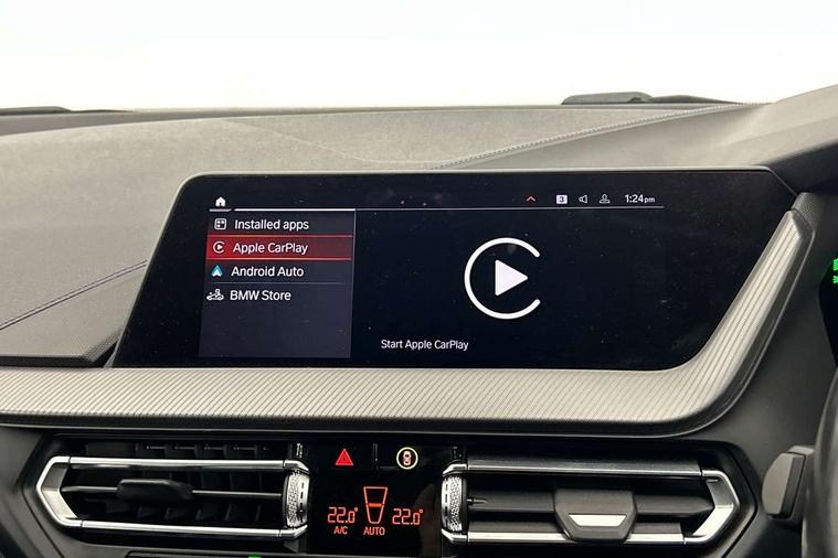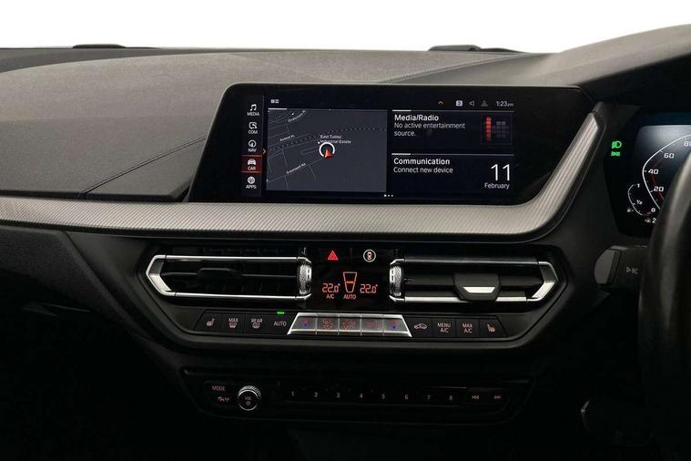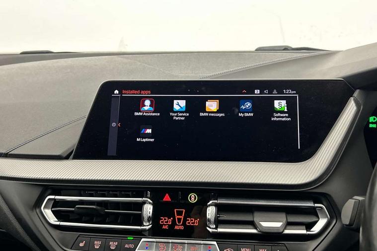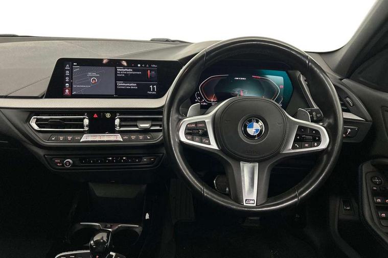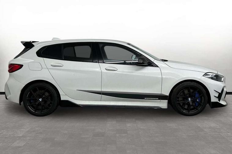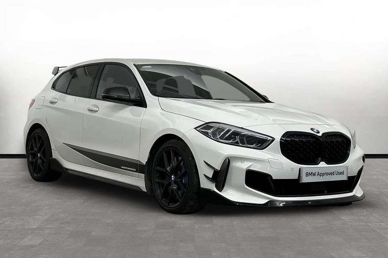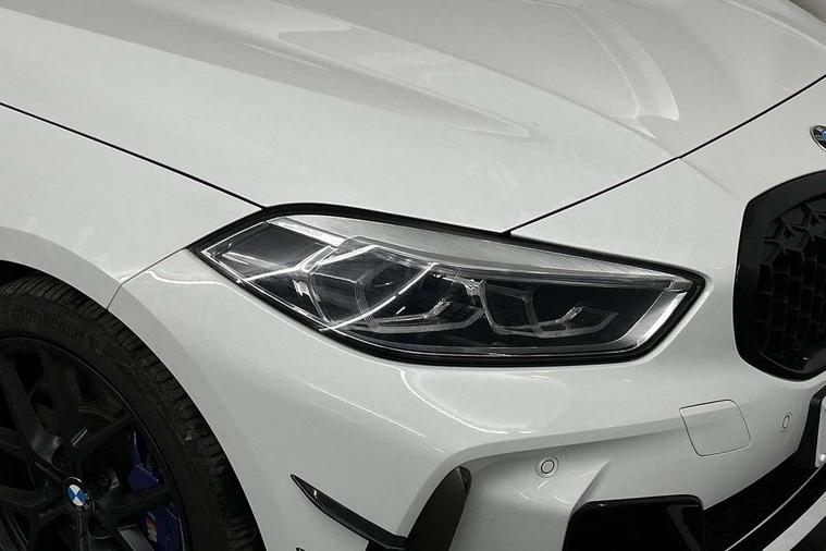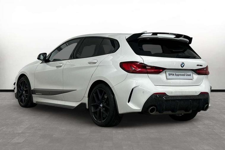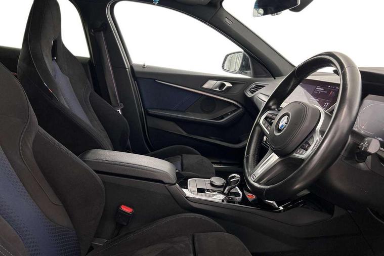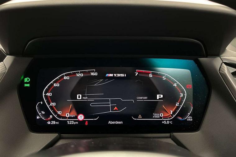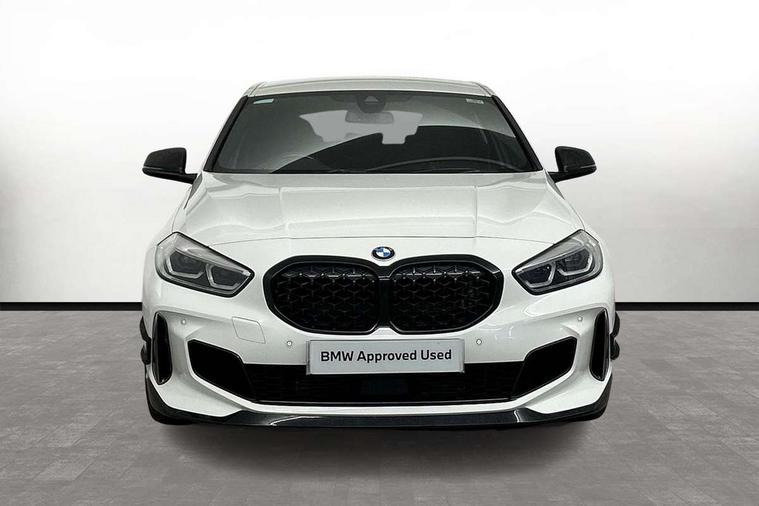 Contrast stitching on instrument panel, Connected pack professional - 1 Series, Extended Lighting pack - 1 Series M135i, Extended storage pack - 1 Series, Interior lights pack - 1 Series, Luggage compartment pack - 1 Series, M Sport exterior styling aerodynamics pack - 1 Series 135i, 18" Burnished M double spoke Bi-colour alloy wheels finished in Cerium grey matt - style 556M, BMW mobility system, Reduced rolling resistance tyres, Automatic drive away locking facility, Central locking switch for all doors, fuel filler cap and luggage compartment, Deadlocking function system to all doors, Locking wheel bolts, Remote control with integrated key with High-gloss Black inlay and M designation and 1 button for open/ close lock, window, open luggage compartment, Start/stop button with comfort go keyless engine start and auto start stop deactivation button, Thatcham Cat.1 alarm and immobiliser, Bluetooth audio streaming, DAB Digital radio, 2 tone horn, 3 point seatbelts on all seats, front pyrotechnic belt tensioners, stopper and belt force limiters, rear coded belt buckles, Airbags - Front driver and passenger, front and rear head, front side, curtain head protection, Anti lock braking system (ABS) with brake assist, BMW emergency call, Brake drying, Braking readiness, Crash sensor activating central locking release, hazard warning lights, fuel cut off, interior lighting + activation of safety battery terminal clamp, Driver and front passenger seat belt security check, Dynamic stability control + (DSC+), Dynamic Traction Control - DTC, Electrically operated hand brake, Front and rear disc brakes, Front passenger manual airbag deactivation, M Sport braking system, M sport seatbelt, Rear child proof door locks, Seatbelt warning, Side impact protection, Torsen mechanical limited slip differential, Tyre pressure monitoring system, Warning triangle and first aid kit, Auto dimming rear view mirror, Automatic headlight beam throw control, Body colour door handles, Cerium grey exterior mirror caps, Direction indicator side lights in exterior mirrors, Electric folding and anti dazzle exterior mirrors, Fading support, Follow me home headlights, Front and rear electric windows with open and close fingertip control, anti trap facility and comfort closing, Front door sill finishers with M135i designation, Green tinted heat protection glazing, Heated, electrically adjustable exterior mirror aspheric on driver side, convex on passenger side, High gloss shadow line exterior trim, High gloss shadowline window frame, Recess cover mirror frames and B/C pillar embelisher trim, High level third brake light, Kidney grille frame in Cerium Grey with Mesh design, LED daytime running lights, LED eyebrow turn indicators, Lightweight engineering, M logo designation side in cerium grey, M performance exhaust system, M rear spoiler, Matt black air guide grilles, Model designation on right side of tailgate, Nearside reverse light in rear light cluster, Preparation for high beam assistant, Rain sensor including auto headlights activation, Rear fog lights, Rear window wiper, Round exhaust system with twin cerium grey tailpipes in left and right split, Shark fin antenna, Visible VIN plate, Welcome lighting, Windscreen wipers with integrated washing jets, 12V power socket in centre console, 2 cupholders in front centre console, 3 rear seat head restraints, 3 spoke M sports design leather steering wheel finished in nappa leather with specific M badge, Anthracite headlining, Anthracite Velour floor mats, Child seat ISOFIX attachment for two outer rear seats and front passenger seat with anchorage points, Conditioned based service, Driver and front passenger seat heating, Driver side folding compartment in instrument panel, Folding rear clothes hook, Folding rear seats, Four grab handles integrated in roof lining, Front and rear door pockets, Front and rear side armrest integrated into door trim, Front Armrest foldable with integrated storage compartment, Front M seats, Glove compartment, Height adjustable front head restraints, Manual adjust steering wheel, Multi-function controls for steering wheel, Rear seat backrest with manual 60:40 split folding with 3 top tether clips integrated on rear of seat panels, Storage compartment in centre console, Sun visors with vanity mirrors and insert tab, Two zone automatic air conditioning, Active guard plus, Attentiveness assist, BMW Live Cockpit Professional sat nav system including 10.25" high resolution display and Intelligent Voice Assistant, BMW Online services, BMW Teleservices, Check Control warning system for monitoring of lights and door/luggage compartment open warning, Eco pro mode, Gearshift time display in manual mode, Integrated owners handbook, M Sports steering, Oil sensor for level and grade, On board computer, Optimum shift indicator, Personal Profile, Pull away assistant, Speed limiter, Sporty fast gear shifting in sport mode, Aluminium lightweight construction, Anti roll bar front and rear, Balancer shaft, Double VANOS, Drive Performance Control, Eight speed sport automatic transmission with electronic selector lever, Electronic differential lock, Engine cover with M performance designation, High precision injection, Larger fuel tank capacity (50 litres), Launch control, Petrol Particulate Filter, VALVETRONIC engine management,