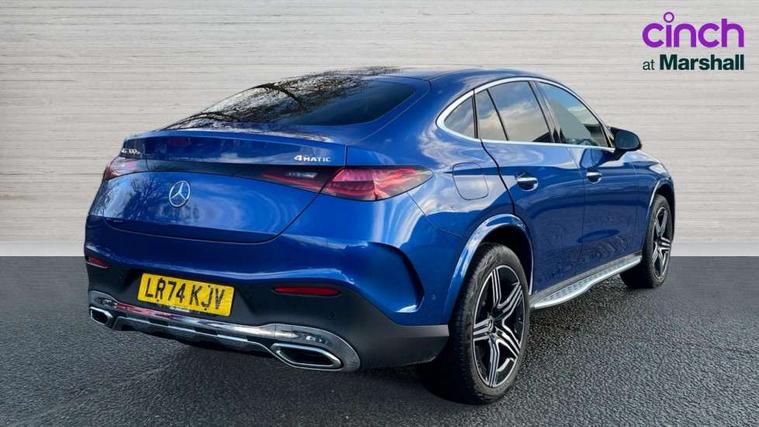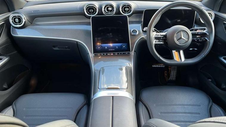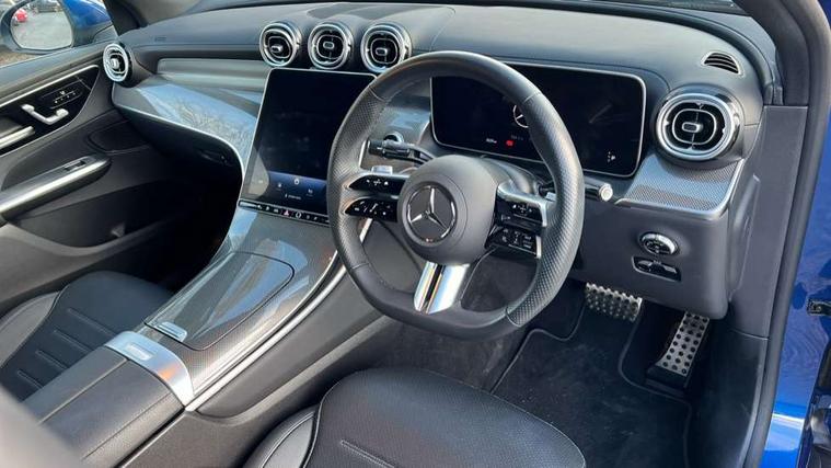 11.9" high resolution multimedia colour display, 12.3" Digital individually configurable instrument display, Acoustic presence indicator, Active lane keeping assist, Attention assist, Blind spot assist, Bluetooth interface for hands free telephone, Collision prevention assist plus, Cruise control with speedtronic variable speed limiter, Dashcam - front camera for video recording, Direct steer speed sensitive steering, DYNAMIC SELECT with a choice of driving modes (ECO, Comfort, Sport, Sport+ and Individual), eCall emergency call system, ECO start/stop function, Fingerprint scanner, Fluorescent jacket for driver, Hard disc navigation, Instrument display in miles with English lettering, MBUX augmented reality for navigation, MBUX navigation premium, MBUX voice control activated by keywords "Hey Mercedes", Mercedes me connect, Multi function trip computer, Outside temperature display, Remote and charging services plus, Remote boot release, Road sign recognition system, Service indicator (ASSYST), Smartphone integration, Status display for rear seat belts in instrument cluster, Traffic sign assist, Wireless charging, 1 x type 2 and 3 phase 4m straight wallbox cable, 49 litre fuel tank, 4MATIC permanent four wheel drive, 7.4 kW monophase on board charger, 9G TRONIC plus automatic transmission, Alternating current charging system (AC charging), Comfort suspension, Petrol Particulate Filter (PPF), Self levelling suspension, DAB digital radio tuner, MBUX extended functions, Mercedes benz sound system, Pre installation for Mercedes Benz Link, Adaptive brake lights, Adaptive high beam assist plus, Aluminium look running boards with rubber studs, AMG bodystyling front apron, rear apron and side skirts, AMG Line exterior, Auto headlights, Body colour bumpers, Body colour door mirrors, Digital light LED headlights, Electrically adjustable door mirrors, Front and rear electric windows, Headlight washers, Heat insulating dark tinted glass, Heated rear window, High level LED brake light, Integrated LED daytime running lights, LED indicator lights, LED rear fog lights, LED tail lamp, Motor way mode function and locator lighting, Noise acoustic glass, Radiator grille with Mercedes Benz pattern and integreated Mercedes star and louvre in dark grey matt with chrome inlay and black frame, Rain sensor windscreen wipers, Range adjustable headlights, Rear side wing doors, Rear wiper, Transparent Bonnet, Two chrome plated tailpipe trim elements, Variable front intermittent wipers, Welcome and follow-me home light functionality, Wider wheel arch for AMG wheels, 3 seat bench in 2nd row, 40:20:40 split folding rear seats, Ambient lighting premium, AMG line interior, Artico man-made leather upholstery, Audio and onboard settings control on multifunction steering wheel, Automatic child seat recognition sensor, Black fabric roof lining, Black floor mats with AMG lettering, Double cup holder in centre console, Easy-pack removable load compartment cover, Electrically height/reach adjustable steering column, Front centre armrest with stowage compartment, Front head restraints, Galvanised steering wheel gearshift paddles, Heated front seats, Illuminated door sill panels with Mercedes Benz lettering, Illuminated glove compartment, Instrument panel and beltlines in ARTICO manmade leather in nappa look, Multifunction sports steering wheel in nappa leather, Rear centre headrest, Rear head restraints, Rear top tether child seat ISOFIX attachment, Single front passenger seat, Sports pedals with stainless steel surfaces and rubber studs, Sports seats, Sun visors, THERMATIC 2 zone automatic climate control, Anti theft protection package - GLC, Boot comfort package - GLC, Exterior chrome package - GLC, Interior chrome package - GLC, Interior lighting pack - GLC, Keyless-Go comfort package - GLC, Memory pack - GLC, Mirror pack - GLC, Parking package with 360 degree camera - GLC, Seat comfort package - GLC, Stowage space package - GLC 300e/300de, USB Plus Pack - GLC, 3 rear 3 point seatbelts, Active braking assist, Anti-lock braking system (ABS), ASR traction control, Automatic front passenger airbag deactivation, Black seat belts, Brake calipers with Mercedes-Benz lettering + perforated brake discs, Child proof door locks, Dual-stage airbags - driver and front passenger, driver knee bag and window bags for driver, front passenger and rear passengers, Electronic parking brake, Electronic stability programme (ESP) with curve dynamic assist and cross wind assist, Front and rear seatbelt reminder, Front passenger seat occupancy sensor, Front seatbelt pretensioners, Hill start assist, Tyre pressure monitoring system, Warning triangle and first aid kit, Automatic door locking, Guard 360 degree vehicle protection plus, Interior protection/immobiliser, Remote central locking, Centre console in metal structure finish, Metal structure trim, 20" AMG 5 spoke aerodynamically optimised light alloy wheels in painted black with high sheen finish, Summer tyres, TIREFIT with tyre inflation compressor,