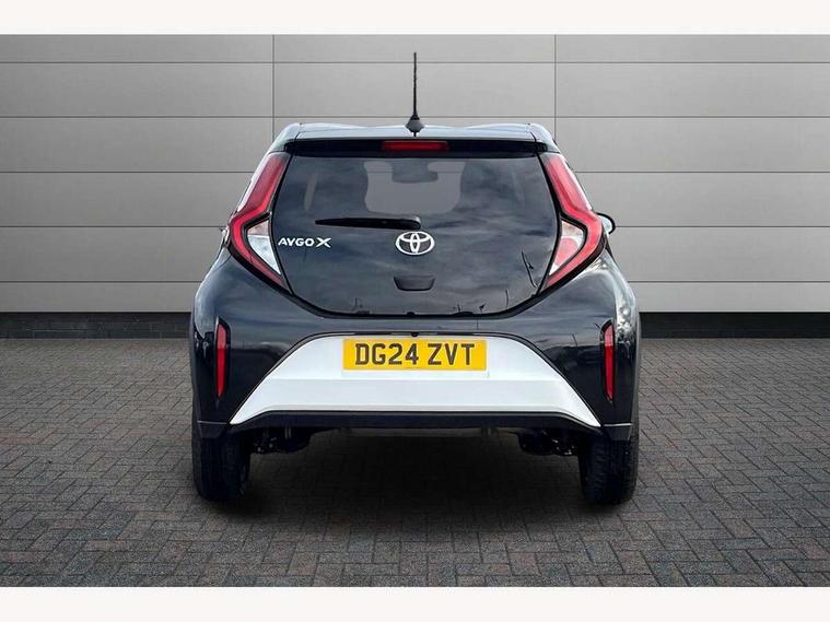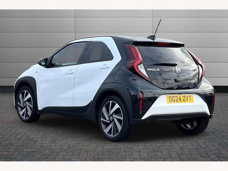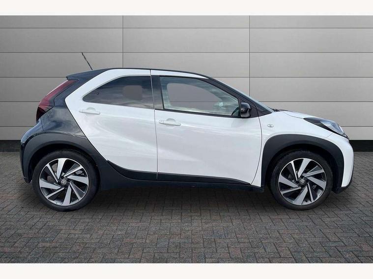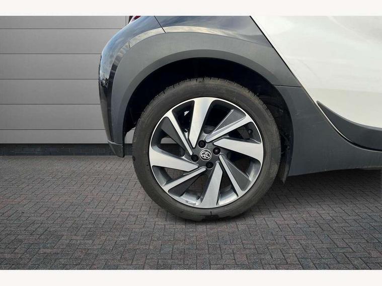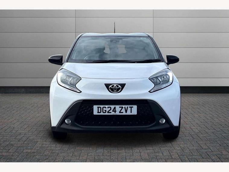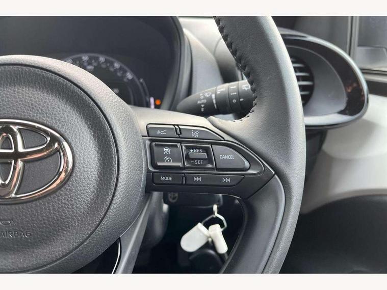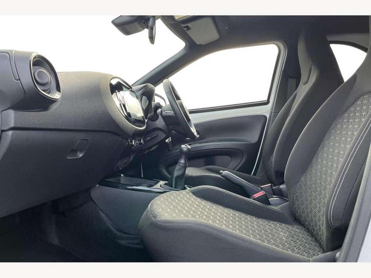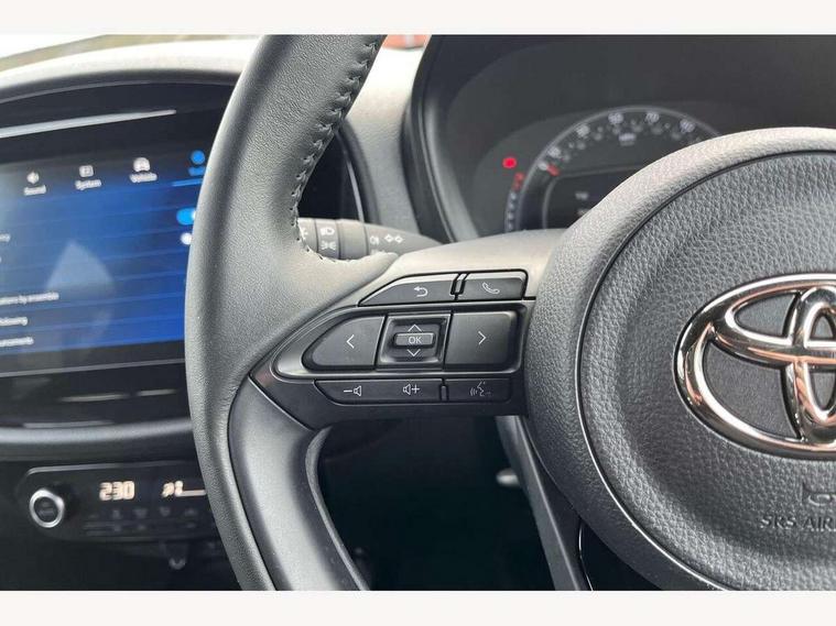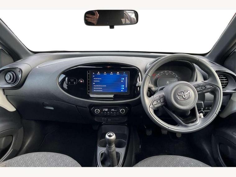 4.2" TFT colour screen, Adjustable speed limiter, Analogue speedometer, Bluetooth connectivity, Digital tachograph, Driver attention alert system, eCall emergency call system, Electric power steering, Intersection turn assist, Key reminder warning, Noise reduction kit, Pre collision system with emergency steering assist, Reversing camera with static guide lines, Smart phone integration with Apple car play/Android Auto, Speed limit display, Start and stop, Vehicle Stability Control (VSC), 4 speakers, 9" HD multimedia display touch screen with Toyota smart connect, DAB digital audio broadcast, USB connector, Auto headlights, Auto wipers, Automatic headlights cut-off, Bicycle towing hook, Black contrast roof, Black side protection mouldings, Black wheel arch mouldings, Body colour door handles, Body coloured front bumper, Boot door scuff plate, Eclipse black rear bumper, Electric heated door mirrors, Follow me home headlights, Front fog lights, Front power windows, Gloss black door mirrors, Gloss black upper front grille, Headlight cut-off reminder, LED daytime running lights, LED front light guide, LED High mounted stop lamp, Manual day/night rear view mirror, Manual headlight levelling, Pagoda roof, Power adjustable door mirrors, Power back door, Privacy glass, Projector halogen headlights, Rain sensor, Rear combination lights LED bulb type, Rear side wing doors, Rear windscreen defogger, Rear windscreen wiper, Short antenna, Variable intermittent windscreen wipers, 12v power outlet - front, 2 seat bench in 2nd row, 3 spoke leather steering wheel, 50/50 split folding rear seat, Adhesive roof headlining, Adjustable speed limiter switch on steering wheel, Audio and telephone switches on steering wheel, Auto air conditioning, Black insert on steering wheel, Black roof lining, Boot light, Centre room light, Chrome interior door handles, Chrome surround on air conditioning buttons, Clean air filter, Console box storage in body color, Fabric upholstery, Floor mats, Front and rear cup holders, Front head rest deco art, Front head restraints, Height adjustable driver seat, Intelligent adaptive cruise control switch on steering wheel, ISOFIX child restraint system on rear seats, Lane departure alert switch on steering wheel, Leather gearshift knob, Manual tilt steering wheel, Manually reclining and sliding driver seat, Manually reclining and sliding front passenger seat, Multimedia switches on steering wheel, Pollen filter, Rear door pockets, Rear head restraints, Satin silver insert on gear shift knob, Single compartment glovebox with lights, Single front passenger seat, Soft tonneau cover, Sun visors with mirror on driver and passenger side, Voice recognition switch on steering wheel, Toyota safety sense pack - Aygo X, Anti lock braking system + Electronic brake force distribution, Child safety door lock, Emergency brake light signal (EBS), Hill start assist control (HAC), Passenger airbag on/off switch, Seat belt reminder for front and rear seats, Supplement restraints system (SRS) - 6 airbags, Traction control, Tyre pressure warning system, Immobiliser, Remote power door locks, Black wheel centre caps, Tyre repair kit,