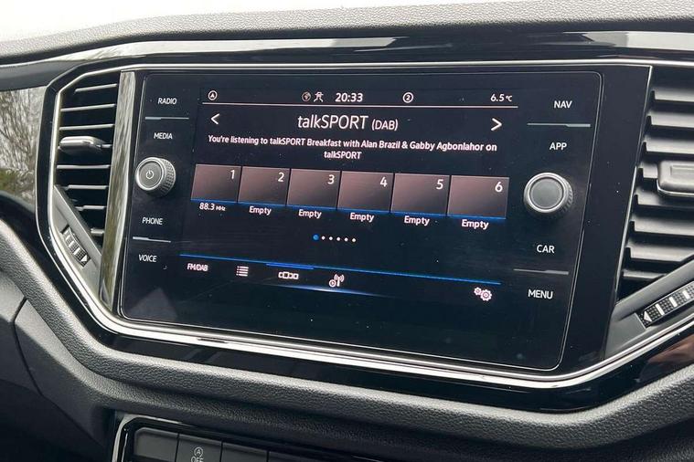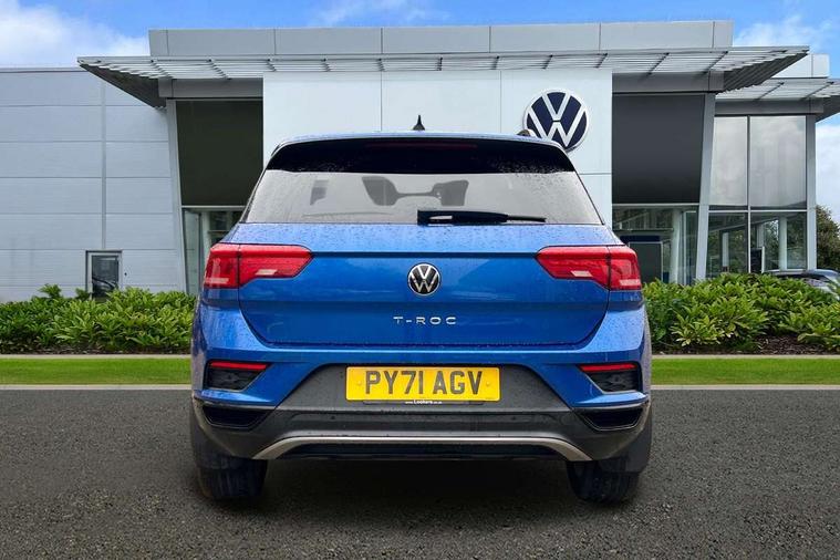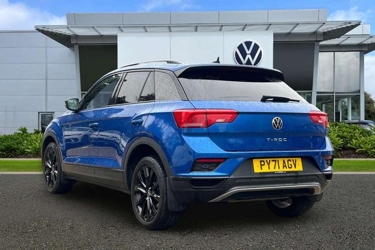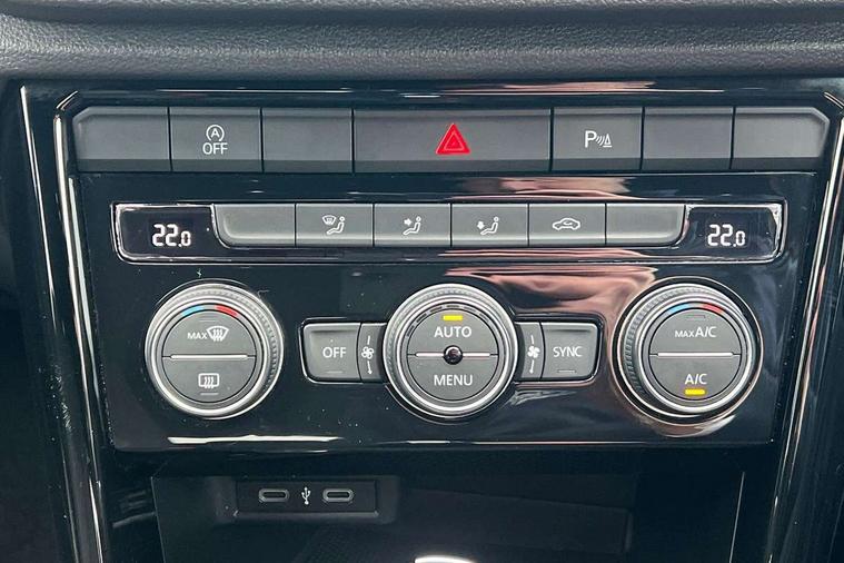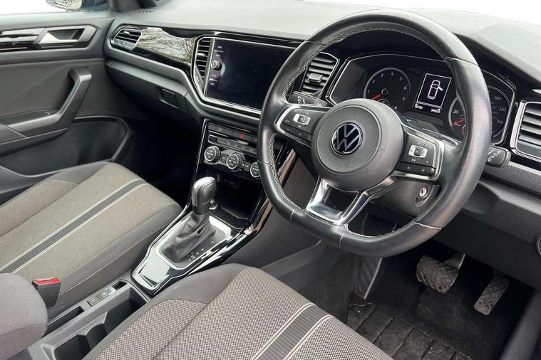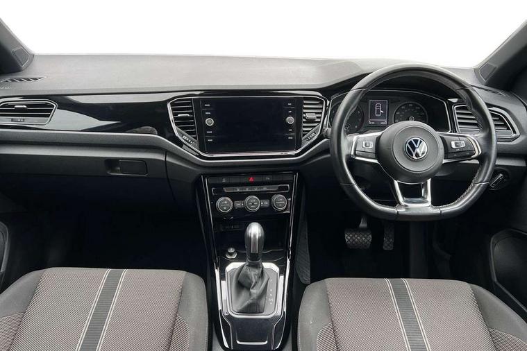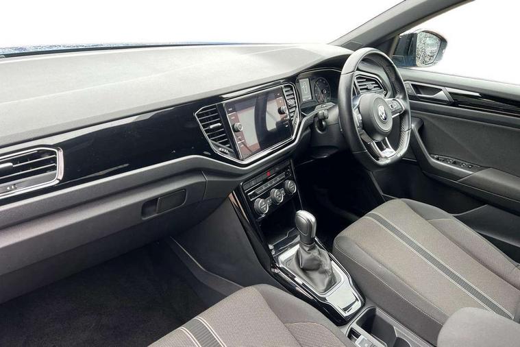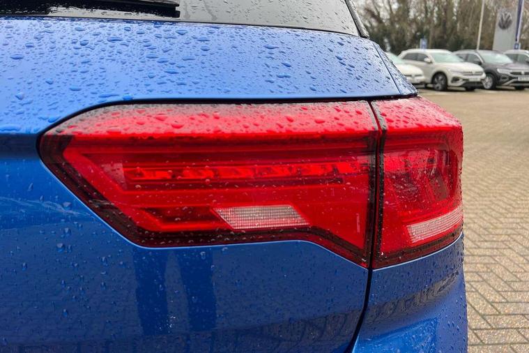 'Lights On' Reminder warning buzzer, Adaptive cruise control, Bluetooth telephone and audio connection for compatible devices, Car information display, Driver tips and journey analysis, Emergency call service, Lane assist with warning text instrument cluster, Modified key software - reduce switch off time for key status change to Long no motion, Multifunction camera, Multifunction computer with visual gear change recommendation for fuel consumption, Service interval indicator, Think blue trainer driver tips and journey analysis, Warning sound and light for doors and tailgate open, Warning sound and light for front seatbelts unfastened, Wireless app connect for apple carPlay, Battery regeneration during braking, Start/stop function with battery regeneration, DAB Digital radio, Diversity antenna for FM reception, Multi device interface (MDI) with USB connection, Music playback - MP3, WMA and AAC files, Premium USB cable in choice of either Apple or Android smartphone compatibility, SD card slot, Simultaneous pairing of 2 compatible mobile devices, Single CD player, glovebox mounted, SMS functionality - read, compose and send SMS messages using touch-screen display, Storage compartment with longitudinal and height adjustable in armrest and two rear air vents, Title and cover art display, USB-C Interface and USB charging socket, Auto dimming interior rear view mirror, Automatic coming/leaving home lighting function and daytime running lights, Automatic hazard lights activation under emergency braking, Black grained lower door protectors, Black grained wheel arches, Black roof rails, Body colour door handles, Body colour sports bumpers with silver metallic underbody fascia, Body coloured bumpers and radiator grille with chrome trim and front fog lamps with chrome bezel, Chrome trim on upper and lower radiator grille, Dusk sensor, Electrically foldable, adjustable and heated door mirrors with puddle lights and reverse activated kerb-view adjustment on passenger's door mirror, Exhaust tailpipes in black, External USB type C socket and charging sockets, Front and rear electric windows, Front windscreen wiper with intermittent wipe and 4 position delay, Fully galvanised body, Heated rear window, High level 3rd brake light, LED headlamps with automatic range adjustment and unique signature LED separate daytime running lights, LED rear number plate lights, LED tail lamp rear comination lamps, Privacy glass, Rain sensor, Rear tinted glass from B-pillar backwards approx 65% tinted, Rear wash/wipe with intermittent wipe setting, Trim strips on grille and vehicle side, Volkswagen roundel, 12V socket in centre console storage area, 3 rear head restraints, 4 load lashing points in luggage compartment, Black roof lining, Climate control - 2 zone electronic air conditioning with automatic air recirculation and allergy filter, Door and side trim panel, Drawer under drivers seat, Front centre armrest, Front cupholders x 2, Front seat back storage pockets, Glovebox, Height adjustable front seats, Height/reach adjust steering wheel, Instrument lighting, white adjustable panel illumination, Interior light in footwell, Isofix easy fit child seat preparation for 2 outer rear seats, Leather gearshift knob, Leather multi function sport steering wheel with gear change selection via paddle shift on steering wheel, LED interior light with switch off delay/dimmer and 2 front/rear LED reading lights, Load through provision with single cup holder when folded down, Luggage compartment cover, removable, Luggage compartment lighting, Split folding rear seat backrests with centre armrest, Storage compartment in left and right luggage area, Storage compartment in rear doors, Storage compartments in driver and front passenger doors, Sunvisors with illuminated vanity mirrors, White ambient lighting, Black decal on C-pillar pack - T-Roc, 3 rear three point seatbelts, ABS, Curtain airbags, Driver and front passenger safety-optimised head restraints, Drivers and front passengers airbags with passengers deactivation switch, Drivers seatbelt reminder, Electronic parking brake with auto hold, Electronic stability control (ESC) includes ASR, EDL, EDTC and trailer stabilisation function, Front assist with city emergency braking and pedestrian monitoring, Front seat side impact airbags, Predictive pedestrian protection, Rigid safety cell with front and rear crumple zones, Single tone horn, Three point height adjust front seatbelts + pretensioners, Tyre pressure loss indicator, Ventilated front and rear disc brakes, Volkswagen roadside assistance, Alarm with remote central locking and interior protection, Electronic engine immobiliser, Remote central locking with SAFELOCK, radio remote control with 2 remote control folding keys, Black decorative trims, Piano black decorative inserts in dash, centre console and door panel, 18" Arlo black diamond turned surface alloy wheels with low rolling resistance tyres and anti theft wheel bolts,