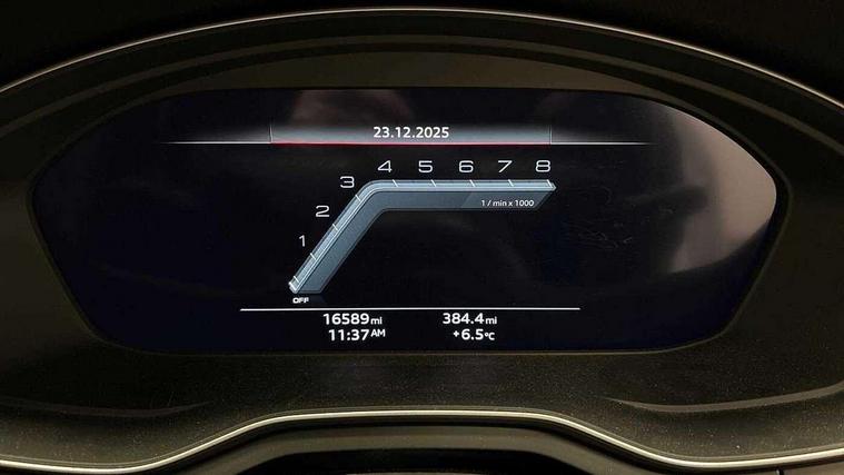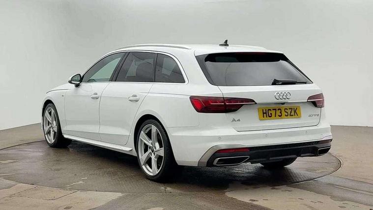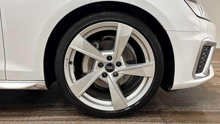 Audi connect safety and service (e-call), Audi drive select, Audi smartphone interface, Audi virtual cockpit, Automatic start-stop system with coasting functionality and efficiency programme, Bluetooth interface, Camera based traffic sign recognition, Electromechanical power steering, Email, calendar and text messages displayed via MMI, Front and rear parking sensors, Lane departure warning, MMI Navigation plus with MMI touch includes 10.1" high resolution colour MMI display, 3D map, Power operated tailgate, Rear view camera, Voice control system, 54 litre fuel tank, Sports suspension lowered by 23mm, 2 USB charging ports, 8 passive loudspeakers, DAB digital radio reception, Aluminium roof rails, Auto dimming rear view mirror, Body colour door handles, Body colour front spoiler lip, Body colour side sill trim, Body coloured door mirrors, Electric adjustable/heated/folding door mirrors with auto dimming, Grained matt black side air inlets with matt aluminium silver inlay, High beam assistant, Honeycomb structure radiator grille in grained matt black, LED headlights with LED rear lights + dynamic rear indicators + headlight adjustment and high beam, turning light + LED daytime running lights, LED third brake light, Matt aluminium silver tailpipe trim, Privacy glass, Rain and light sensors, Rear side wing doors, Rear wiper, S Line badges on the front wings, S line front and rear bumpers with side skirts, S Line rear diffuser in matt anthracite black with trim strip in matt aluminium silver, S Line roof edge spoiler, Variable intermittent front wash/wipe, Windscreen with acoustic glazing, 3 spoke high multi-function sports leather steering wheel grips in perforated leather with S badging including paddle shift, 4 way electric lumbar support for driver and front passenger, 40/20/40 split folding 3 rear seat bench in 3 parts with rear centre armrest, Black carpets, Black cloth headlining, Black perforated leather gearknob, Contrast stitching on seats, steering wheel and gear lever gaiter, Deluxe 3 zone electronic climate control, Electric load area cover, Front and rear head restraints, Front centre armrest, Heated front seats, Illuminated door sill trims with S logo, ISOFIX child seat mounting and top tether, Manual seat adjustment, Single front passenger seat, Stainless steel pedals and foot rest, High gloss package - A4, LED Interior light pack - A4/S4, 3 rear seatbelts, 6 airbags - Driver, front passenger, curtain and side windows, Attention and drowsiness assist, Electronic Stabilisation Control (ESC) including ABS, ASR and EDL, Hill hold assist, Multi collision brake assist, Pop-up bonnet for pedestrian protection, Pre sense city, Rear door child safety locks, Seatbelt monitoring, Warning triangle and first aid kit, Anti theft alarm, Anti theft wheel bolts, Central locking, Keyless Go, Matt brushed aluminium inlays, Tool kit, Tyre repair kit,