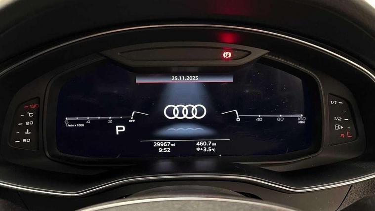 Audi connect safety and service (e-call), Audi connect with Amazon Alexa Integration, Audi drive select, Audi parking system plus - acoustic and visual park assist system for front and rear, Audi smartphone interface, Audi virtual cockpit - 12.3" high resolution LCD digital instrument cluster display, Automatic start/stop system with coasting functionality, Bluetooth interface, Colour driver's information system display, Electric boot lid release, Lane departure warning system, MMI nav plus with MMI touch + 10.1" and 8.6" HD haptic touch screen/3D city models/country information/online map/route info and personal route assist, Operating buttons in black, glass look with haptic feedback, Power operated tailgate, Progressive steering, Rear view camera, Service indicator, Voice control system, 24 litre AdBlue tank, Diesel particulate filter, Sports suspension, Audi music interface - 2 USB ports with charger and data functions, Audi sound system with 6 channel amplifier, 180 watt amplifying capacity and 10 loudspeakers including subwoofer, Auxiliary input socket, DAB digital radio module, Body coloured door mirrors, Coming/leaving home animations in front and rear, Frameless auto dimming interior rear view mirror, Front and rear electric windows, HD Matrix LED headlights with dynamic front and rear indicators, Headlight washers, Heat insulating darkened glass in side and rear windows, High gloss black radiator grille with chrome single frame surround, Privacy glass with side and rear windows, Rain and light sensors, Rear side wing doors, Rear wiper, Retractable rear boot spoiler, S line air inlet design with inlay in high gloss black, S Line badge on front fender, S line badge on front grille, S Line Black rear diffuser with chrome inlays and rear grille, S Line front and rear bumpers, S Line side skirts, Signature LED daytime running lights, Third brake light, Towbar preparation, Windscreen with heat-insulating glass, 2 zone deluxe electronic climate control, 4-way electric lumbar support, 40/20/40 split folding 3 seater rear seat bench with rear centre armrest, Black cloth headlining, Electrically adjustable front seats - driver seat with memory, Front and rear headrests, Front centre armrest, Heated front seats, Height/reach adjust steering wheel, Illuminated door sill trims with S logo, Illuminated sun visors with vanity mirrors, ISOFIX child seat mounting and top tether in front and outer rear seats with front passenger airbag deactivation, Leather gear knob, Leatherette upper instrument panel and door shoulders, Luggage compartment floor, Perforated leather steering wheel with contrast stitching, S line front and rear floor mats with contrast stitching, Single front passenger seat, Stainless steel pedals and foot rest, Tool kit and car jack, LED interior ambient lighting pack - A7, Non smoking pack - A7, 3 point seatbelts on all seats, Audi pre-sense front, Driver and passenger airbags, Electromechanical parking brake, Electronic stabilisation control including ABS, ASR and EDL, Extended pedestrian protection measures, Hill hold assist, Manual child lock in rear doors, Seatbelt monitoring, Tyre pressure warning light, Warning triangle and first aid kit, Anti theft alarm with tow away protection, Anti-theft wheel bolts and wheel loosening detection, Immobiliser, Keyless Go, Preparation for tracking system, Remote central locking, Dark matt brushed aluminium inlay,