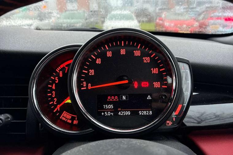 Acoustic seat-belt warning, Basic bluetooth function with USB audio, Brake fluid level warning light, Brake pad wear indicator warning light, DTC - Dynamic traction control, Exterior temperature gauge, Intelligent emergency call, MINI TeleServices, Oil level indicator, On board computer, Push button starter, Service interval indicator, Servotronic PAS, Electronic differential lock, Auxiliary input socket, DAB digital radio module, 2 speed wipers+intermittent wipe, Aluminium tailgate, Anti dazzle mirror, Anti trapping/one touch open close front windows, Body coloured bumpers, Chrome bezels around rear lights and headlights, Chrome door handles, Chrome exhaust tailpipe, Chrome grille surround, Chrome plated trim on bottom edge of window, Chrome strip on lower grille, Electric front windows, Electric rear windows, Electrically adjustable door mirrors, Flared wheel arches, Follow me home headlights, Green tinted heat insulating glass, Heated door mirrors/heated windscreen washers, Heated rear window with auto timer, High gloss black tailgate, LED fog lights, LED rear lights, Rear wiper, Side scuttles, White indicator lights, 2 rear head restraints, 4 boot load lashing points, 4 way manually adjustable passenger seat with height, reach, tilt, backrest and headrest, 6-way manually adjustable driver's seat, Active carbon filter, Adjustable front seats backrest, Air recirculation system, Auxiliary socket in centre console storage compartment, Centre console storage, Driver's seat height adjuster, Driver/passenger sunvisors, Front and rear cupholders, Front head restraints, Front passenger grab handle, Gear/selector and handbrake in artificial leather, Internal chrome door handles, Isofix child seat preparation, Luggage compartment lighting, Multifunction steering wheel, Reach + rake adjustable steering column, Rear grab handles, Rear storage trays, Split folding rear seats, Storage compartments in doors, Toolkit in luggage compartment, 3 point seatbelts, 3x3 point rear seatbelts, ABS/EBD, ASC+T, CBC - (Cornering brake control), Crash Sensor - activates hazard/interior lighting + unlocks doors, Driver and passenger airbags, Driver/front passenger side airbags, DSC - Dynamic Stability Control, Fuel cut off safety device, Head airbags, Hill start assist, Passenger airbag deactivation system, Seatbelt pretensioners, Tyre pressure warning, Ventilated front disc brakes, Drive away door locking, Locking wheel bolts, Remote central locking/doors+fuel cap+tailgate, Second remote key, Thatcham category 1 alarm + immobiliser,