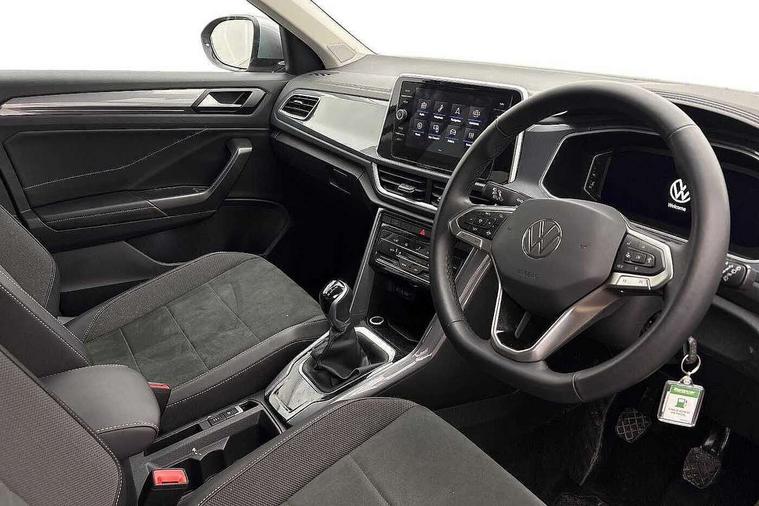 10.25" Digital cockpit pro, Advanced driver attention and drowsiness monitor, Emergency call service, Lane keeping system Lane Assist, Mobile phone interface, Modified key software - reduce switch off time for key status change to Long no motion, Online services, Park assist including front and rear parking sensors, Power assisted speed sensitive steering, Service interval indicator, Tailgate/trunk lid release from outside, Think blue trainer driver tips and journey analysis, Warning sound and light for front seatbelts unfastened, Wireless app connect, Battery regeneration during braking, Start/stop function with battery regeneration, DAB Digital radio, Diversity antenna for FM reception, Front and rear 6 speakers, Music playback - MP3, WMA and AAC files, Premium USB cable in choice of either Apple or Android smartphone compatibility, SD card slot, Simultaneous pairing of 2 compatible mobile devices, Title and cover art display, We Connect and We Connect Plus functionality, Auto dimming interior rear view mirror, Automatic hazard lights activation under emergency braking, Automatic headlight control with LED separate daytime running lights with coming/leaving home function, Body colour sports bumpers with silver metallic underbody fascia, Body coloured exterior mirror housings and door handles, Dynamic headlight range control with self adjusting whilst driving, Electrically adjustable and heated door mirrors, Extended roof spoiler, Exterior mirrors aspherical on driver side, convex on front passenger side, External USB type C socket and charging sockets, Front windscreen wiper with intermittent wipe and 4 position delay, Heated rear window, LED 3rd brake light, LED rear combination lamps, LED rear number plate lights, Light mode for poor weather, rain, fog or snow, Power windows with comfort operation and circuit breaker, Privacy glass for rear side windows and rear window, Rain sensor, Rear exhaust tailpipe, Rear fog light on one side and reversing lights on both sides, Rear side wing doors, Rear wash/wipe with intermittent wipe setting, Remote electrically foldable door mirrors, puddle lights and reverse activated passenger's door mirror, 12V power socket in centre console, 3 rear head restraints, 3 seat bench in 2nd row, 4 load lashing points in luggage compartment, Air care climatronic air conditoning system with active combination filter and 2-zone temperature control, Chrome plated radiator grille inserts, air vent surrounds and light switch surrounds, Door and side trim panel with leatherette insert, Drawer under drivers seat, Front + rear carpet mats, Front centre armrest, Front comfort sports seats, Front cupholders x 2, Front footwell illumination, Front seat back storage pockets, Glove compartment door with light, Instrument lighting, white adjustable panel illumination, Interior ambient lighting and surround lighting, Interior light delay, Isofix child seat preparation, Leather gearshift handle, LED interior light with switch off delay/dimmer and 2 front/rear LED reading lights, Load-through provision with cup holder when folded down ('Unsplit rear seat bench, split folding backrest, with centre armrest), Luggage compartment lighting, Non-folding front passenger seat backrest, Single front passenger seat, Storage compartment in left and right luggage area, Storage compartment in rear doors, Storage compartments in driver and front passenger doors, Sunvisors with illuminated vanity mirrors, Variable boot floor, height adjustable and removable, Driver assistance pack without proactive passenger protection - T-Roc, 3 point height adj front seatbelts + pretensioners, 3 point seatbelts in outer rear with ECE label, ABS, Child locks on rear doors, City emergency braking and pedestrian monitoring, Driver and front passenger airbag with front passenger airbag deactivation, Driver and front passenger safety-optimised head restraints, Drivers seatbelt reminder, Electronic parking brake, Electronic Stability Control (ESC) inc EDL (Electronic Differential Lock) and ASR (Traction Control), Front and rear passengers curtain airbag system including front side airbags, Predictive pedestrian protection, Rear disc brakes, Two tone horn, Tyre pressure loss indicator, Volkswagen roadside assistance, Deep iron grey decorative inserts in dashboard, centre console and front door trim panels, Trims for alloy wheels,
