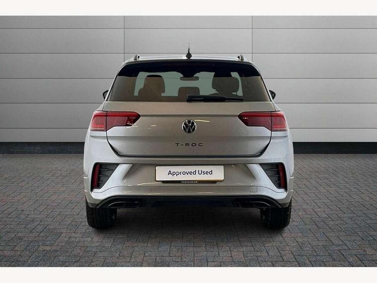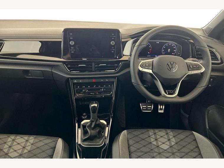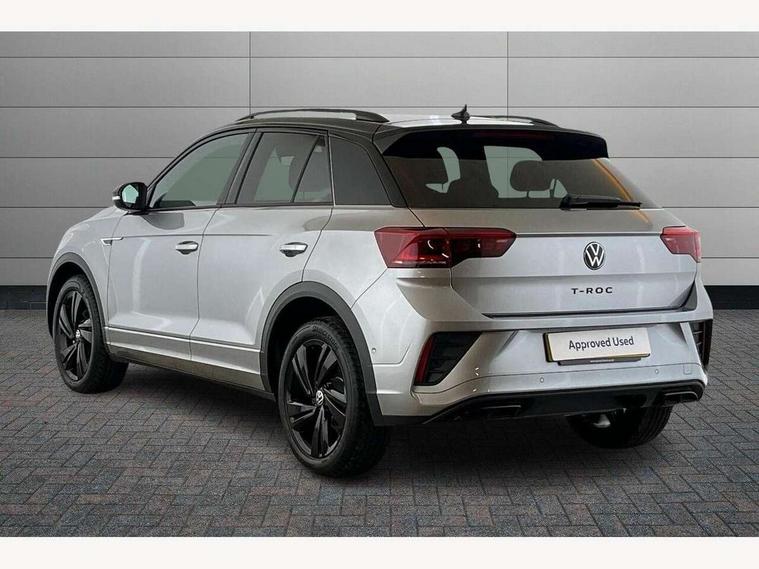 10.25" Digital cockpit pro, Advanced driver attention and drowsiness monitor, Emergency call service, Lane keeping system Lane Assist, Mobile phone interface, Modified key software - reduce switch off time for key status change to Long no motion, Online services, Park assist including front and rear parking sensors, Power assisted speed sensitive steering, Rear view camera, Service interval indicator, Tailgate/trunk lid release from outside, Think blue trainer driver tips and journey analysis, Warning sound and light for front seatbelts unfastened, Wireless app connect, Battery regeneration during braking, Rear shock absorption chassis with increased ride height, Start/stop function with battery regeneration, DAB Digital radio, Diversity antenna for FM reception, Music playback - MP3, WMA and AAC files, SD card slot, Simultaneous pairing of 2 compatible mobile devices, Title and cover art display, We Connect and We Connect Plus functionality, Advanced dynamic light assist for LED matrix headlights, Auto dimming interior rear view mirror, Automatic hazard lights activation under emergency braking, Black roof rails, Dynamic cornering light, Dynamic headlight range control with self adjusting whilst driving, Electrically adjustable and heated door mirrors, Extended roof spoiler, Exterior ambient lighting, Exterior mirrors aspherical on driver side, convex on front passenger side, External USB type C socket and charging sockets, Front windscreen wiper with intermittent wipe and 4 position delay, Heated rear window, Illuminated front grille, IQ LED matrix headlights, LED 3rd brake light, LED rear number plate lights, LED rear tail lights with dynamic turn signal, LED separate daytime running light, Light mode for poor weather, rain, fog or snow, Power windows with comfort operation and circuit breaker, Privacy glass for rear side windows and rear window, R-Line design body coloured bumpers, Rain sensor, Rear exhaust tailpipe, Rear fog light on one side and reversing lights on both sides, Rear side wing doors, Rear wash/wipe with intermittent wipe setting, Remote electrically foldable door mirrors, puddle lights and reverse activated passenger's door mirror, Tilting and sliding panoramic sunroof with rear panoramic sunroof, 12V power socket in centre console, 3 rear head restraints, 3 seat bench in 2nd row, 4 load lashing points in luggage compartment, Air care climatronic air conditoning system with active combination filter and 2-zone temperature control, Chrome plated radiator grille inserts, air vent surrounds and light switch surrounds, Door and side trim panel with leatherette insert, Drawer under drivers seat, Front + rear carpet mats, Front centre armrest, Front comfort sports seats, Front cupholders x 2, Front footwell illumination, Front reading light, Front scuff plates with R Line logo, Front seat back storage pockets, Glove compartment door with light, Instrument lighting, white adjustable panel illumination, Interior ambient lighting and surround lighting, Interior light delay, Isofix child seat preparation, Leather gearshift handle, Load-through provision with cup holder when folded down ('Unsplit rear seat bench, split folding backrest, with centre armrest), Luggage compartment lighting, Non-folding front passenger seat backrest, Single front passenger seat, Stainless steel pedals, Storage compartment in left and right luggage area, Storage compartment in rear doors, Storage compartments in driver and front passenger doors, Sunvisors with illuminated vanity mirrors, Variable boot floor, height adjustable and removable, Black design pack - T-Roc black edition plus, Easy open package with safelock - T-Roc, Sport pack with sports suspension - T-Roc, 3 point height adj front seatbelts + pretensioners, 3 point seatbelts in outer rear with ECE label, ABS, Child locks on rear doors, City emergency braking and pedestrian monitoring, Driver and front passenger airbag with front passenger airbag deactivation, Driver and front passenger safety-optimised head restraints, Drivers seatbelt reminder, Electronic parking brake, Electronic Stability Control (ESC) inc EDL (Electronic Differential Lock) and ASR (Traction Control), Front and rear passengers curtain airbag system including front side airbags, Front disc brakes, Hill start assist, Predictive pedestrian protection, Rear disc brakes, Two tone horn, Tyre pressure loss indicator, Volkswagen roadside assistance, Keyless locking and starting system keyless access with safelock, Gloss deep iron dash trim, 19" Misano black diamond turned alloy wheels with low rolling resistance and anti theft wheel bolts, Tool kit, Trims for alloy wheels, Tyre mobility kit including compressor and sealing foam,