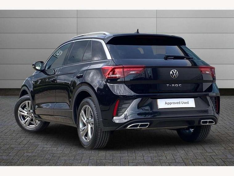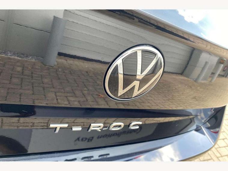 10.25" Digital cockpit pro, Advanced driver attention and drowsiness monitor, Emergency call service, Lane keeping system Lane Assist, Mobile phone interface, Modified key software - reduce switch off time for key status change to Long no motion, Online services, Park assist including front and rear parking sensors, Service interval indicator, Tailgate/trunk lid release from outside, Think blue trainer driver tips and journey analysis, Warning sound and light for front seatbelts unfastened, Wireless app connect, Battery regeneration during braking, Start/stop function with battery regeneration, DAB Digital radio, Diversity antenna for FM reception, Front and rear 6 speakers, Music playback - MP3, WMA and AAC files, Premium USB cable in choice of either Apple or Android smartphone compatibility, SD card slot, Simultaneous pairing of 2 compatible mobile devices, Title and cover art display, We Connect and We Connect Plus functionality, Auto dimming interior rear view mirror, Automatic hazard lights activation under emergency braking, Automatic headlight control with LED separate daytime running lights with coming/leaving home function, Body coloured exterior mirror housings and door handles, Electrically adjustable and heated door mirrors, Extended roof spoiler, Exterior mirrors aspherical on driver side, convex on front passenger side, External USB type C socket and charging sockets, Front windscreen wiper with intermittent wipe and 4 position delay, Heated rear window, LED 3rd brake light, LED rear combination lamps, LED rear number plate lights, Power windows with comfort operation and circuit breaker, Privacy glass for rear side windows and rear window, R-Line design body coloured bumpers, Rain sensor, Rear exhaust tailpipe, Rear fog light on one side and reversing lights on both sides, Rear side wing doors, Rear wash/wipe with intermittent wipe setting, Remote electrically foldable door mirrors, puddle lights and reverse activated passenger's door mirror, 12V power socket in centre console, 3 rear head restraints, 3 seat bench in 2nd row, 4 load lashing points in luggage compartment, Air care climatronic air conditoning system with active combination filter and 2-zone temperature control, Black roof lining, Chrome plated decorative trims, Chrome plated radiator grille inserts, air vent surrounds and light switch surrounds, Door and side trim panel with leatherette insert, Front + rear carpet mats, Front centre armrest, Front cupholders x 2, Front footwell illumination, Front reading light, Front scuff plates with R Line logo, Front seat back storage pockets, Glove compartment door with light, Instrument lighting, white adjustable panel illumination, Interior ambient lighting and surround lighting, Interior light delay, Isofix child seat preparation, Leather gearshift handle, Load-through provision with cup holder when folded down ('Unsplit rear seat bench, split folding backrest, with centre armrest), Luggage compartment lighting, Single front passenger seat, Stainless steel pedals, Storage compartment in left and right luggage area, Storage compartment in rear doors, Storage compartments in driver and front passenger doors, Sunvisors with illuminated vanity mirrors, Variable boot floor, height adjustable and removable, Driver assistance pack without proactive passenger protection - T-Roc, 3 point height adj front seatbelts + pretensioners, 3 point seatbelts in outer rear with ECE label, ABS, Child locks on rear doors, City emergency braking and pedestrian monitoring, Driver and front passenger airbag with front passenger airbag deactivation, Driver and front passenger safety-optimised head restraints, Drivers seatbelt reminder, Electronic parking brake, Electronic Stability Control (ESC) inc EDL (Electronic Differential Lock) and ASR (Traction Control), Front and rear passengers curtain airbag system including front side airbags, Hill start assist, Predictive pedestrian protection, Rear disc brakes, Two tone horn, Tyre pressure loss indicator, Volkswagen roadside assistance, Piano black decorative inserts in dashboard and front door trim panels, Trims for alloy wheels,