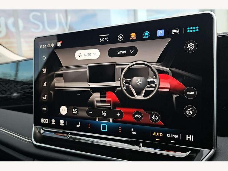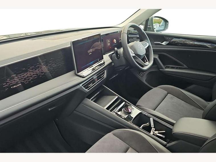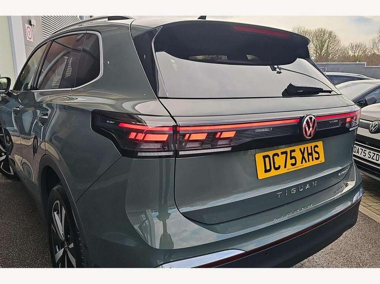 Adaptive cruise control (ACC), Advanced driver attention and drowsiness monitor, Bluetooth mobile phone interface, Car2X technology, Comfort drive travel assist, lane keeping system, lane assist and emergency assist, Digital Cockpit Pro - 10.25" high resolution dash display screen with customisable menus and information, Dynamic road sign display, E-Sim card for online connectivity, eCall emergency call service, Front Assist - Autonomous emergency braking with pedestrian and cyclist monitoring, Lane change system, Side assist, Rear traffic alert and Exit warning system, Multifunction front facing camera, Oncoming vehicle braking when turning including swerve support, Park assist pro with park distance control (Remote park assist), Power assisted steering with speed sensitive, Start/stop system with regenerative braking, Warning signal and warning light for front and rear seatbelts not fastened, Wireless App-Connect, Adaptive chassis control DCC pro includes driving mode selection, Charging cable Mode 3 Type 2 / 3 (16A), Front shock absorption, Front wheel drive, Rear shock absorption, Digital radio reception (DAB), Diversity antenna for FM reception, Air intake with Chrome trim, Ambient lighting with logo projection, Auto dimming interior rear view mirror, Automatic headlight control system, Body colored bumpers in R-Line style, Body coloured door handles, Body-coloured exterior mirror housings, Chrome moldings on the side windows, Coming/leaving home lighting function, Heat insulating glass in side and rear windows, Heated rear window, Heated windscreen washer jets, High level 3rd brake light, Illuminated door handle recesses, Illuminated lightline between headlamps, Laminated safety glass from B-pillar backwards 90% tinted, Laminated safety glass windshield, LED Day time running light, Rain sensor windscreen wipers, Rear fog light on one side, reversing light on both sides, Rear side wing doors, Rear wiper, Silver roof rails, 12V outlet in center console rear and in luggage compartment, 12V socket in centre console, 3 bench rear seats in 2nd row, Air care climatronic 3 zone air conditioning system with rear air conditioning control panel, Carpet mats, front and rear, Centre console with illuminated storage compartment with sliding cover and two drinks holders, Ceramique headlining, Chrome elements on the mirror switch and power window switches and door pulls, Door and side trim panel with leatherette insert, Door sill protectors, Front centre armrest, Interior ambient lighting with 30 colour options, ISOFIX anchors for child seats on outer rear seats and front passenger seat compatible with i-Size, Mechanical rear seat release, Power adjustable lumbar support in front, Rear bench seat, split folding, longitudinally movable and folding with load-through hatch and centre armrest, Safety optimised front head restraints, Single front passenger seat, Sports comfort seats in front, Sun visors with illuminated vanity mirrors, Three rear head restraints, Variable luggage compartment floor, Comfort package with park assist plus and Safelock - Tiguan, Driver assistance package - Tiguan, 3 point seat belt for centre rear seats, 3 Point seat belts in front with pretensioners, 3 point seatbelts in outer rear with ECE label, Driver and front passenger airbag with front passenger airbag deactivation, Electronic parking brake with auto hold, Front and rear curtain airbags, Front and rear side airbags, Front centre airbag, Front disc brakes, Hill start assist, Manual child proof rear door locks, Rear disc brakes, Two tone horn, Warning triangle, Decorative inserts Cross in dash and front door panels, Interior door handle in matte chrome, Soul instrument panel, Tyre mobility kit including compressor and sealing foam,