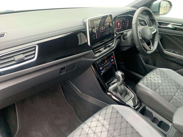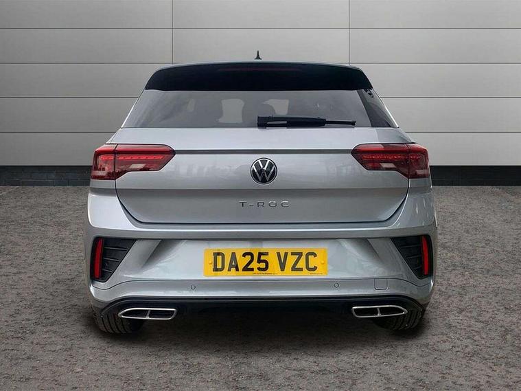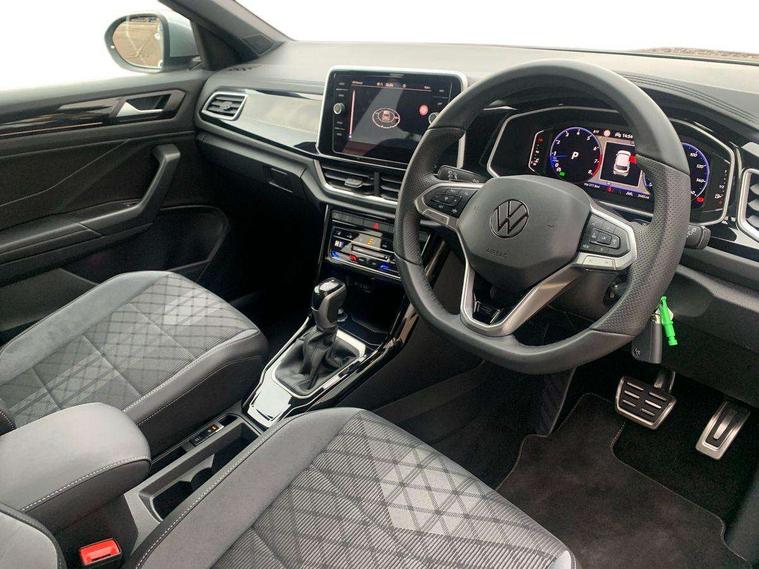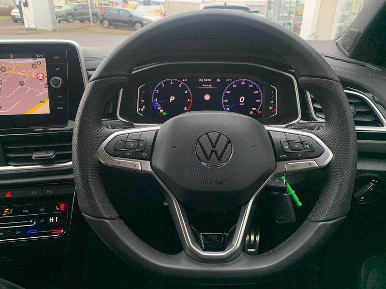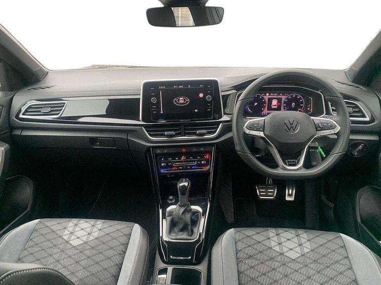 10.25" Digital cockpit pro, Advanced driver attention and drowsiness monitor, Emergency call service, Lane keeping system Lane Assist, Mobile phone interface, Modified key software - reduce switch off time for key status change to Long no motion, Online services, Park assist including front and rear parking sensors, Service interval indicator, Tailgate/trunk lid release from outside, Think blue trainer driver tips and journey analysis, Warning sound and light for front seatbelts unfastened, Wireless app connect, Battery regeneration during braking, Start/stop function with battery regeneration, DAB Digital radio, Diversity antenna for FM reception, Front and rear 6 speakers, Music playback - MP3, WMA and AAC files, Premium USB cable in choice of either Apple or Android smartphone compatibility, SD card slot, Simultaneous pairing of 2 compatible mobile devices, Title and cover art display, We Connect and We Connect Plus functionality, Auto dimming interior rear view mirror, Automatic hazard lights activation under emergency braking, Automatic headlight control with LED separate daytime running lights with coming/leaving home function, Body coloured exterior mirror housings and door handles, Electrically adjustable and heated door mirrors, Extended roof spoiler, Exterior mirrors aspherical on driver side, convex on front passenger side, External USB type C socket and charging sockets, Front windscreen wiper with intermittent wipe and 4 position delay, Heated rear window, LED 3rd brake light, LED rear combination lamps, LED rear number plate lights, Power windows with comfort operation and circuit breaker, Privacy glass for rear side windows and rear window, R-Line design body coloured bumpers, Rain sensor, Rear exhaust tailpipe, Rear fog light on one side and reversing lights on both sides, Rear side wing doors, Rear wash/wipe with intermittent wipe setting, Remote electrically foldable door mirrors, puddle lights and reverse activated passenger's door mirror, 12V power socket in centre console, 3 rear head restraints, 3 seat bench in 2nd row, 4 load lashing points in luggage compartment, Air care climatronic air conditoning system with active combination filter and 2-zone temperature control, Black roof lining, Chrome plated decorative trims, Chrome plated radiator grille inserts, air vent surrounds and light switch surrounds, Door and side trim panel with leatherette insert, Front + rear carpet mats, Front centre armrest, Front cupholders x 2, Front footwell illumination, Front reading light, Front scuff plates with R Line logo, Front seat back storage pockets, Glove compartment door with light, Instrument lighting, white adjustable panel illumination, Interior ambient lighting and surround lighting, Interior light delay, Isofix child seat preparation, Leather gearshift handle, Load-through provision with cup holder when folded down ('Unsplit rear seat bench, split folding backrest, with centre armrest), Luggage compartment lighting, Single front passenger seat, Stainless steel pedals, Storage compartment in left and right luggage area, Storage compartment in rear doors, Storage compartments in driver and front passenger doors, Sunvisors with illuminated vanity mirrors, Variable boot floor, height adjustable and removable, Driver assistance pack without proactive passenger protection - T-Roc, 3 point height adj front seatbelts + pretensioners, 3 point seatbelts in outer rear with ECE label, ABS, Child locks on rear doors, City emergency braking and pedestrian monitoring, Driver and front passenger airbag with front passenger airbag deactivation, Driver and front passenger safety-optimised head restraints, Drivers seatbelt reminder, Electronic parking brake, Electronic Stability Control (ESC) inc EDL (Electronic Differential Lock) and ASR (Traction Control), Front and rear passengers curtain airbag system including front side airbags, Hill start assist, Predictive pedestrian protection, Rear disc brakes, Two tone horn, Tyre pressure loss indicator, Volkswagen roadside assistance, Piano black decorative inserts in dashboard and front door trim panels, Trims for alloy wheels,