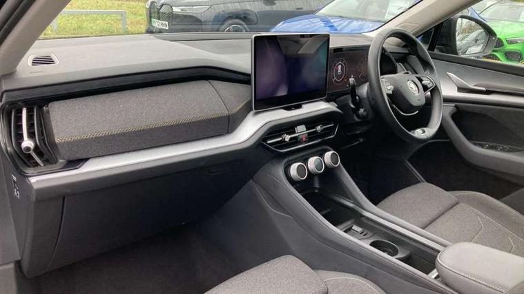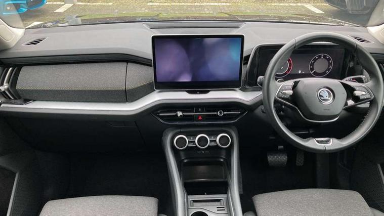 13" satellite navigation touchscreen display, Blind spot detection with door exit warning, Bluetooth system, ChatGPT functionality, Drive mode selector, Driver alert with fatigue sensor, Driver drowsiness alert system, Dry display cleaner, e call+, Front and rear parking sensors, Front cross traffic assist, Lane assist, PAS, Rear traffic assist, Rear view camera, Tailgate unlocking from outside, Traffic sign recognition, USB C Port x 2 in front centre console, Virtual Cockpit - 10.25" digital display, Voice control system, Wireless charging for two smartphones (15W) with cooling function, Wireless SmartLink for Apple CarPlay and Android Auto, Stop/start function, 2x USB-C in the rear, 8 Speakers, DAB Digital radio, Aero front windscreen wipers with intermittent function, All weather light, Auto dimming rear view mirror, Black wheel arch surrounds, Body colour bumpers, Body colour door mirrors and handles, Cornering light and poor weather light, Electric folding /adjustable/separted heated/folding door mirrors, auto dimming with boarding sports and memory function, Electric front and rear windows, Exterior black decorative trims, Heat insulating glass in windshield, Heated rear window, Ice scraper in fuel tank cap, Invisible tailpipe, LED daytime running lights, LED front fog lamps, LED Headlights, LED rear fog light, LED rear lights, LED third brake light in rear spoiler, Light assistant with automatic headlight control and coming home feature, Logo projection in door mirrors, Rear side wing doors, Rear spoiler, Rear window wiper, Safety reflectors on front and rear doors, Unique dark chrome design logo on alloy wheels, Window control switches with black trim, Windscreen wipers with rain sensor, Without engine designation, 1.5l bottle holder points in all door, 12V socket in boot, 1x centre rear reading light, 2 seat bench in 3rd row, 3 configurable smart dials with 32mm coloured display, 3 seat bench in 2nd row, 4 foldable roof handles with rear coat hooks, Ambient interior lighting - Dashboard, front-door stowage compartments, front and rear door panels and footwell lighting, Automatic gear selector on steering wheel, Chrome interior door handles, Driver/front passenger reading lights, Fabric headlining, Fixed bench 40:60:40 split folding backrests, Front and rear floor mats, Front centre armrest with jumbo box storage compartment, cup holder and 12V socket, Front courtesy lights, Height adjustable front headrests, Isofix child seat fittings in outer middle row rear seats and front passenger with top tether, Manual height adjustment for front passenger seats and thigh support extender, Manual lumbar support for front passenger seat, Manually adjustable steering column, Pollen filter, Rear centre armrest with cupholders, Rear seat boot backrest release, Retractable luggage compartment cover, Single front passenger seat, Skoda lettering on steering wheel, Sliding trunk cover, Small Bags on the inner sides of the front backrests, Storage pocket including mobile phone pockets on the backs of the front seats, Sunvisors with illuminated vanity mirrors, Three rear height adjustable headrests, Ticket holder on A Pillar, Tri zone climate control, Umbrella in door panel x1 made from sustainable materials, Upper and lower glovebox with card holder and coin compartment, USB C port by rear view mirror for charging only (15W), Variable boot floor, Auto door release and activation of warning lights in the event of an accident, Driver and front passenger airbag with knee airbag and front passenger airbag deactivation, Electric child locks, Electronic parking brake, ESC (incl. ABS+EMD+MSR+ASR+EDL+HBA+DSR+RBS+ESBS+MCB+TSA+XDS), Front assist with braking reaction to vehicles, pedestrians and cyclists, Front disc brakes, Fuel cut off safety device, Height adjustable front 3 point seatbelts + pretensioners, Hill hold control, Junction assist with automatic emergency braking, Rear disc brakes, Safety vest holder in door, Seat belt reminder for all seats, Three point rear seat belts, Two tone horn, Tyre pressure monitor, Alarm with interior monitoring and tilt sensor with safe function, Anti-theft wheel bolts, Immobiliser, Remote central locking with 2 keys, Breakdown kit,