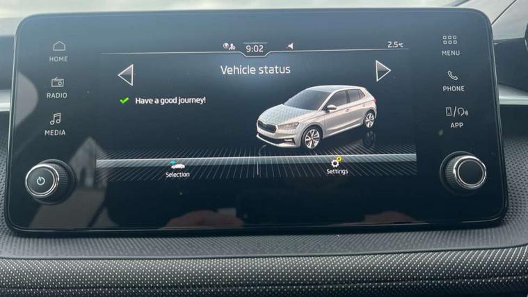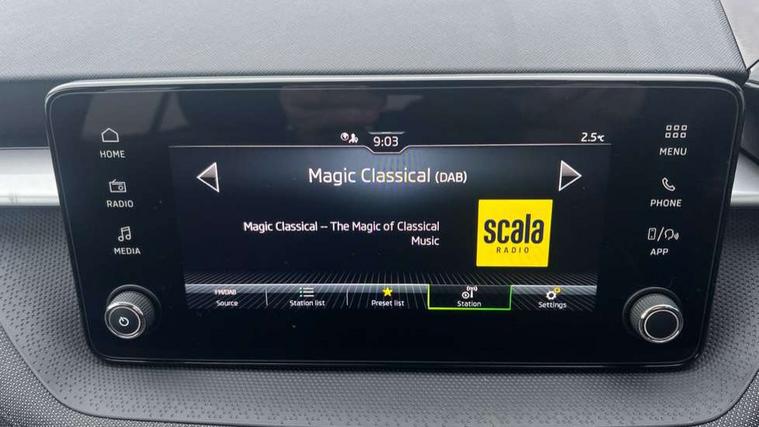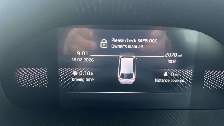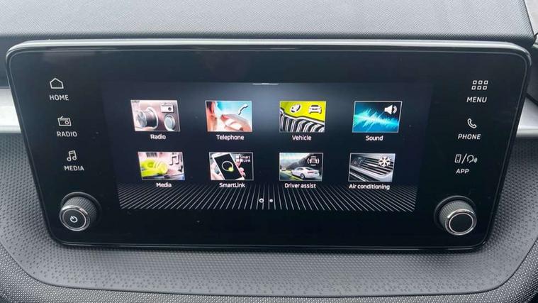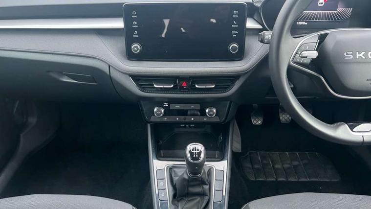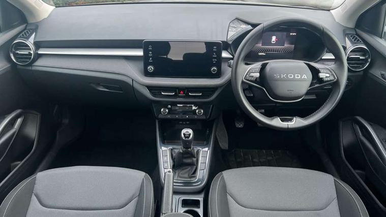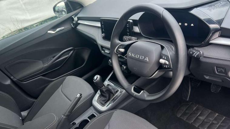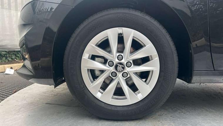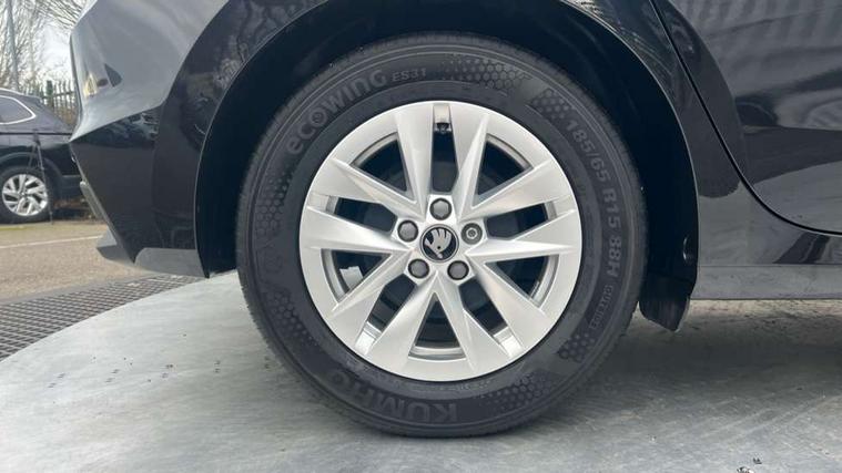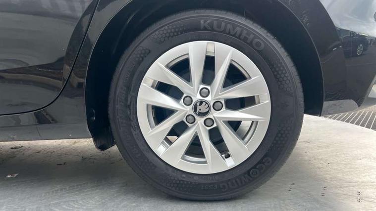 8" Digital instrument display, Advanced driver attention and drowsiness monitor, Bluetooth connection, Electromechanical power steering, Exterior temperature gauge, Service interval indicator, Traffic sign recognition, Wireless SmartLink for Apple CarPlay and Android Auto, 6 Speakers (4 in front and 2 in rear), 8.25" Skoda infotainment touchscreen display, Auxiliary socket for external MP3 player, DAB digital radio reception, Auto dimming rear view mirror, Body colour door mirrors, Body coloured bumpers, Door mirror integrated indicators, Front and rear electric windows, Front window wiper intermittent control, Headlight range control - Automatic, Ice scraper in fuel cap, LED 3rd brake light, LED daytime running lights with coming and leaving home feature, LED rear lights, Rear LED fog light, Rear side wing doors, Rear window wiper with washing nozzles, Roof mounted spoiler, SKODA tailgate lettering in chrome, Unique dark chrome design logo on alloy wheels, 2 reading lights in front and 2 reading lights in rear, 3 rear headrests, Backrest split and folding, Central console with removable cup holder and storage box, Chrome handbrake release button, Dual zone air conditioning with climatronic electronic control, Fabric upholstery, Front centre armrest, Gearshift knob/handle in leather, Grain satin black interior door handles, Hand brake lever handle in leather, Height adjustable front headrests, Height adjustable front seats, Height adjustable steering wheel, ISOFIX and TopTether anchorage points to the outer rear seats, ISOFIX and TopTether on the front passenger seat, Luggage compartment lighting, Manually adjustable lumbar support in front seats, Pollen filter, Rear seat bench unsplit, Single front passenger seat, Skoda lettering on steering wheel, Storm grey headlining, Sun visors with mirror and airbag label on passenger side, Textile floor mats, Ticket holder, Umbrella in drivers door, 3-point height adjustable front seats belts with pretensioner and force limiter, Automatic warning lights in case of crash, Driver and passengers airbag with switch off function, e-Call+, ESC including ABS, MSR, ASR, EDS, HBA and XDS, Front and rear seat belt warning, FRONT ASSIST (AEB City and AEB Inter Urban), Front side airbags, Head airbags, One tone horn, Pedestrian protection, Three rear 3-points safety seat belts with pretensioner and force limiter including stop function for outer rear seat belts, Tyre pressure monitoring system, Anti-theft alarm system including immobiliser, interior monitoring, backup horn, and towing protection, Central locking with radio remote control, interior controls, SAFE function and 2 foldable keys, Black painted air vents, Grain satin black central console cover, Metallic grey upper decorative trim, Satin black door and side trim panel in front, Textile Kota grey lower decorative inserts, Anti-theft wheel bolts protection, Super-low rolling resistance tyres,