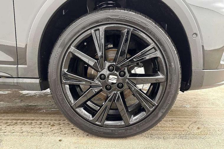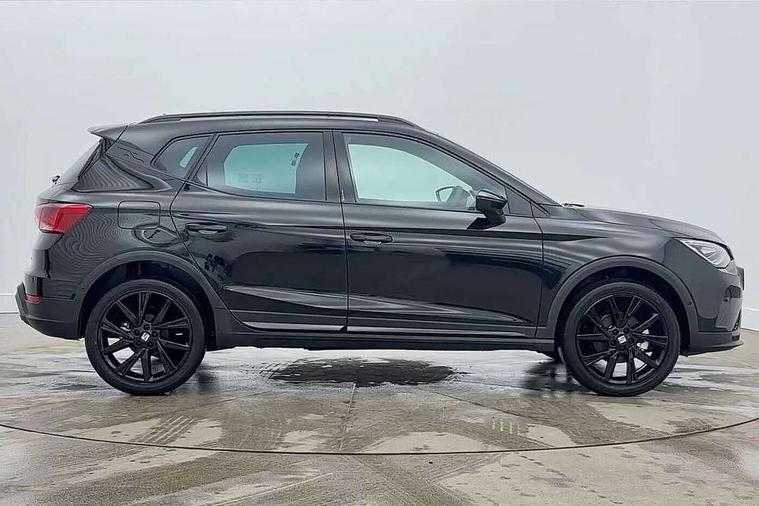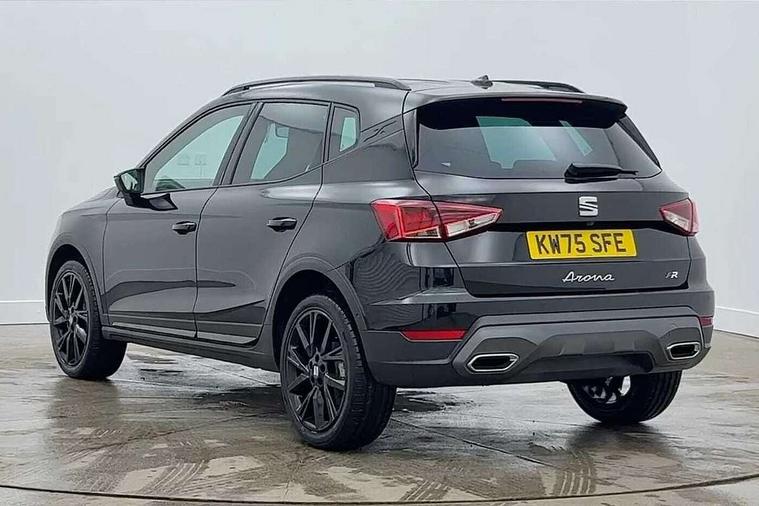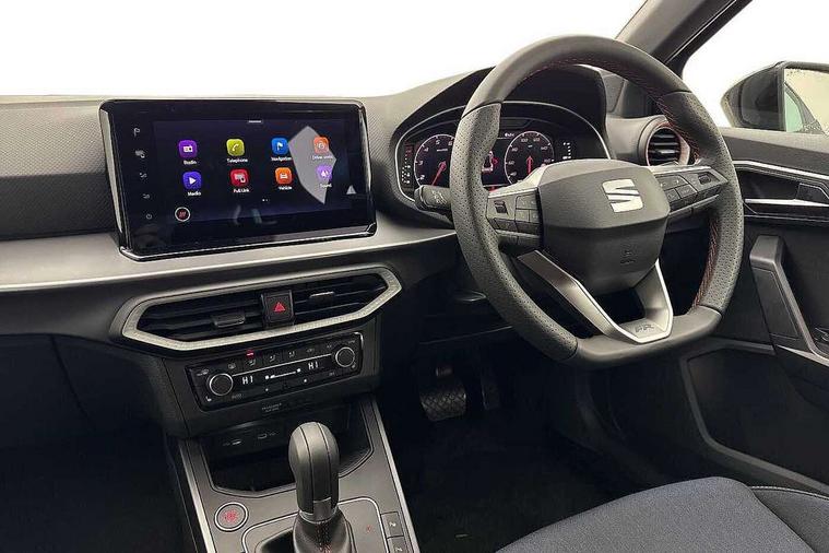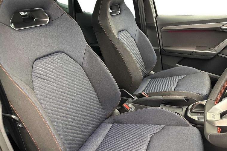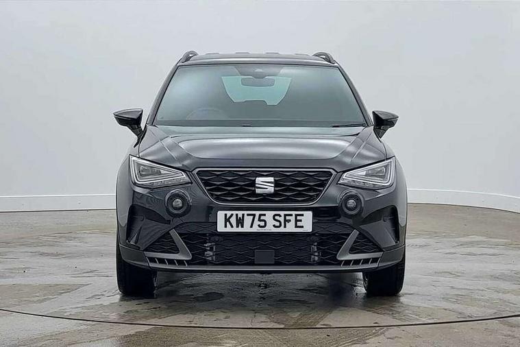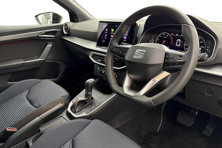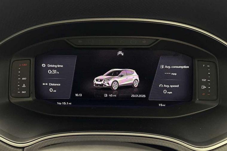 'Lights On' Reminder warning buzzer, 10" Digital cockpit, Digital clock, E-call, Electric speed sensitive power steering, Full link smartphone integration with mirror link, wireless apple carplay, Google android auto + USB Type C cable for apple and android devices, Lane keeping system, Low fuel warning light, Outside temperature display, Park assist system, Rear view camera, RPM counter, SEAT Drive profile - Four different models normal-sport-eco-individual, steering response, throttle response and gear shifts mode, Trip computer, Wireless phone charger, 9.2" colour touchscreen with navigation system, voice control and USB port (type c), Bluetooth interface for hands free and audio streaming, DAB digital radio and AM/FM radio, Steering wheel mounted audio controls, Anti theft roof antenna, Auto dimming interior rear view mirror, Automatic activation of hazard warning lights, Black roof rails and window surrounds, Black side skirts, Body coloured bumpers, Body coloured door handle inserts, Dark tinted rear windows, Electric front/rear windows, Electrically adjustable, heated and folding door mirrors, Front fog lights with cornering function and rear fog light, FULL LED automatic headlights with dynamic headlight range control, coming and leaving home, LED daytime running lights, Lasered lettering on B pillar, LED rear tail lights and licence plate lights, Protective side mouldings, Rain sensing wipers, Rear side wing doors, Rear spoiler, Rear window wash/wipe, Roof colour door mirrors, Third brake light, Twin exhaust pipe styling hidden exhaust pipe, Visible VIN plate, 2 cupholders, 3 seat bench in 2nd row, 60/40 split folding rear seat, Aircare filter, Black interior roof, Double boot floor, Driver sunvisor with covered mirror + card holder, Dual zone climate control, Front courtesy light with front reading lights, Front seat back storage pockets, Gear shift indicator, Grey interior air vents, Heated front seats, Height adjustable front seats, Height/reach adjustable steering column, Illuminated air vent surrounds, Illuminated boot, Instrument lighting with brightness control, Interior ambient lighting, Interior light in footwell, central console and door panel, ISOFIX points in outer rear seats with top tether anchorage points, Microsuede cloth upholstery, Passenger sunvisor with vanity mirror, Perforated flat bottomed leather steering wheel/gear knob/handbrake with red stitching and FR logo, Potentiometer, Single front passenger seat, Sports cloth bucket seats, Steering wheel mounted gearshift paddles, Two front and three rear height adjustable headrests, Interior chrome pack - Arona, Safe and driving pack (S) - Arona, Safety and driving pack (M) - Arona, ABS, Active front headrests, Child locks on rear doors, Driver and front passenger airbags with front passenger airbag de activation, front side and curtain airbags, Emergency Brake Assist (EBA) and front assist, Front and rear seatbelt reminder, Hill hold control, Multi-Collision braking, Tiredness recognition system, Traction control, Tyre pressure monitoring system, Alarm with back up horn with tow away protection, Deadlock, Electronic engine immobiliser, KESSY Keyless entry and go, Locking wheel bolts, Remote central locking, Titan black dashboard, 18" Black alloy wheels,