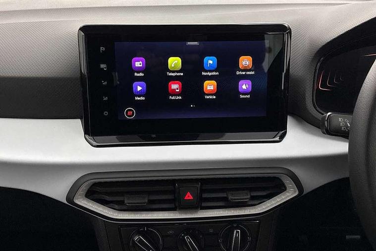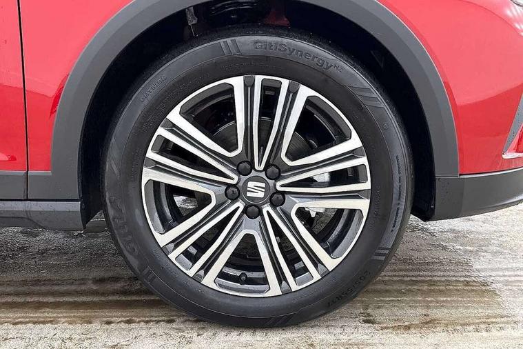 'Lights On' Reminder warning buzzer, 8" Digital cockpit, Cruise control and speed limiter, Digital clock, E-call, Electric speed sensitive power steering, Full link smartphone integration with mirror link, wireless apple carplay, Google android auto + USB Type C cable for apple and android devices, Lane keeping system, Low fuel warning light, Outside temperature display, RPM counter, Trip computer, Wireless phone charger, 9.2" colour touchscreen with navigation system, voice control and USB port (type c), Bluetooth interface for hands free and audio streaming, DAB digital radio and AM/FM radio, Steering wheel mounted audio controls, Anti theft roof antenna, Automatic activation of hazard warning lights, Black roof rails and window surrounds, Body coloured bumpers, Body coloured door handle inserts, Body coloured door mirrors, Dimming rear view mirror, ECO LED automatic headlights and LED daytime running lights, Electric adjustable door mirrors, Electric front/rear windows, Hidden exhaust pipe, LED rear tail lights and licence plate lights, Licence plate lights, Protective side mouldings, Rain sensing wipers, Rear fog lights, Rear side wing doors, Rear spoiler, Rear window wash/wipe, Third brake light, Visible VIN plate, 2 cupholders, 3 seat bench in 2nd row, 60/40 split folding rear seat, Air conditioning, Cloth upholstery, Double boot floor, Driver sunvisor with covered mirror + card holder, Dust/pollen filter, Gear shift indicator, Grey interior air vents, Grey interior roof, Height adjustable front seats, Height/reach adjustable steering column, Illuminated boot, Instrument lighting with brightness control, ISOFIX points in outer rear seats with top tether anchorage points, Leather steering wheel/gear knob/handbrake, Passenger sunvisor with vanity mirror, Potentiometer, Single front passenger seat, Two front and three rear height adjustable headrests, Interior chrome pack - Arona, Safe and driving pack (S) - Arona, 3 point seatbelts on all rear seats, ABS, Active front headrests, Child locks on rear doors, Driver and front passenger airbags with front passenger airbag de activation, front side and curtain airbags, Emergency Brake Assist (EBA) and front assist, Forward collision warning and autonomous emergency braking, Front and rear seatbelt reminder, Hill hold control, Multi-Collision braking, Tiredness recognition system, Traction control, Tyre pressure monitoring system, Deadlock, Electronic engine immobiliser, Locking wheel bolts, Remote central locking, Titan black dashboard, 17" Dynamic machined alloy wheels,