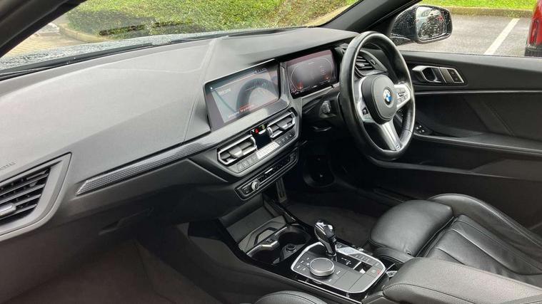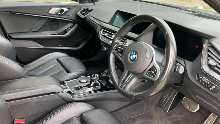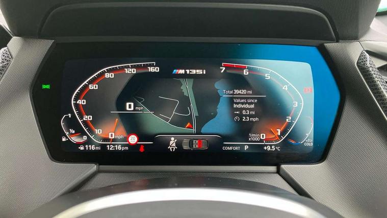 Active guard plus, Attentiveness assist, Bluetooth / WiFi interface for wireless connection of mobile terminal devices and audio streaming, BMW ConnectedDrive online services, BMW Teleservices, Check Control warning system for monitoring of lights and door/luggage compartment open warning, Eco pro mode, Electro hydraulically controlled multi-plate clutch transfers drive to rear axle and with power take-off device located on the front differential., Energy efficient operating strategy, Front axle single joint with specific axle kinematics to minimise drive influences on steering + provide increased rigidity agile driving behaviour, Gearshift time display in manual mode, Integrated owners handbook, M Sports steering with M135i xDrive specific settings, Oil sensor for level and grade, On board computer, Optimum shift indicator, Personal Profile, Pull away assistant, Rigidly mounted rear subframe - Multi link construction with separate spring / damper configuration and excellent driving characteristics, Speed limit Info including no-overtaking indicator, Sporty fast gear shifting in sport mode, Aluminium lightweight construction, Anti roll bar front and rear, Balancer shaft, Double VANOS, Drive Performance Control, Eight speed sport automatic transmission with gearshift paddle switches, Electronic differential lock, Electronic selector lever, Engine cover with M performance designation, High precision injection, Larger fuel tank capacity (50 litres), Launch control, M135i specific heavily de-throttled engine intake air guide, M135i specific high-performance cooling package, M135i specific larger turbocharger with integrated divert-air valve, Petrol Particulate Filter, Twin tube gas filled shock absorbers with degressive characteristic curve, VALVETRONIC engine management, Variable, stepless and infinitely adjustable distribution of drive torque between the front and rear axles, DAB Digital radio, Stereo speaker system with 2 mid range speakers in the front door trims and rear parcel shelf + 2 central bass speakers underneath the front seats, Auto dimming rear view mirror, Automatic headlight beam throw control, Automatic windscreen wipers and automatic headlight, Body colour door handles, Body colour roof trims, Cerium grey exterior mirror caps, Direction indicator side lights in exterior mirrors, Fading support, Folding side mirrors with auto dimming/folding wing mirrors with auto dimming, Follow me home headlights, Front and rear bumper system with replaceable deformation elements, Front and rear electric windows with open and close fingertip control, anti trap facility and comfort closing, Front door sill finishers with M135i designation, Green tinted heat protection glazing, Heated, electrically adjustable exterior mirror aspheric on driver side, convex on passenger side, High gloss shadowline window frame, Recess cover mirror frames and B/C pillar embelisher trim, High level third brake light, Integrated front windscreen with washer jets, Kidney grille frame in Cerium Grey with Mesh design, LED daytime running lights, LED eyebrow turn indicators, LED front fog lights, Lightweight engineering, M logo designation side in cerium grey, M Performance exhaust system with valve control and minimised exhaust back pressure, M Performance specific setup, M Sport spoiler, Matt black air guide grilles, Matt black wheel arch trim, Model designation on electric bootlid includes xDrive designation for M135i xDrive, Nearside reverse light in rear light cluster, Preparation for high beam assistant, Rear fog lights, Rear window wiper, Reinforced crank drive, new pistons and adapted con rods, Round exhaust system with twin cerium grey tailpipes in left and right split, Shark fin antenna, Trailer stabilisation logic, Visible VIN plate, Welcome lighting, xDrive intelligent all wheel drive with M135i specific reinforced components, 12V power socket in front centre console with blanking plug, 3 rear seat head restraints, 3 spoke sports leather steering wheel with black leather and stitching, pearl chrome decorative finish, specific M Badge, Anthracite headlining, Child seat ISOFIX attachment for two outer rear seats and front passenger seat with anchorage points, Conditioned based service, Driver and front passenger seat heating, Floor mats in anthracite velour with contrasting colour seam to match contrast stitching on instrument panel, Folding rear clothes hook, Four grab handles integrated in roof lining, Front and rear door pockets with bottle holders, Front and rear side armrest integrated into door trim, Front armrest, Front M sports seats, Glove compartment, Height adjustable front head restraints, Luggage compartment for bag hooks on left and right, foldable luggage compartment liner and two lashing eyelets, Manual adjust steering wheel, Multi-function controls for steering wheel, Storage compartment in centre console, Sun visors with vanity mirrors and insert tab, Two front centre console cupholders, Two zone automatic air conditioning, Additional interior lighting pack - 1 Series M135i, Additional storage compartment pack - 1 Series, Additional storage compartment pack with code 493 -1 series, BMW live cockpit professional pack- 1 Series, Connected pack professional - 1 Series, Interior lights pack - 1 Series, M Sport exterior styling aerodynamics pack - 1 Series 135i, 2 tone horn, 3 point seatbelts on all seats, front pyrotechnic belt tensioners, stopper and belt force limiters, rear coded belt buckles, Airbags - Front driver/passenger, front and rear curtain head protection, front side, manual deactivation of front passenger airbag, Anti lock braking system (ABS) with brake assist, BMW emergency call, Brake drying, Braking readiness, Child proof locking system in rear door, Comfort modes, Cornering brake control, Crash sensor activating central locking release, hazard warning lights, fuel cut off, interior lighting + activation of safety battery terminal clamp, Driver and front passenger seat belt