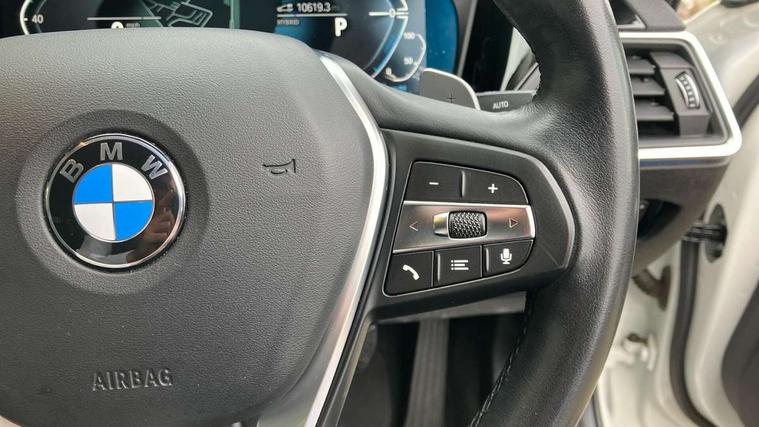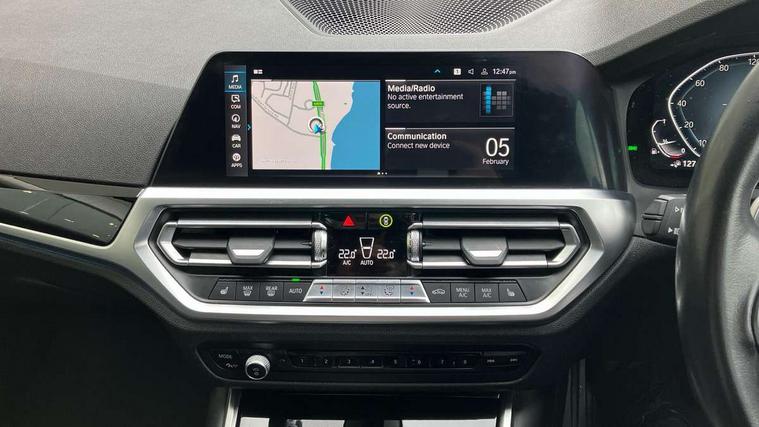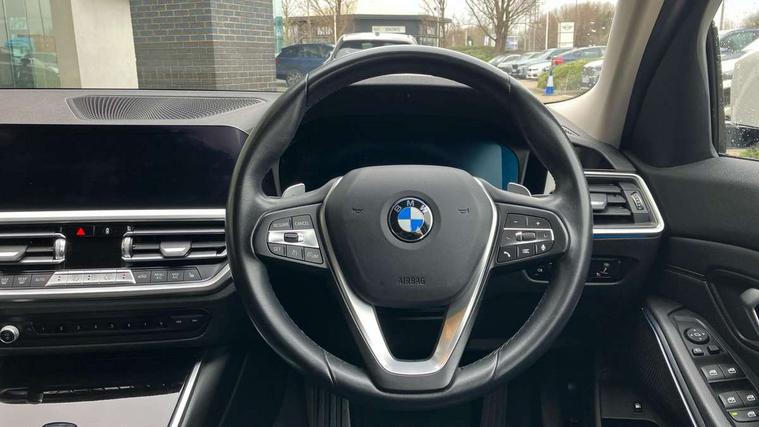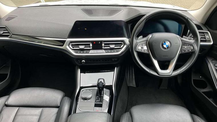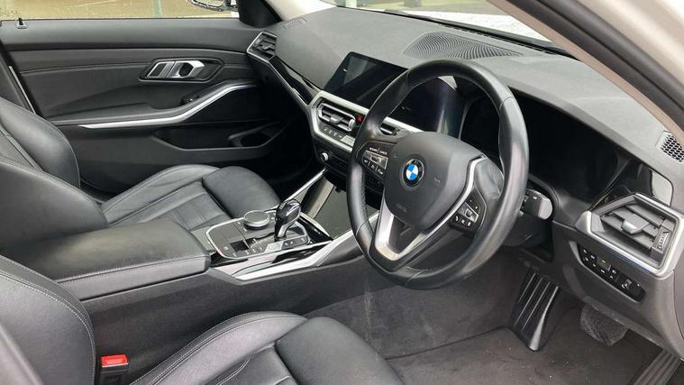 Active guard plus, Attentiveness assist, Auto start-stop, BMW Live Cockpit Professional Nav with 12.3" instrument display + 10.25" display, Intelligent Voice Assist, BMW OS 7, HDD, 2USB, 4G LTE connect, BMW service history, BMW Teleservices, Brake pad wear indicator in front and rear, Check Control warning system for monitoring of lights and door/luggage compartment open warning, Condition based service, Electric power steering with Servotronic steering optimised at all speed ranges, iDrive controller on centre console, Instrument cluster with speedometer with mph readout, tachometer, fuel gauge and oil temperature gauge, Integrated owners handbook, Oil sensor for level and grade, warning by check control system, On board computer - average speed+fuel consumption, service interval, clock/date, odometer/trip meter, outside temperature display and ice warning, Optimum shift indicator, Personal Profile - automatic lock when driving away selectable, Balanced 50/50 weight distribution, Battery cut-out switch, Drive performance control - ECO PRO, comfort and sport modes, Petrol Particulate Filter, Stroke dependent dampers, DAB tuner, Electronic service booklet, Acoustic glazing, Active airstream chrome frame kidney grille with 8 high gloss black vertical slats, Automatic headlight beam throw control with load dependent regulating reaction, dynamic compensation of braking dive and acceleration squat, Body colour door handles, Body colour front and rear bumpers, Body colour fuel filler flap, Body colour mirror caps with bottom segment in matt black, Body colour roof mouldings, Brushed aluminium inserts in the front door sill finishers with BMW designation, Dynamic brake lights, Electric windows - front and rear, with open/close fingertip control, anti-trap facility and comfort closing, Exhaust tailpipe - split left and right, Exterior mirrors - electrically folding with anti-dazzle, Fading support, Front and rear bumper system with replaceable deformation elements, Green tinted heat protection glazing, High gloss black front bumper with specific design elements, High gloss black rear bumper with specific design elements, High gloss shadow line exterior trim, Interior rear view electrochromatic mirror with automatic anti dazzle function, LED daytime running lights, LED front fog lights, Lightweight engineering, Matt black exterior B pillar, Model designation on right side of tailgate, Rain sensor with automatic headlight activation, Shark fin antenna, T-shaped design element right and left in black high gloss, Two part LED tailights in L-shape with components in smoked glass, brake light, LED turn indicator and rear fog light, Visible VIN plate, Welcome lights in interior and door handle area, Windscreen wipers with integrated washing jets, 12V power socket in front storage compartment, 2 front cupholder in centre console with clamping elements and matt black inlay, 3 rear seats with non folding headrests with 3 point seat belts, 3 zone automatic air conditioning, 4 pieces lashing eyelets in luggage compartment, 40:20:40 split folding rear seat with loading system, Ambient lighting with welcome carpet light, Armrest integrated in front and rear door trim + front centre console armrest, Centred top Luggage compartment lights, Four grab handles integrated in roof lining, Front and rear door exit lighting (left / right), Front and rear door pockets, Front and rear reading lights, Front and rear velour floor mats, Front head restraints, Front sport seats, Heated driver and front passenger seats, Height adjustable mechanically and infinitely variable steering column, Illuminated armrest storage compartment, Illuminated glove compartment with separate small compartment, Interior lighting - front centre over interior mirror with soft light, rear centre and front and rear footwell lighting, Make-up mirror lights, Rear centre armrest with 2 cupholders, Rear centre console with storage compartment and ventilation grille, Sunvisors with vanity mirrors and ticket pocket, Three spoke multifunction sport leather steering wheel, Toolkit located in luggage compartment, Vernasca leather upholstery, Connected pack professional - 3 Series Saloon/Touring, 2 tone horn, BMW emergency call, Brake energy regeneration, Braking pre-tensioning, Child proof locking system in rear door, Child seat ISOFIX attachment rear outer seats, Coasting in idle in ECO PRO mode, Crash sensor activating of airbags, Unlocking doors, hazard warning lights, fuel cut off, interior lighting+activation of safety battery terminal clamp, Driver and front passenger side airbags, integrated in the door side seat backrest bolsters for all seat variants, Driver/Front Passenger airbags, Dry braking, Dynamic brake control, Dynamic stability control + (DSC+) - Anti-lock Braking System (ABS) with brake assist and cornering brake control + Automatic Stability Control (ASC), Dynamic Traction Control - DTC, Electromechanical parking brake including automatic hold function and automatic release of the parking brake when pulling away, Electronic differential lock control (EDLC), Front passenger manual airbag deactivation, Head airbags for all 4 outer seats, Hill start assist, Seat belt security check for driver and front passenger, Side impact protection, Three 3 point seat belts on all seats including front belt stopper, pyrotechnic belt tensioners and belt force limiters, Tyre pressure monitoring with three level warning strategy, Ventilated front and rear disc brakes, Warning triangle and first aid kit, Alarm system (Thatcham 1) with remote control and electronic engine immobiliser, Central locking switch for all doors, fuel filler cap and luggage compartment, Remote control with integrated key one button open/close vehicle and windows, sole opening of the luggage compartment lid and panic mode, Start/stop button with Comfort Go keyless engine start and auto Start/stop deactivation button, Reduced rolling resistance tyres,