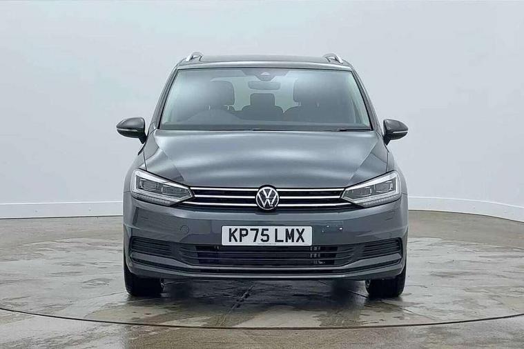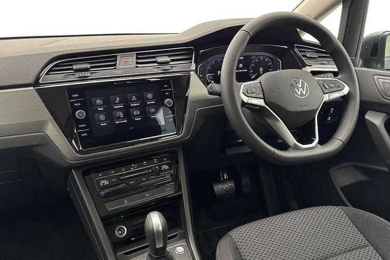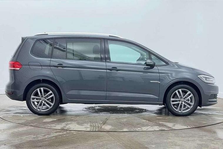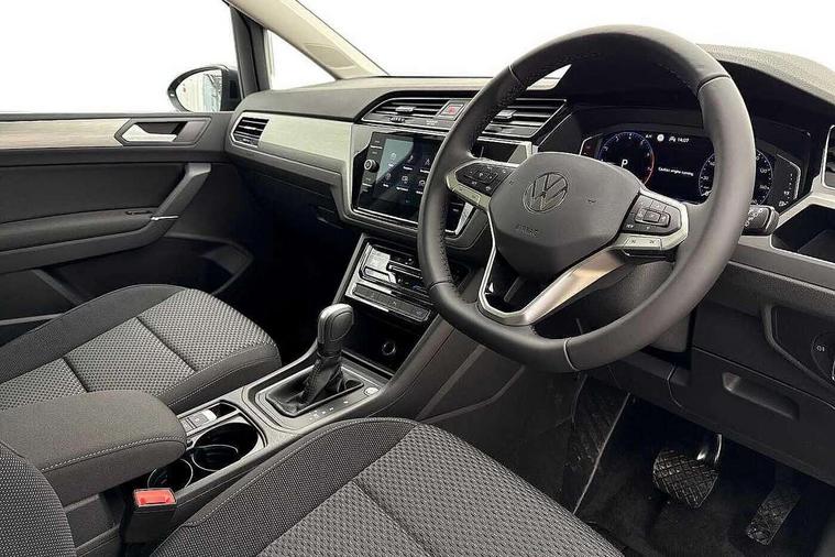 Adaptive cruise control, Audible lights on warning, Discover media navigation touchscreen navigation/radio system with streaming and internet, Driver alert system, Driver profile selection, Dynamic road sign display, Electric tailgate, Electronic odometer, Emergency services call system, Extended, crash-active and proactive Pedestrian and cyclist monitoring, External temperature gauge, Front parking sensors, Lane change system side assist and rear traffic alert, Lane keep assist, Misfuelling protection device, Mobile pairing with SMS function, Mobile phone interface with inductive charging, Rear view camera displayed via vehicles audio system display, Rev counter with fuel gauge, Side scan, Speed limiter, Speed sensitive power steering, Stop/start system, Think blue trainer driver tips and journey analysis, Trip and service interval display, We connect' and 'We connect plus' functionality, Petrol Particulate Filter, Rear stabiliser bar, XDS electronic differential lock, 4x20 watt output, 8 Speakers, Audio Connectivity System, DAB Digital radio, External USB-C data socket with increased charging performance - 2 USB sockets 45W, MP3/WMA compatability, SD card slot, Title and cover art display, USB connection, Aerial integrated into side window, Auto dimming door mirrors, on driver side, surround lighting and front passenger side mirror lowering function, Auto dimming rear view mirror, Automatic coming/leaving home lighting function, Body colour bumpers, Body colour door handles, Body colour door mirrors with integral indicators, Door mirrors with memory function, Dusk sensor + auto driving lights, Electric folding door mirrors, Electric heated + adjustable door mirrors, Electric, glass sliding/tilting panoramic sunroof including integrated roller blind and LED lighting around aperture, Front and rear electric windows, Fully galvanised body, Gloss black finish B pillar, Green tinted heat insulating glass, High level third brake light, Rain sensor, Rear fog lights, Rear side wing doors, Rear tinted glass from B-pillar backwards approx 65% tinted, Rear wash/wipe with intermittent wipe setting, Removable engine badge, Silver roof rails, Tailgate wiper- reverse gear activation, Twin chrome exhaust tailpipes, Volkswagen roundel, Windscreen wipers intermittent wipe, 12V power point for Row 2, 12V socket in luggage compartment, 2 individual fold flat 3rd row seats, 2 three point seatbelts in 3rd row, 2nd row centre armrest, 2nd row centre seat converts into table, 3 single slide/fold/removable 2nd row seats, 3 spoke steering wheel, 3x3 point seatbelts on 2nd row with height adjust on outer seats, 4 boot load lashing points, 4 way adjustable front head restraints, 5 headrests, Activated charcoal canister for intensified evaporation system, Air care climatronic 3 zone air conditioning system with rear air conditioning control panel, Chrome plated radiator grille inserts, air vent surrounds and light switch surrounds, Driver and front passenger under seat drawer, Dust/pollen filters, Foldable front passenger seat backrest with load through function, Front and rear reading lights X 2, Front centre armrest with storage compartment, Front comfort seats with lumbar support, Front cupholders x 2, Front passenger seat height adjust, Front seat storage pockets, Front seatback folding tables, Height adjustable driver's seat, Height/reach adjust steering wheel, Illuminated glovebox, Instrument lighting white adjustable panel illumination with red night time illumination, Interior light with delay, Isofix on 2nd row outer seats, Isofix on 3rd row seats, Large storage compartment in roof console, Lasano cloth upholstery, Leather multifunction steering wheel with gear knob, Leatherette on rear of front seats, Low tunnel 2nd row seat, Luggage compartment lighting, Media box in dashboard on passenger side, Multi storage in passenger/luggage areas, Multi-function centre console with storage facilities, Retractable luggage cover, Split folding rear seat backrests, Storage bins on all doors, Sun visors with illuminated vanity mirrors, Family Pack - Touran, Winter pack without heated washer jet - Touran, 3 point height adjustable front seatbelts, Auto hold function, Automatic post collision braking system, Door open warning reflectors, Driver/Front Passenger airbags, Drivers knee airbag, EDL + ASR, Electronic parking brake, Energy recovery system, ESC with ABS, First aid kit, Front and rear (row 2) curtain airbags, Front assist with autonomous emergency braking, Front seat side impact airbags, Front seatbelt pretensioners, Front/rear disc brakes, Hill hold control, Hydraulic Brake Assist (HBA), Loose wheel warning function, Manual passenger airbag deactivation function, Pre crash preventive occupant protection, Proactive passenger protection system with front and side assist, Rear child proof door locks, Road sign recognition, Seatbelt warning lamp and buzzer, Traction control, Two tone horn, Warning triangle, Alarm with remote central locking and interior protection, Electronic engine immobiliser, Keyless Access Keyless locking and starting system with SAFELOCK, New brushed design decorative inserts in dash and front doors, 17" Salvador alloy wheels with anti-theft wheel bolts, 215/55 R17 self sealing tyres with low rolling resistance,