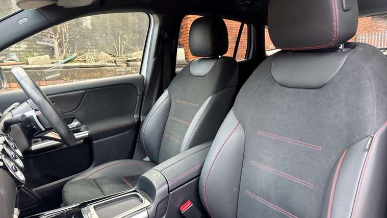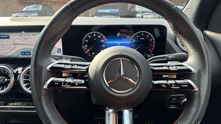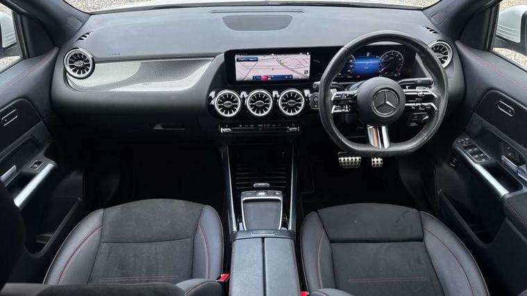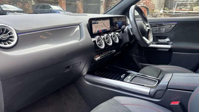 10.25 inch touchscreen central media display, 10.25" Digital instrument cluster display screen, Attention assist, Direct steering, DYNAMIC SELECT with a choice of driving modes (ECO, Comfort, Sport and Individual), ECO start/stop function, Fluid level warning indicator for fuel, oil, coolant and washer fluid, Hard-disk navigation, Hey Mercedes Voice activation, Lamp failure indicator, Lane keeping assist (LKA), Mercedes me connect including emergency call system, accident recovery, breakdown and maintenance management, Mercedes me remote services, Multi function trip computer, Outside temperature gauge, Owners manual and service booklet in English, Pre-installation of private car share, Radio aerial integrated into front and rear windshields, Service indicator (ASSYST), Smartphone integration with Apple CarPlay and Android auto, Speed limit assist, Status display for rear seat belts in instrument cluster, Wireless charging, Lowered comfort suspension, Rear axle multi-link, Bluetooth connectivity including audio streaming, DAB Digital radio, MBUX multimedia system, Media interface, Mercedes-Benz sound system - 100W, Pre installation for Mercedes Benz Link, Adaptive brake lights, Adaptive highbeam assist, Aerial for GPS, Aluminium roof rails, AMG front apron with front splitter in the colour of the vehicle with chrome trim element, AMG rear apron with visible tailpipe trim and chrome trim element, AMG specific/dual flow exhaust pipes in chrome (non-functional), Automatic headlamp activation, Beltline trim and window line trim strip in high gloss aluminium, Black grained side sill trim with chrome inlay, Body coloured door handles with chrome insert for keyless entry, Car wash function, Dark privacy glass from B-pillar backwards, Electric front windows, Electric rear windows, Electrically adjustable and heated door mirrors with integrated LED indicators, Exhaust system with 2 Visible tailpipe trim elements and rear apron with trim in chrome, Heat insulating dark tinted glass, Heated glass rear windscreen + timer control, Heated windscreen wash system, Interior mirror with black reading lamps and frameless, LED high performance headlamps with integrated LED daytime running lights, LED tail lights, LED third brake light, Radiator diamond grille with chrome pins and central Mercedes star, single louvre in matt grey with chrome inserts and black highlights, Rain sensor windscreen wipers, Rear fog lights, Rear side wing doors, Rear wiper, Roof spoiler, Wheel arch liners in the colour of the vehicle, 12V power socket in centre console, 3 seat bench in 2nd row, 3 spoke flat bottom multifunction nappa leather steering wheel, 4 way lumbar support, 40:20:40 split folding rear seat backrests, Adjustable head restraints, Air conditioning - air vents with silver chrome surround, Air conditioning - One zone THERMATIC automatic climate control with automatically controlled air distribution, AMG floor mats, Auto Mercedes-Benz child seat recognition sensor, Black roof lining, Courtesy light in boot, Front centre armrest with stowage, Galvanished gear shift paddles on steering wheel in silver chrome, Heated front seats, Illuminated glovebox, Interior lighting - 64 colour Ambient lighting, Luggage net on driver/front passenger seat backrest, Manually height and reach adjustable steering column, Single front passenger seat, Sports pedals in brushed stainless steel with black rubber studs, Sports seats, Sports steering wheel, Stowage compartment in centre console, Stowage compartment with retractable cover, Sunvisors with illuminated vanity mirrors, Twin front cup holders, Two outer rear seat isofix and top tether child seat fixing points, Comfort seat pack - GLA Class, Interior lighting with light and sight pack - GLA, Keyless go comfort package - GLA, Mirror pack - GLA Class, Parking package with reversing camera - GLA, USB package plus - GLA, 3 rear 3 point seatbelts, ABS with Brake Assist, Active bonnet pedestrain safety measure which detects an impact and raises bonnet by 65mm, Active brake assist includes forward collision warning system with autonomous braking, Adaptive brake assist with hold function and hill start assist, Black seatbelts, Bonnet with power domes, Brake pad wear warning indicator, Childproof locks manually operated for rear doors and electrically operated for rear power windows, Crash responsive emergency lighting, Driver and passenger head and side airbags, Drivers knee airbag, Dual stage driver/passenger airbags, Electronic parking brake, ESP curve dynamic assist, ESP with ASR, Front and rear seatbelt reminder, Front brake callipers with Mercedes Benz logo lettering on front, Front brake discs internally ventilated and perforated, Front passenger seat occupancy sensor, Sports braking system, Tyre pressure monitoring system, Warning triangle and first aid kit, Window airbags, Alarm system with immobiliser and interior protection -Thatcham category 1, Guard 360 degree vehicle protection, Keyless Go starting function, Remote central locking and crash sensor with emergency opening function, Vehicle key with decorative surround in chrome, Carbon structure trim, 19" AMG 5 twin spoke light alloy wheels aerodynamically optimised and painted in tantalite grey with a high-sheen finish RTF, Summer tyres, Tirefit tyre sealant kit,