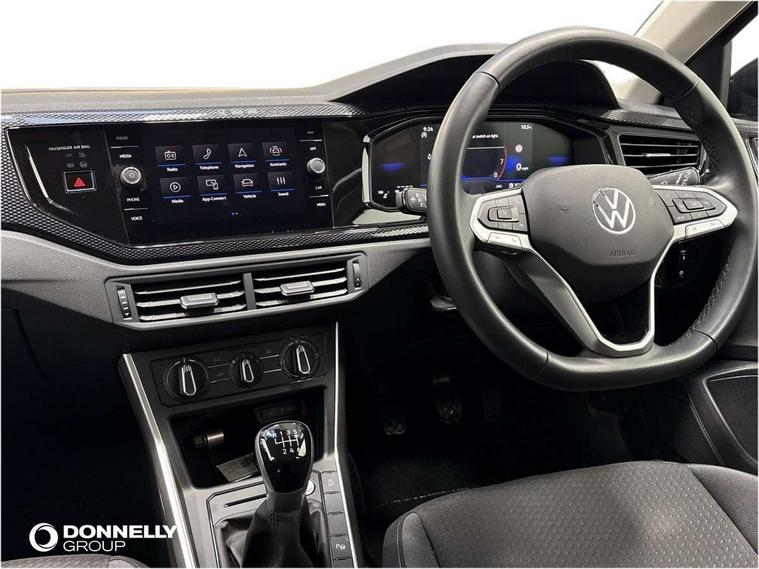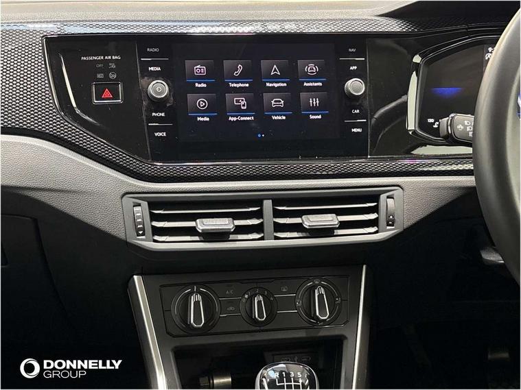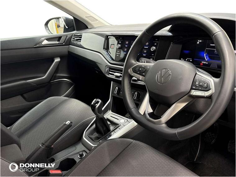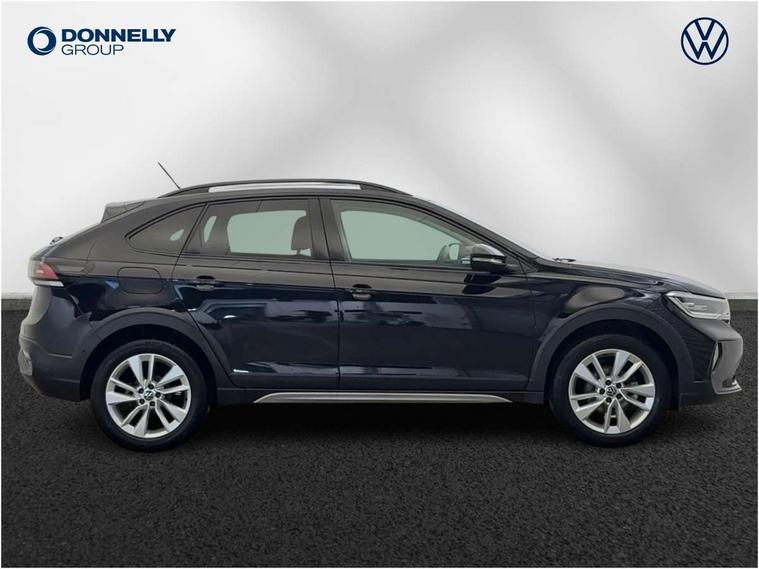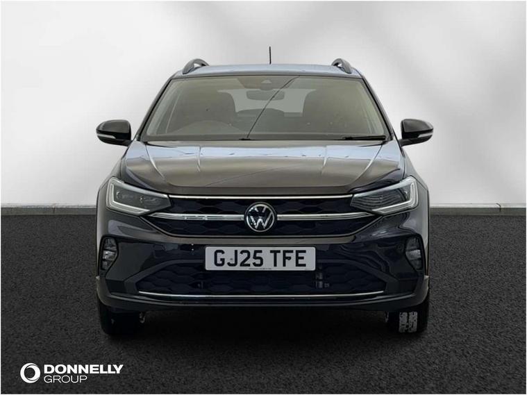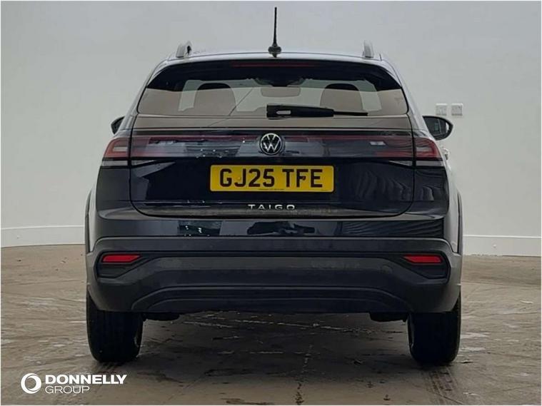 Advanced driver attention and drowsiness monitor, Dynamic road sign display, e-Call (emergency call), Power Steering, Predictive adaptive cruise control, Rear view camera, Travel assist including emergency assist, Washer fluid level indicator, Wireless Charging including Bluetooth, Start-stop system with battery regeneration (recuperation - energy recovery during braking), WeConnect plus, Ambient lighting with logo projection, Aspherical driver's exterior mirror, Body coloured bumpers, Body coloured exterior mirror housings and door handles, Electric windows, External USB type C socket and charging sockets, Heat insulating glass windscreen, LED rear combination lamp, LED third brake light, Left convex exterior mirror, Power folding adjustable/heated exterior mirrors and front passenger exterior mirror lowering function, Rear fog light on one side, reversing light on both sides, Rear side wing doors, Rear wash/wipe with intermittent wipe setting, Side windows in heat-insulating glass, from B-pillar and rear window dark tinted, 'Slash/ Austin' Cloth upholstery, 12V socket in centre console, 2 front reading lights, 3 rear head restraints, 3 seat bench in 2nd row, Black carpets, Ceramique headliner, Child seat anchor for child seat system i-Size, 2x top tether and child seat anchor in front on front passenger side, Door and side trim panels in titan black, Driver and front passenger seat height adjustment, Front centre armrest, Handbrake lever handle in leather, Height and reach adjustable steering wheel, Leather trimmed gear knob, Leather wrapped multifunction steering wheel, Luggage compartment floor, Luggage compartment light, Lumbar support for driver's and front passengers seat, Seat covers in titanium black, Single front passenger seat, Split folding backrest with centre armrest and unsplit rear seat bench, Storage compartment under front seats, Sun visors with illuminated vanity mirrors, Titanium black instrument panel, Chrome Package - Taigo, Drivers assistance package - Taigo, Light and sight pack - Taigo, 2 x 3-point seatbelts/outer rear seats with ECE label, 3-point seat belts in front with pretensioner and height adjustment, 3-point seatbelt for centre rear seat, Driver and front passenger airbag with front passenger airbag deactivation, Driver and front passenger safety-optimised head restraints, Electronic stability control, Extended and predictive pedestrian/ cyclist protection, Front and rear disc brakes, Front curtain and side airbags with center airbag, Hill start assist, Manual rear child locks, Single tone horn, Tyre pressure loss indicator, Anti-theft alarm system with interior monitoring, backup horn, and towing protection, Keyless locking and starting system keyless access with safelock, Black (slush) Dashboard, Lava stone black gloss/matt decorative inserts in dash and front door panels, Low rolling resistance tyres,