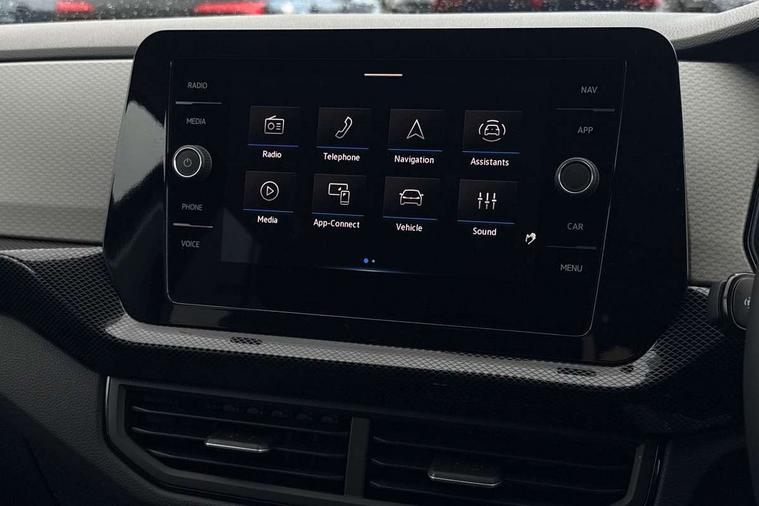 'Lights On' Reminder warning buzzer, 8" Digital cockpit, Advanced driver attention and drowsiness monitor, Bluetooth telephone and audio connection for compatible devices, Car information display, Dynamic road sign display, E-Sim card for online connectivity, eCall emergency call system, Front and rear parking sensors, Front assist, forward collision warning, autonomous emergency braking and speed limiter, Low washer fluid warning light, Multifunction computer with visual gear change recommendation for fuel consumption, Multifunction front facing camera for distance control, Operating permit alteration, Power assisted steering, Predictive adaptive cruise control, Preparation for navigation system with media and internet package, Preparation for We connect and We connect plus, Rear view camera, Semi-automated driving assistance, travel assist including lane keeping system Lane Assist and emergency assisst, Side assist, Speedo, rev counter, electronic odometer, trip, service interval display, exterior temperature and fuel gauge, Warning sound and light for doors and tailgate open, Warning sound and light for front seatbelts unfastened, Wireless Car net app connect with Apple CarPlay, combined functionality of Apple CarPlay/Android Auto and MirrorLink, Wireless charging, Misfuel prevention device, Start-stop system with battery regeneration (recuperation - energy recovery during braking), 2 USB C ports in front, 2 USB charging sockets on the centre console in the rear charging capacity upto 45W, DAB Digital radio receiver, Diversity antenna for FM reception, Multi device interface (MDI) with USB connection, Music playback - MP3, WMA and AAC files, Radio, Automatic dimming interior rear view mirror, Automatic hazard lights activation under emergency braking, Automatic headlight control with LED separate daytime running light and coming home and leaving home feature, Body colour door handles, Body colour door mirrors, Body coloured bumpers, Dynamic headlight range control with self adjusting whilst driving, Electric folding door mirror, adjustable, heated with front passenger exterior mirror lowering function, Exterior mirrors convex on the left and aspherical on the right, Front and rear electric windows, Galvanised body, Heat insulating and laminated safety glass windshield, Heat insulating darkened glass in side and rear windows, High Beam Assist, automatic sensing for switching between dipped and main beam, LED rear combination lights, LED third brake light, Lower door sills and door pillars in black, Rain sensor, Rear fog light on one side, reversing light on both sides, Rear side wing doors, Rear window aerial, Rear window wiper with intermittent control, Reflectors in all doors, Scuff plates, Tailgate with integrated roof spoiler, 12V Accessory socket in centre console, 3 rear head restraints, 3 seat bench in 2nd row, 60/40 split folding rear seat backrest, Ambient lighting and logo projection, Ceramique roof lining, Cloth upholstery, Door and side trim panel, Driver and front passenger sunvisor with vanity mirror, Dust and pollen filter, Front and rear reading lights X 2, Front centre armrest with storage compartment, Front seat back storage pockets, Glove compartment door with light, Heating and fresh air system with 4 stage blower, Height/reach adjust steering wheel, Instrument lighting white adjustable panel illumination, Interior light with switch off delay and dimmer, Isofix anchors for child seats on outer rear seats and front passenger seats, Leather gearshift handle, Leather wrapped multifunction steering wheel, Luggage compartment floor, Luggage compartment lighting, Manual front seats with height adjustment, Padded dashboard, Removable luggage compartment cover, Single front passenger seat, Storage compartment in drivers and front passengers door, Unsplit sliding rear seat bench, Without drawers under front seats, 3 point outer rear seat belts with ECE label, 3 Point seatbelt for centre rear seat, Anti-lock Braking System (ABS) with Hydraulic Brake Assist (HBA), Automatic post collision braking system, Disc brakes in front, Driver and front passenger safety-optimised head restraints, Drivers and Front Passengers airbags with front passengers airbag deactivation switch, Drum brakes in rear, ESC with EDL and ASR (traction control), Extended and predictive pedestrian/cyclist protection, Front and rear passenger curtain airbag system including front side airbags, Height adjustable front 3 point seatbelts + pretensioners, Hill start assist, Pre crash preventive occupant protection, Proactive passenger protection system in combination with front assist, Rear door child safety locks, Rigid safety cell with front and rear crumple zones, Single tone horn, Tyre pressure loss indicator, Volkswagen roadside assistance, Alarm with interior protection, Anti theft alarm system, Electronic engine immobiliser, Remote keyless entry using key fob including Start/Stop button on centre console with SAFELOCK, Remote tailgate unlocking using key fob, Low rolling resistance tyres,