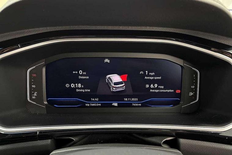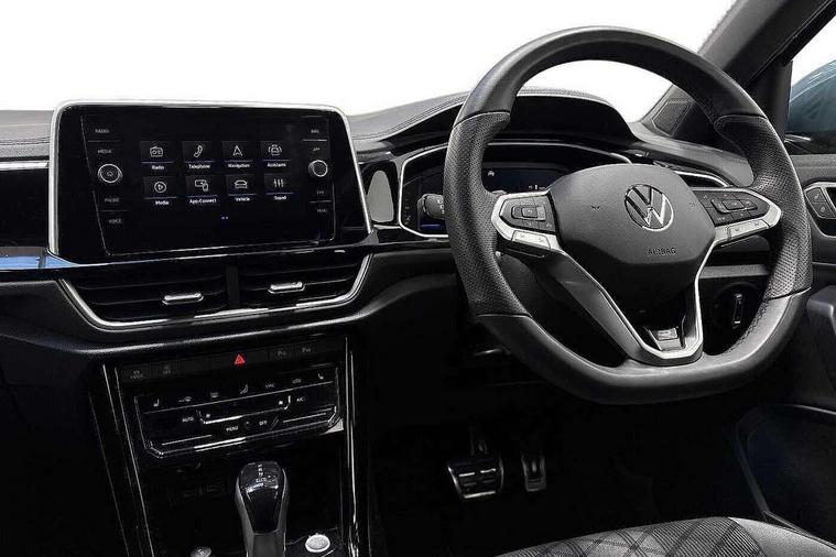 10.25" Digital cockpit pro, Advanced driver attention and drowsiness monitor, Dynamic road sign display, Emergency call service, Lane keeping system Lane Assist, Mobile phone interface, Modified key software - reduce switch off time for key status change to Long no motion, Online services, Park assist including front and rear parking sensors, Service interval indicator, Tailgate/trunk lid release from outside, Think blue trainer driver tips and journey analysis, Warning sound and light for front seatbelts unfastened, Wireless app connect, Battery regeneration during braking, Start/stop function with battery regeneration, DAB Digital radio, Diversity antenna for FM reception, Front and rear 6 speakers, Music playback - MP3, WMA and AAC files, Premium USB cable in choice of either Apple or Android smartphone compatibility, SD card slot, Simultaneous pairing of 2 compatible mobile devices, Title and cover art display, We Connect and We Connect Plus functionality, Auto dimming interior rear view mirror, Automatic hazard lights activation under emergency braking, Automatic headlight control with LED separate daytime running lights with coming/leaving home function, Body coloured exterior mirror housings and door handles, Electrically adjustable and heated door mirrors, Extended roof spoiler, Exterior mirrors aspherical on driver side, convex on front passenger side, External USB type C socket and charging sockets, Front windscreen wiper with intermittent wipe and 4 position delay, Heated rear window, LED 3rd brake light, LED rear combination lamps, LED rear number plate lights, Power windows with comfort operation and circuit breaker, Privacy glass for rear side windows and rear window, R-Line design body coloured bumpers, Rain sensor, Rear exhaust tailpipe, Rear fog light on one side and reversing lights on both sides, Rear side wing doors, Rear wash/wipe with intermittent wipe setting, Remote electrically foldable door mirrors, puddle lights and reverse activated passenger's door mirror, 12V power socket in centre console, 3 rear head restraints, 3 seat bench in 2nd row, 4 load lashing points in luggage compartment, Air care climatronic air conditoning system with active combination filter and 2-zone temperature control, Black roof lining, Chrome plated decorative trims, Chrome plated radiator grille inserts, air vent surrounds and light switch surrounds, Door and side trim panel with leatherette insert, Front + rear carpet mats, Front centre armrest, Front cupholders x 2, Front footwell illumination, Front reading light, Front scuff plates with R Line logo, Front seat back storage pockets, Glove compartment door with light, Instrument lighting, white adjustable panel illumination, Interior ambient lighting and surround lighting, Interior light delay, Isofix child seat preparation, Leather gearshift handle, Load-through provision with cup holder when folded down ('Unsplit rear seat bench, split folding backrest, with centre armrest), Luggage compartment lighting, Single front passenger seat, Stainless steel pedals, Storage compartment in left and right luggage area, Storage compartment in rear doors, Storage compartments in driver and front passenger doors, Sunvisors with illuminated vanity mirrors, Variable boot floor, height adjustable and removable, Driver assistance pack without proactive passenger protection - T-Roc, 3 point height adj front seatbelts + pretensioners, 3 point seatbelts in outer rear with ECE label, ABS, Child locks on rear doors, City emergency braking and pedestrian monitoring, Driver and front passenger airbag with front passenger airbag deactivation, Driver and front passenger safety-optimised head restraints, Drivers seatbelt reminder, Electronic parking brake, Electronic Stability Control (ESC) inc EDL (Electronic Differential Lock) and ASR (Traction Control), Front and rear passengers curtain airbag system including front side airbags, Hill start assist, Predictive pedestrian protection, Rear disc brakes, Two tone horn, Tyre pressure loss indicator, Volkswagen roadside assistance, Piano black decorative inserts in dashboard and front door trim panels, Trims for alloy wheels,