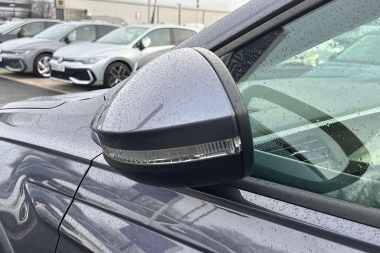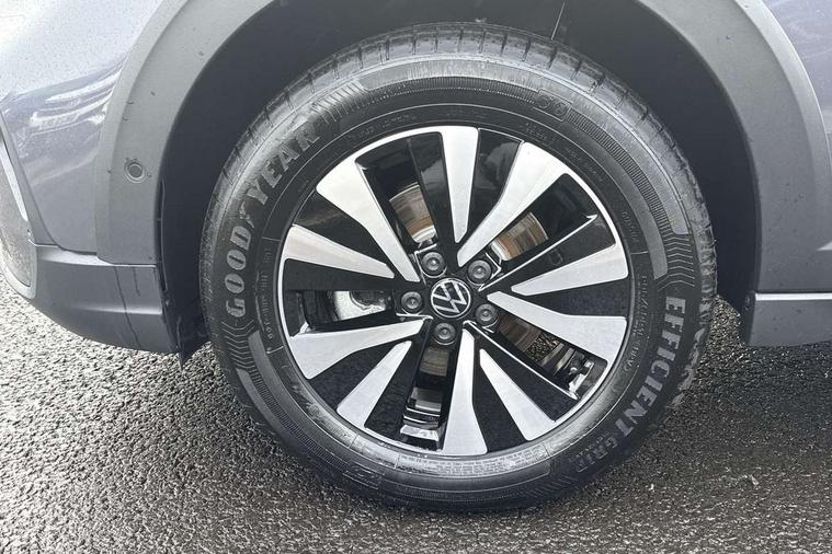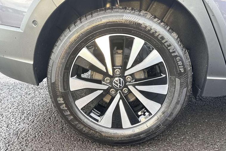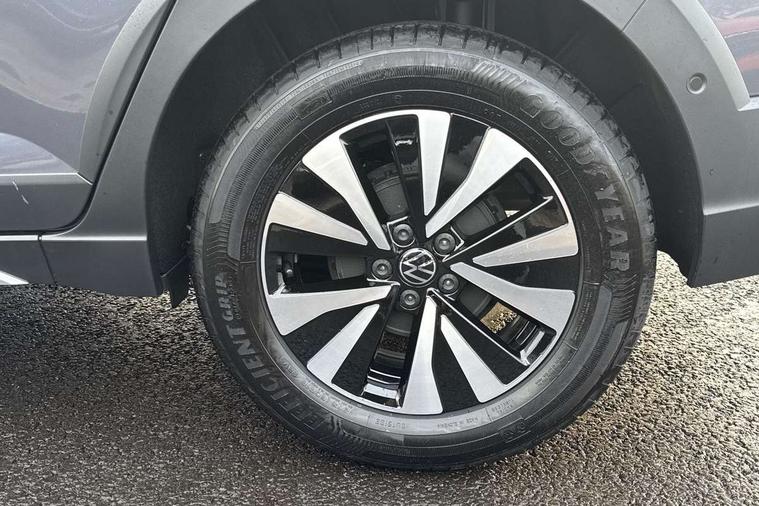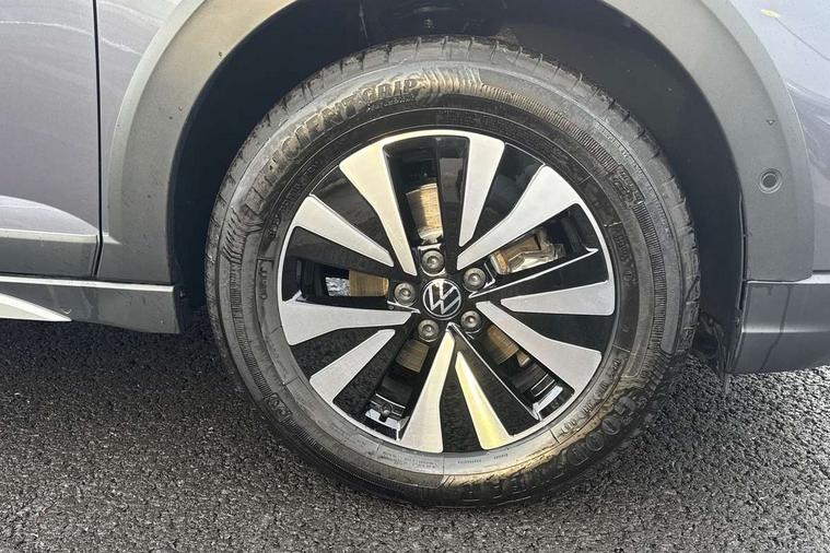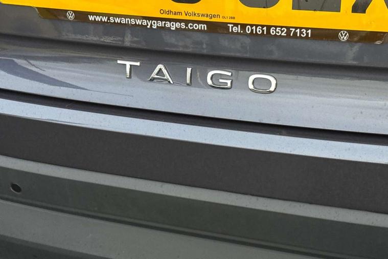 8" Digital cockpit basic display, Advanced driver attention and drowsiness monitor, Dynamic road sign display, e-Call (emergency call), Power Steering, Predictive adaptive cruise control, Travel assist including emergency assist, Washer fluid level indicator, Wireless Charging including Bluetooth, Start-stop system with battery regeneration (recuperation - energy recovery during braking), Digital radio reception (DAB+), WeConnect plus, Ambient lighting with logo projection, Aspherical driver's exterior mirror, Auto headlights, Body coloured bumpers, Body coloured exterior mirror housings and door handles, Electric windows, External USB type C socket and charging sockets, Heat insulating glass windscreen, LED rear combination lamp, LED third brake light, Left convex exterior mirror, Power folding adjustable/heated exterior mirrors and front passenger exterior mirror lowering function, Rear fog light on one side, reversing light on both sides, Rear side wing doors, Rear wash/wipe with intermittent wipe setting, 'Slash/ Austin' Cloth upholstery, 12V socket in centre console, 2 front reading lights, 3 rear head restraints, 3 seat bench in 2nd row, Black carpets, Child seat anchor for child seat system i-Size, 2x top tether and child seat anchor in front on front passenger side, Door and side trim panels in titan black, Driver and front passenger seat height adjustment, Front centre armrest, Handbrake lever handle in leather, Height and reach adjustable steering wheel, Leather trimmed gear knob, Leather wrapped multifunction steering wheel, Luggage compartment floor, Luggage compartment light, Lumbar support for driver's and front passengers seat, Seat covers in titanium black, Single front passenger seat, Split folding backrest with centre armrest and unsplit rear seat bench, Storage compartment under front seats, Sun visors with illuminated vanity mirrors, Chrome Package - Taigo, Drivers assistance pack - Taigo, Light and Sight pack including High beam assist - Taigo, 2 x 3-point seatbelts/outer rear seats with ECE label, 3-point seat belts in front with pretensioner and height adjustment, 3-point seatbelt for centre rear seat, Adaptive driver and front passenger airbags with passenger airbag deactivation function, Driver and front passenger airbags with front passenger airbag de-activation, front side and curtain airbags, Driver and front passenger safety-optimised head restraints, Electronic stability control, Extended and predictive pedestrian/ cyclist protection, Front and rear disc brakes, Front curtain and side airbags with center airbag, Hill start assist, Manual rear child locks, Single tone horn, Tyre pressure loss indicator, Anti-theft alarm system with interior monitoring, backup horn, and towing protection, Lava stone black gloss/matt decorative inserts in dash and front door panels, Low rolling resistance tyres,