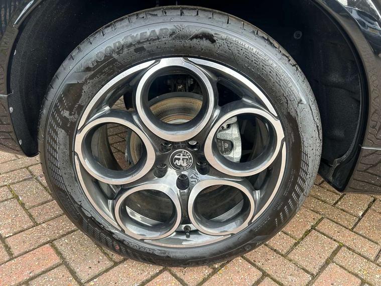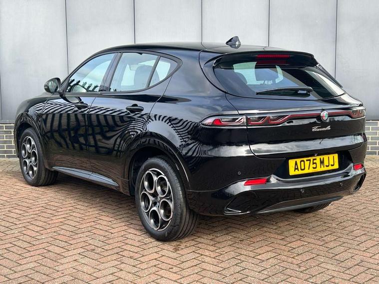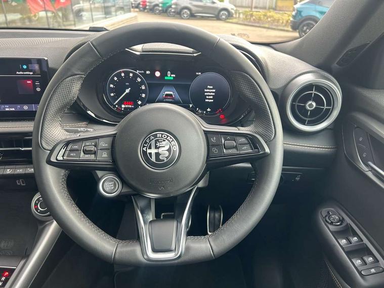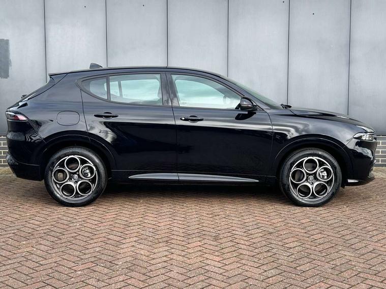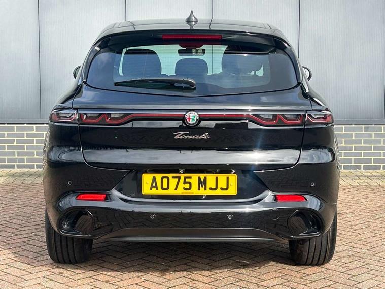 Adaptive cruise control with Stop and Go, Alfa connect box, Alfa connect services, Alfa dna with esc off (3 modes + esc off), Apple car play/Android Auto, Drowsy driver detection, e-Call (emergency call), Forward collision warning, Full tft instrument cluster - 12.3", Intelligent speed assist, Lane support system, PAS, Passive / keyless entry (front doors), Qiuick guide in english, Speed limiting device, Traffic sign recognition (w/navigation), Warranty handbook uk, Wireless charging pad, 10.25" radio touchscreen, usb, bluetooth audio streaming, voice controls with navigation, DAB digital audio broadcast, 4 Interior puddle lights, Auto headlamps with dusk sensor, Auto high beam, Auto wipers with rain sensor, Auto-dimming rear internal mirror, Black painted mirror caps, Body colour door handles, Body colour rear spoiler, Chrome finishing tonale badge, Electric exterior mirrors (heated), Electrical-folding exterior mirrors, Front and rear power windows with auto up/down and antipinch, Full LED rear lamps, Gloss black painted body kit w/ Black side and front inserts and skidplate, LED blade stop light, LED cornering projector light, LED license plate light, Matrix full led headlamps with adaptive system and fog light function, Rear side wing doors, Rear wiper, Roof, hood and exterior mirrors protection, Shark fin antenna, U shaped LED blades DRL signature and dynamic turn indicator, V front bezel black, Welcome/leaving lighting, 12v plugs in the front and in trunk, 60/40 Rear seats with ski pass, Alfa logo electrowelded on headrest, Black ceiling and pillars, Bottle storage 1l on door panel, Centre armrest with dark grey stitching, Door armrest with biscotto stitching, Dual zone air conditioning with aqs (with rear airvents), Front armrest (integrated in the central tunnel), Front headrests, Front usb plug type a + c (charge + data), Front/rear floor mats, Metallic pedals, Mono colour ambient light (included in domelamp), Overhead console with domelamp led and switches, Rear central armrest and 3 headrests, Rear usb plug type a + c (charge), Scoba shark black grain PVC centre armrest, Scoba shark black grain PVC upper door panel and armrest, Seat belt height adjustment, Single front passenger seat, Sport leather steering wheel with start button, Sunvisor mirror with light (driver and passenger), 6 airbags, ABS, Autonomous emergency braking inter-urban, Electric parking brake with autohold, Emergency braking pedestrian and vulnerable road users - interurban, ESP, Manual rear child locks, Rear seatbelt reminder alert, Three 3 point rear seatbelts, Tyre pressure monitoring system (TPMS), Capless fuel filler, Keyless Go, Vehicle theft alarm with hood protection and intrusion sensor (thatcham), Backlight film graphic dashboard insert, Biscotto stitching on dashboard, Scuba shark black grain PU dashboard, Black and white alfa romeo logo center wheel caps, Fix and go puncture repair kit, Summer tires,